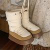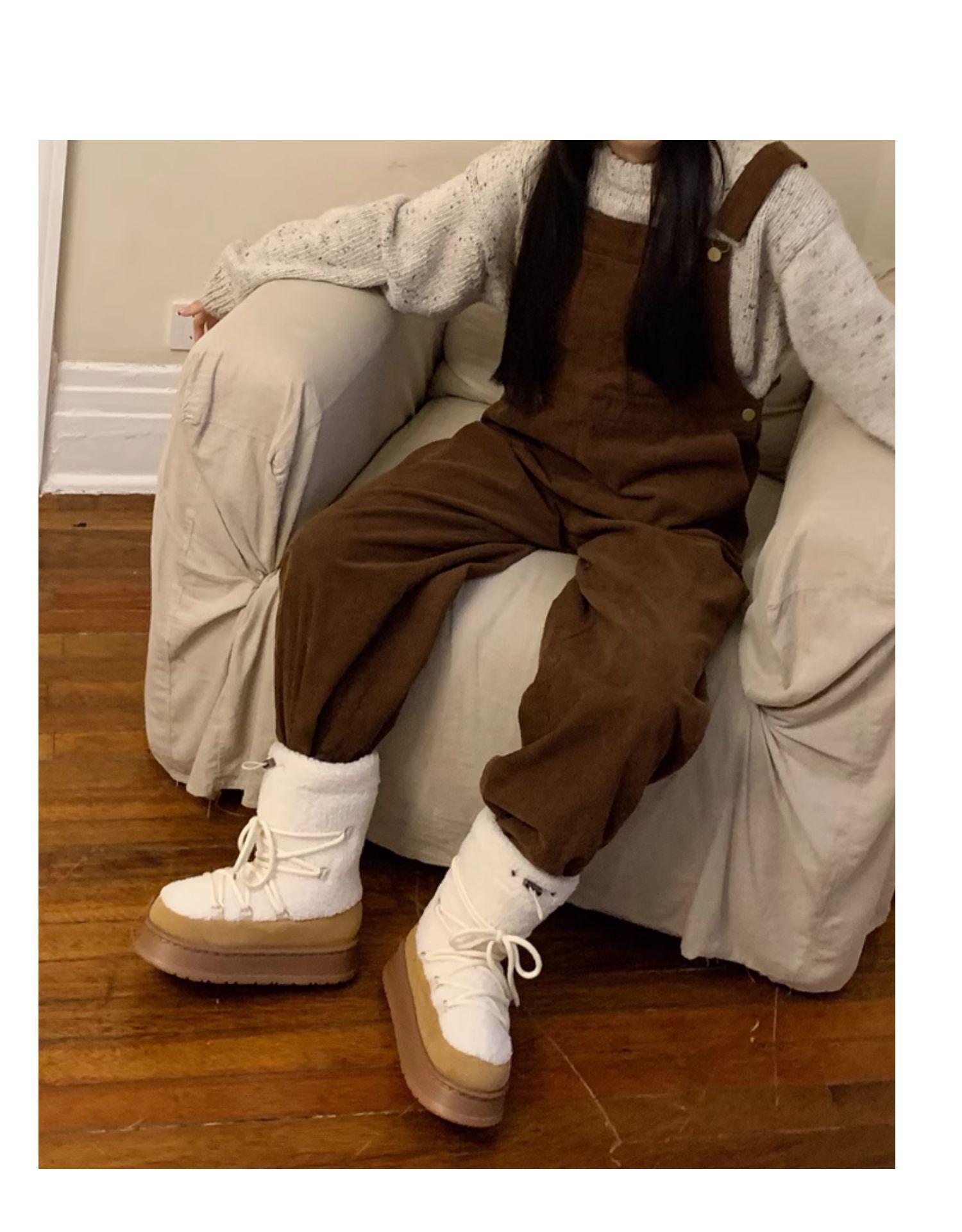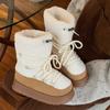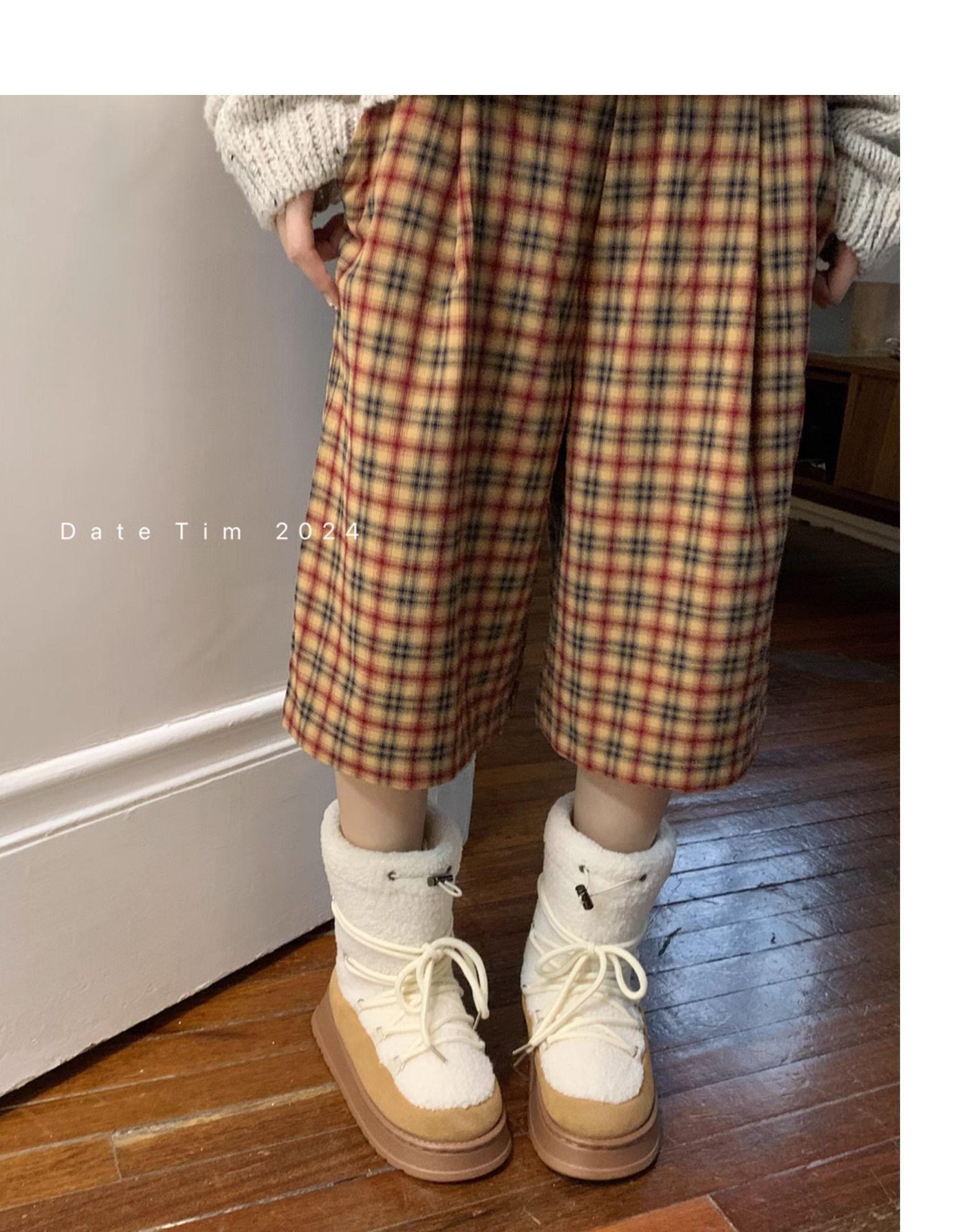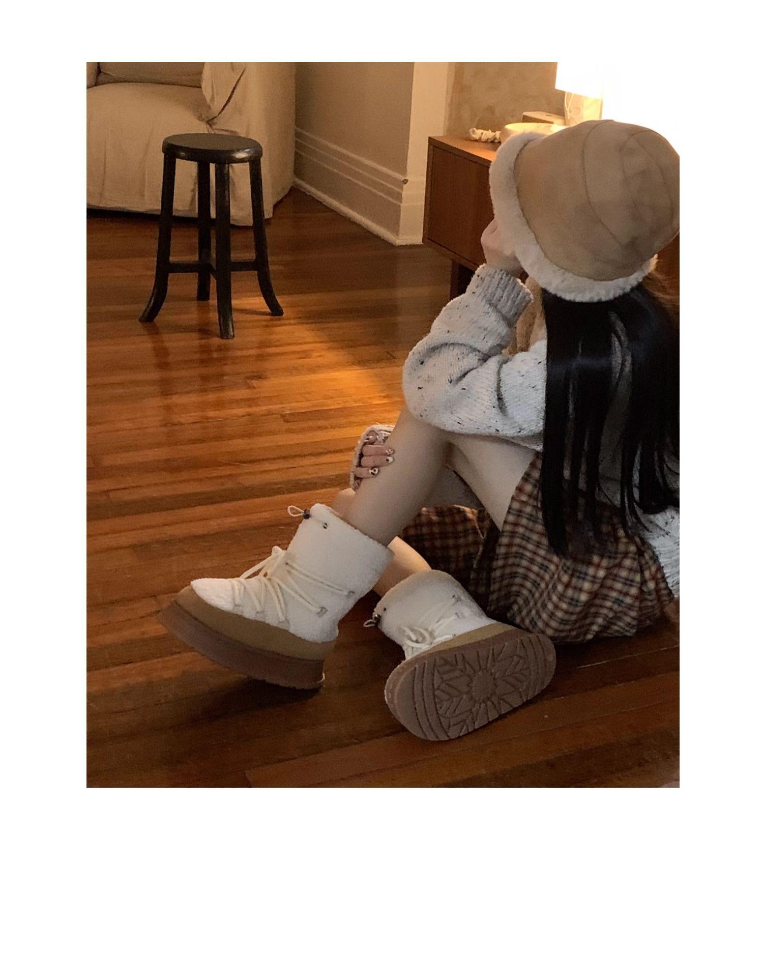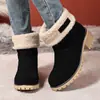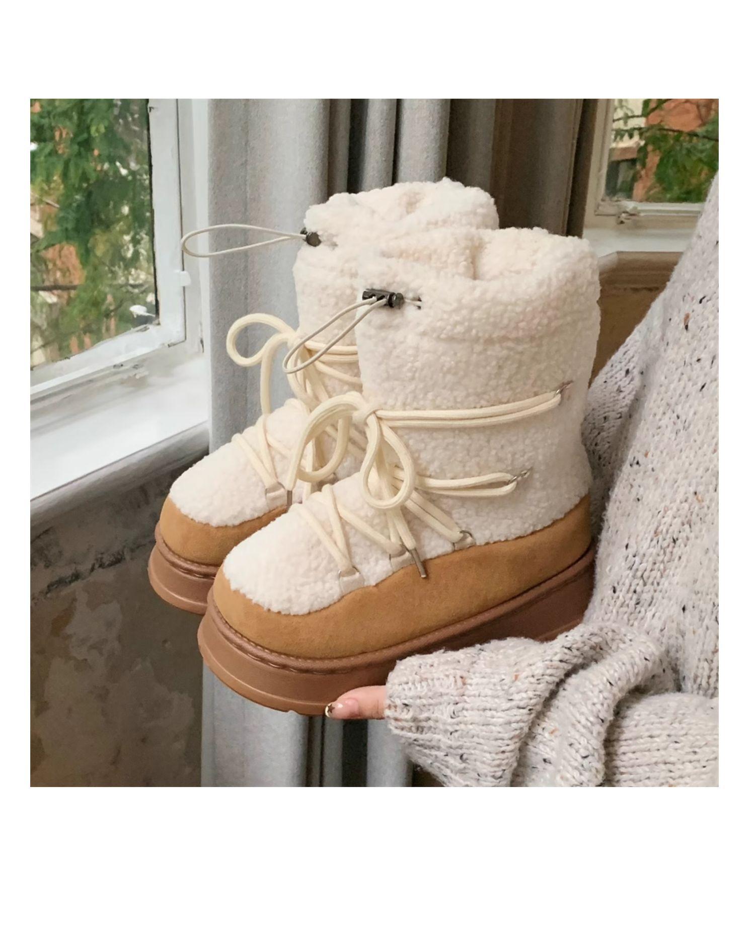 Botas de Nieve con Tiras de Lana de Cordero de Otoño e Invierno 2025 Nuevas Botas Retro de Moda para Mujer de Media Caña Zapatos de Algodón Cálidos Aumentados