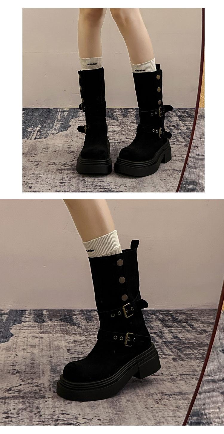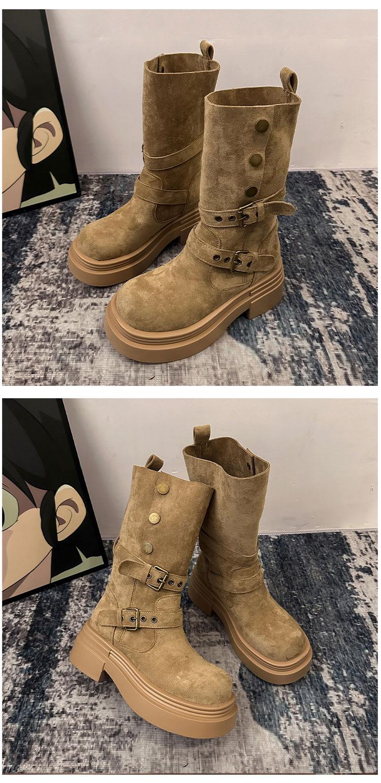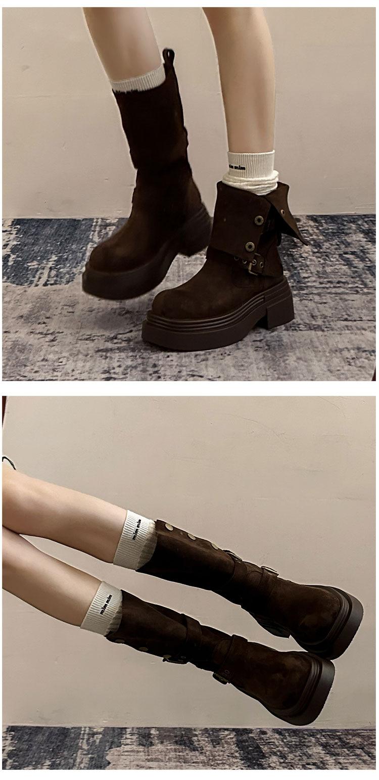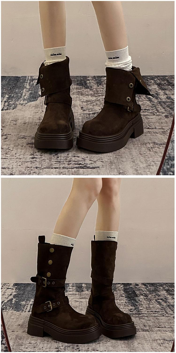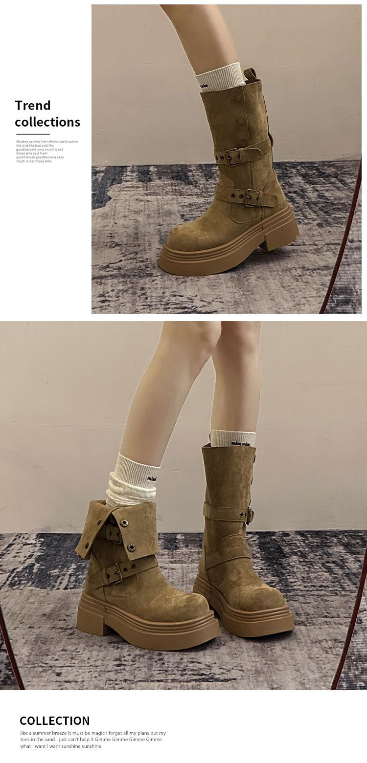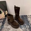 Botas vintage de doble uso con suela gruesa y tacón medio hasta la rodilla para mujer, otoño e invierno 2024.
