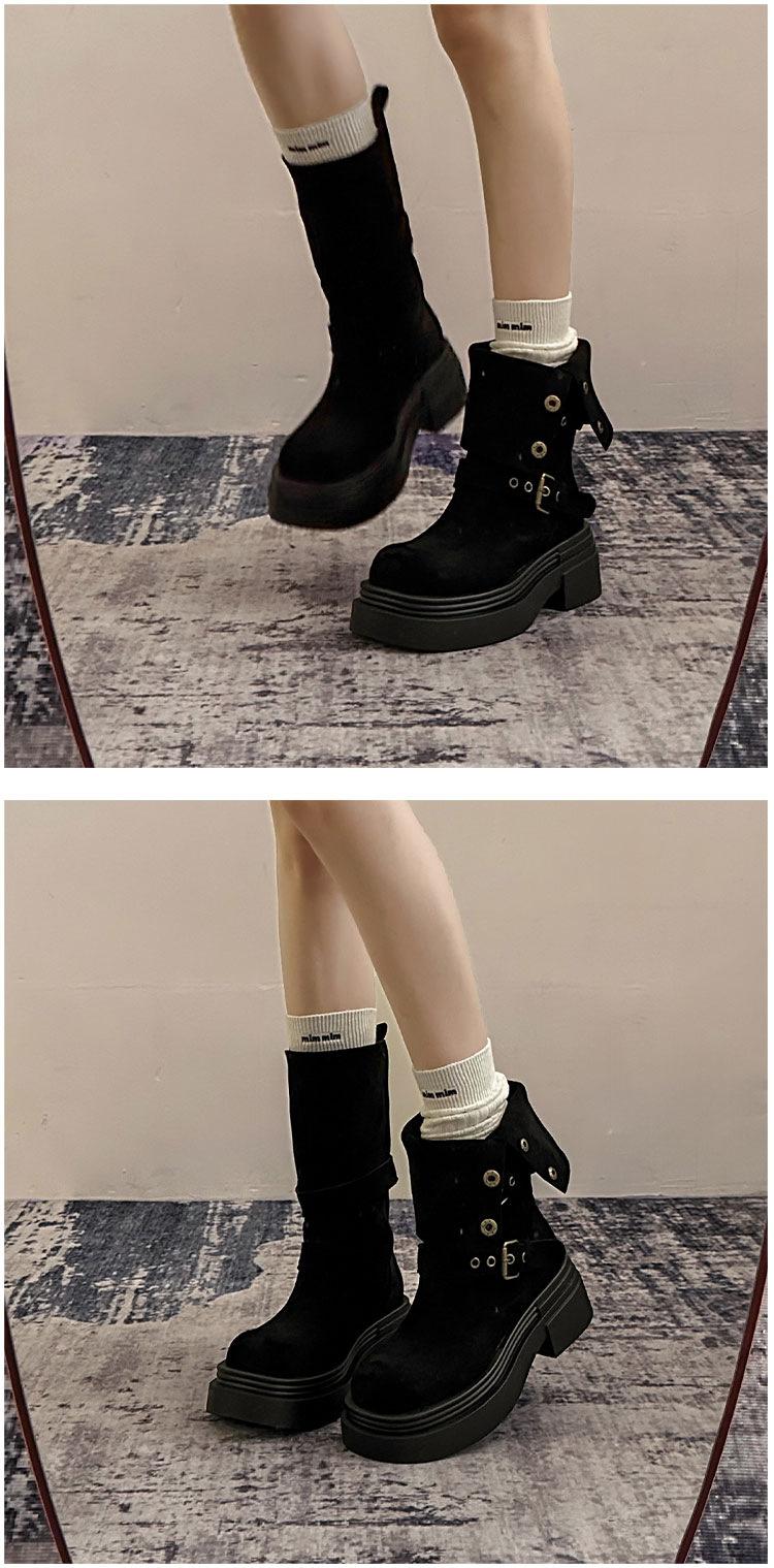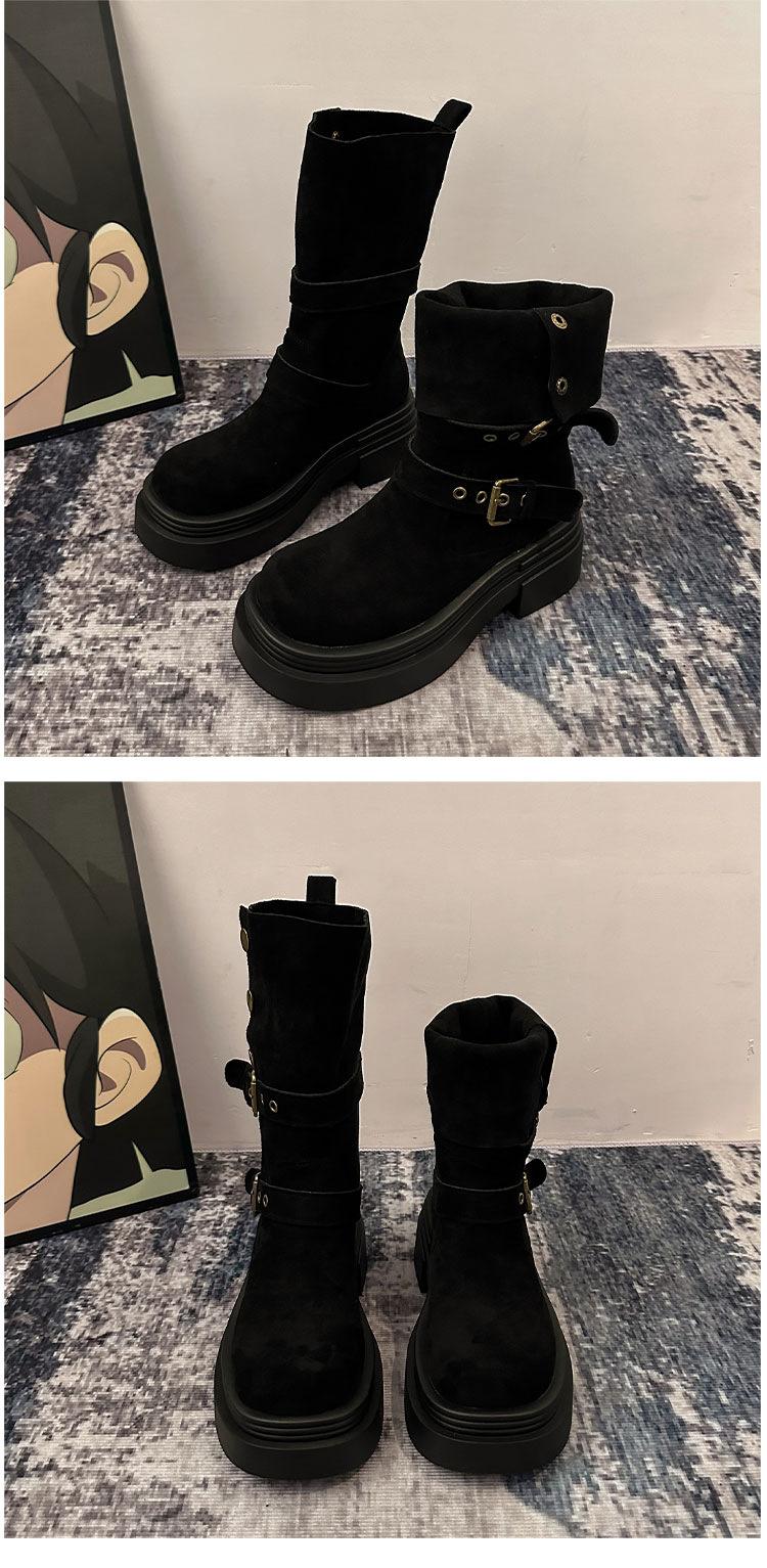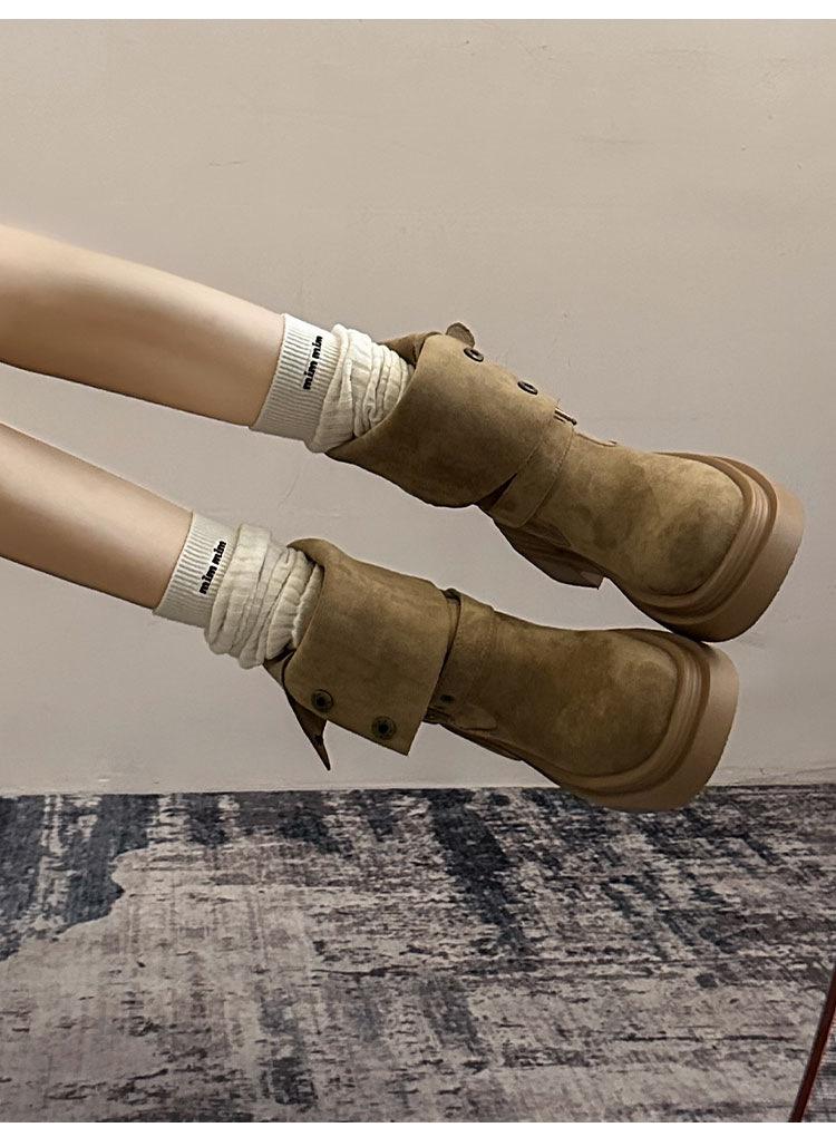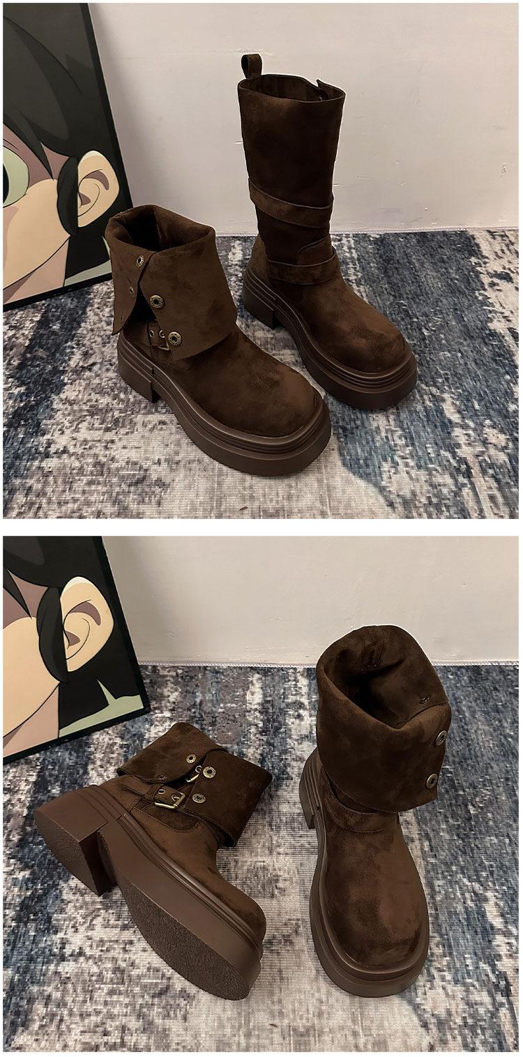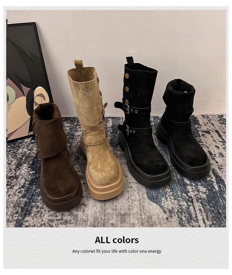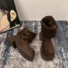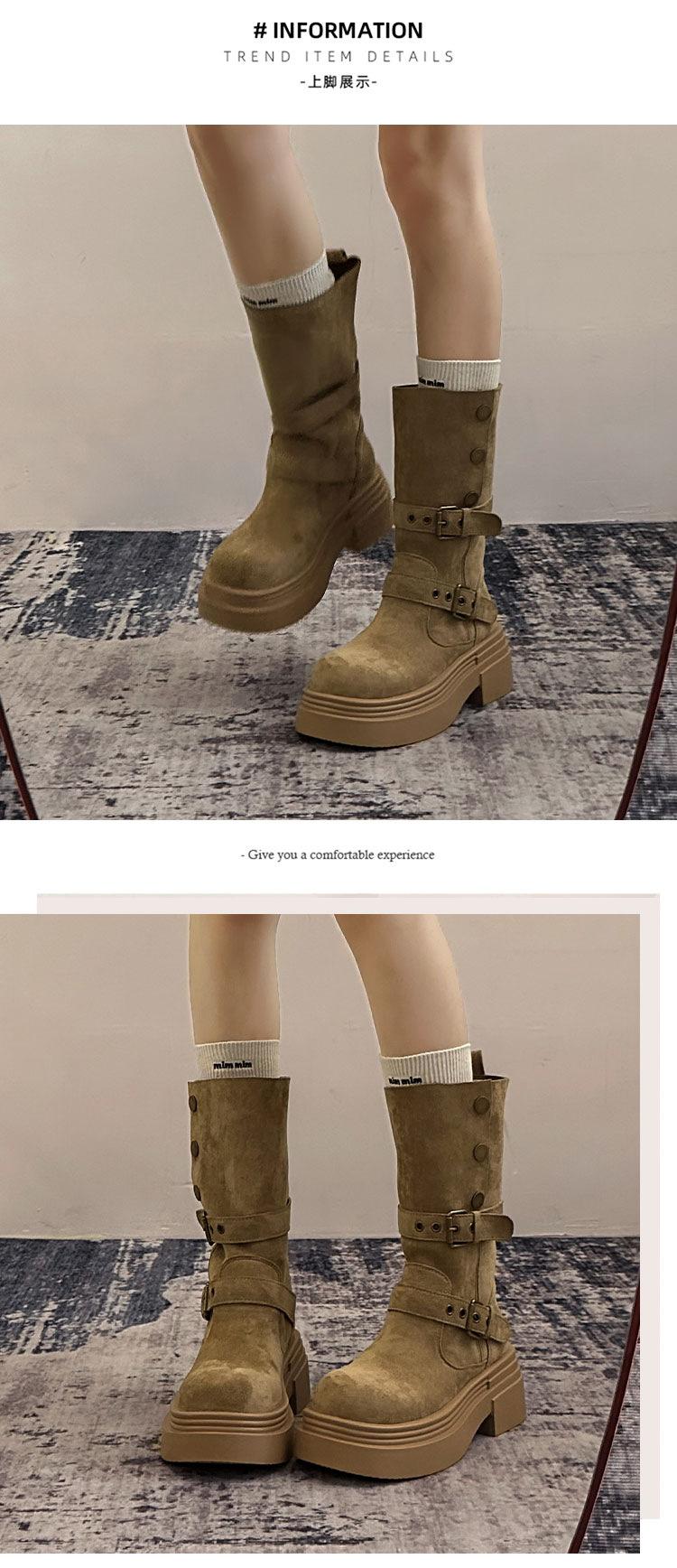 Botas vintage de doble uso con suela gruesa y tacón medio hasta la rodilla para mujer, otoño e invierno 2024.