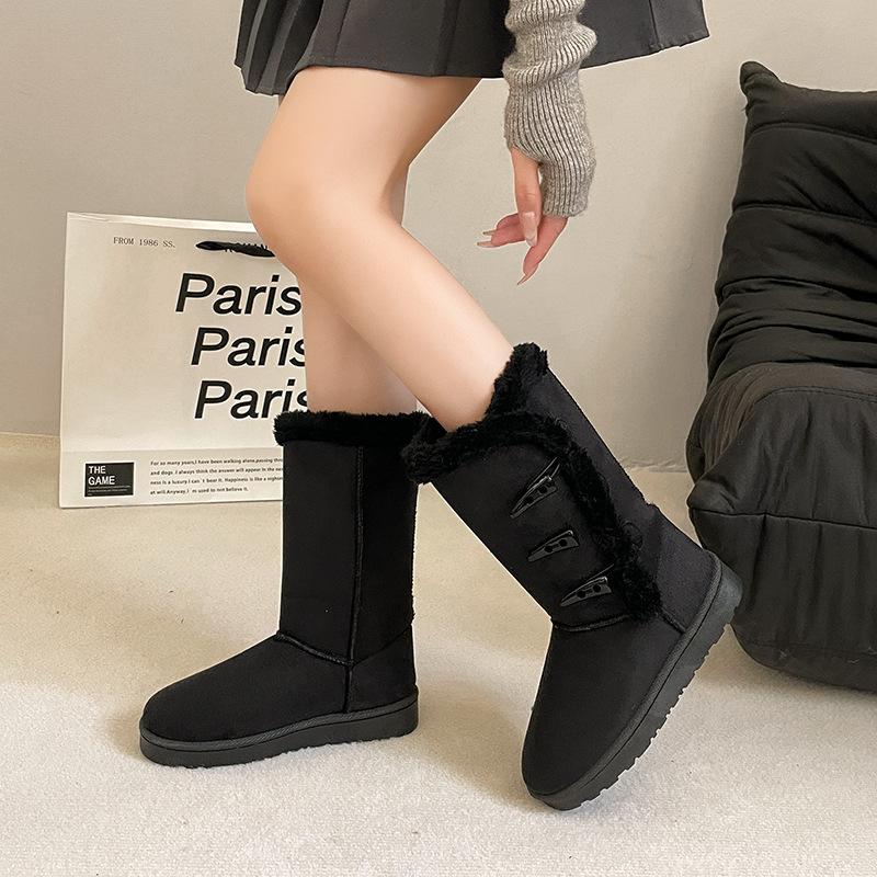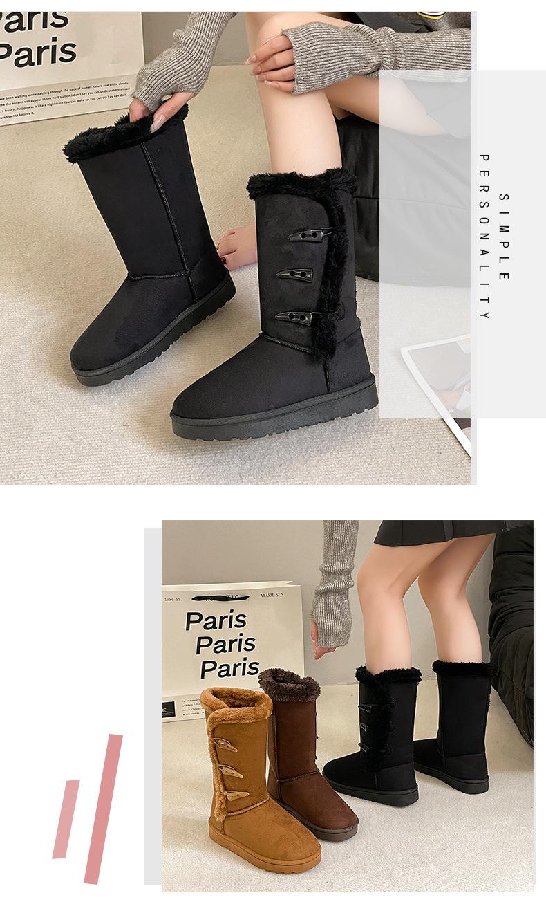 Comercio exterior talla grande tubo zapatos acolchados de algodón mujer 2024 invierno nuevo grueso cálido elevado forro polar con botones botas de nieve mujer
