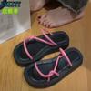 Pantuflas de exterior para mujer 2023 nuevo verano de una palabra suela suave moda albaricoque casual playa verano zapatos de mujer