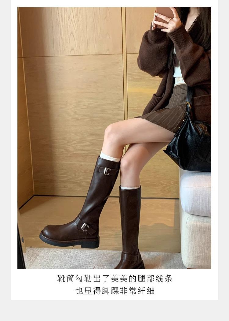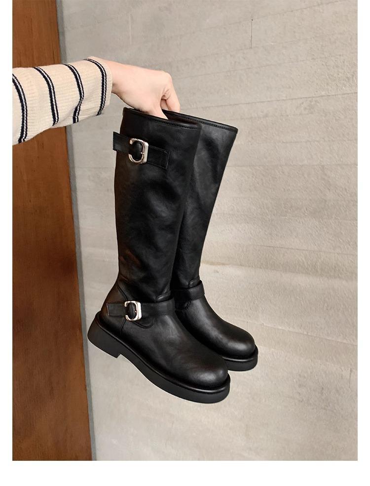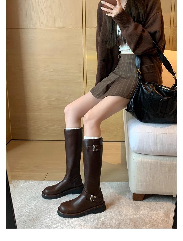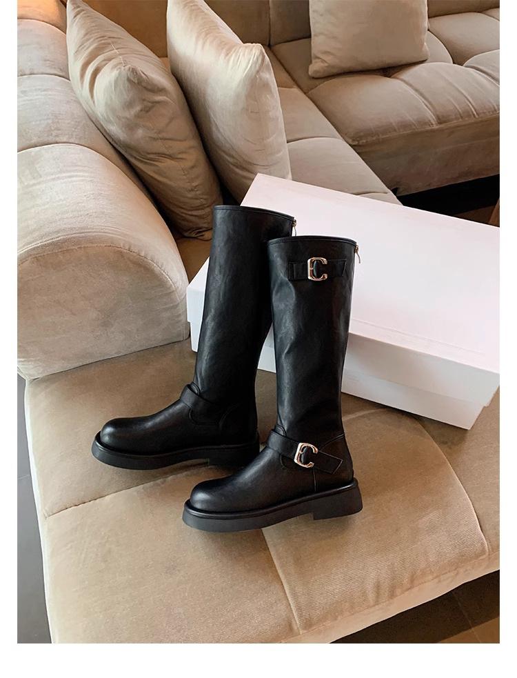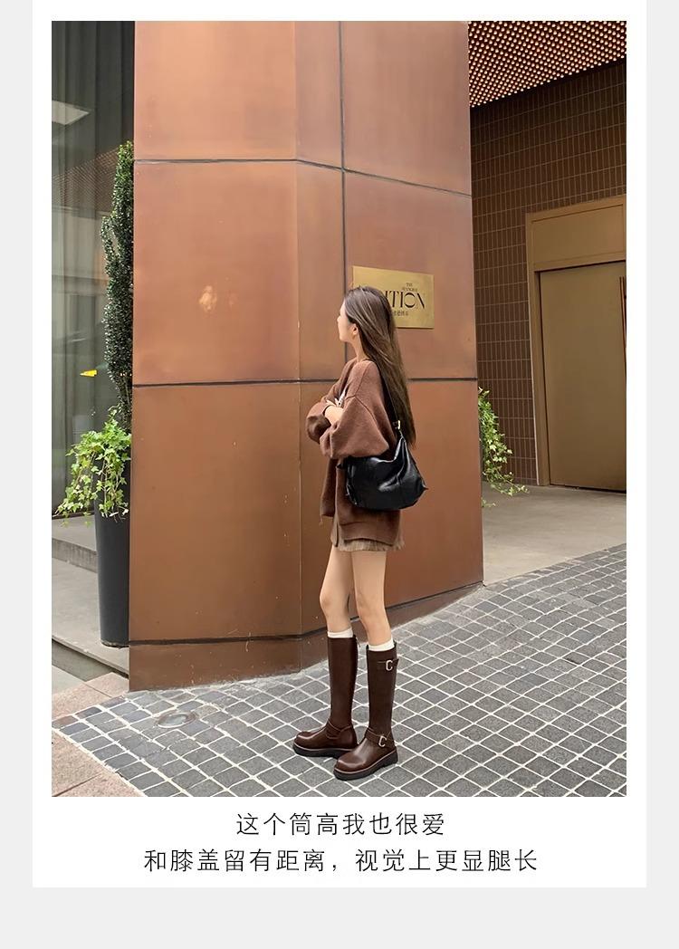 Grape Mom Invierno Nuevas Botas Largas de Caballero Cómodas de Punta Redonda Transpirables para Mujer Botas de Suela Pequeña Gruesa