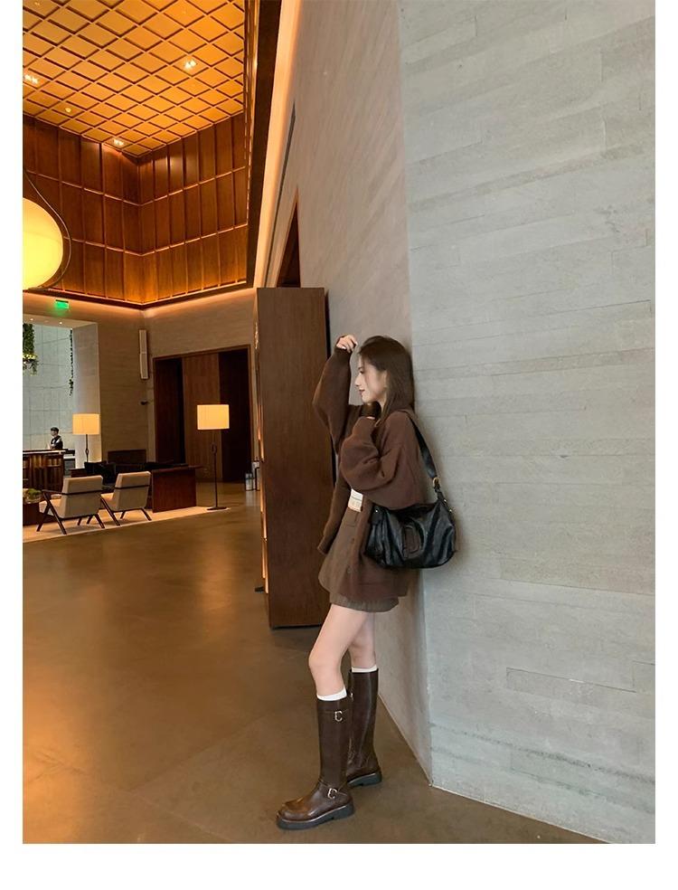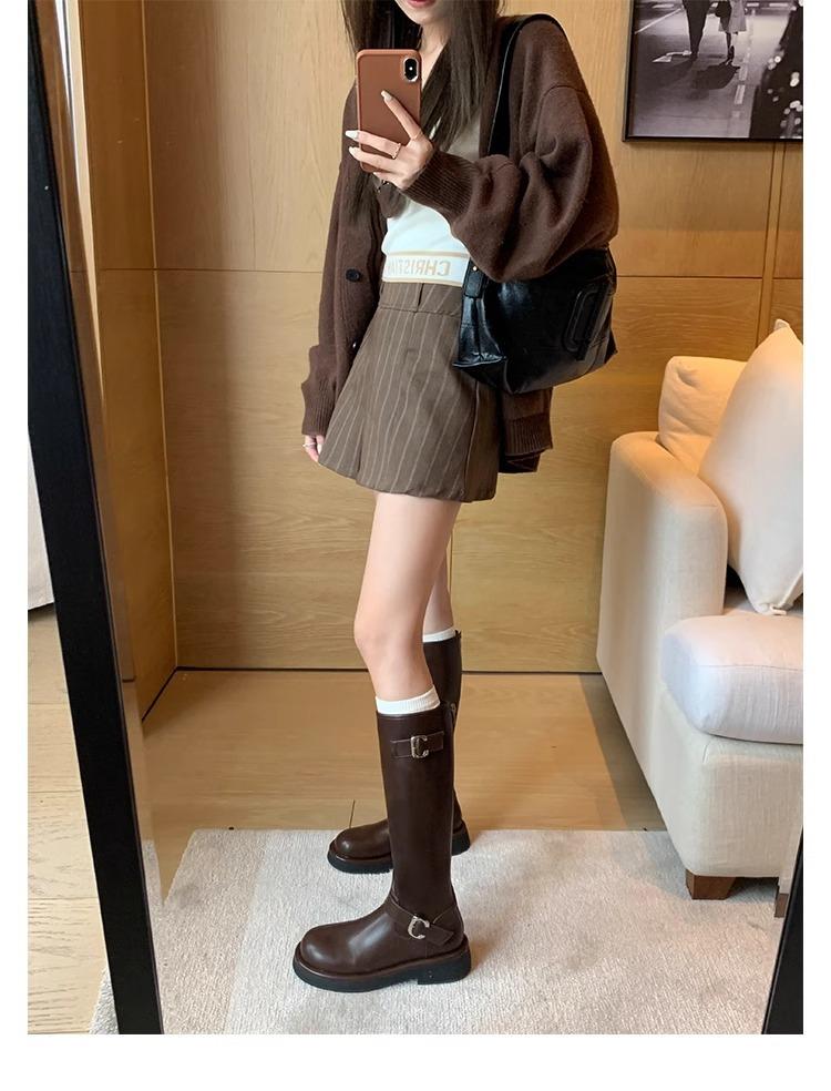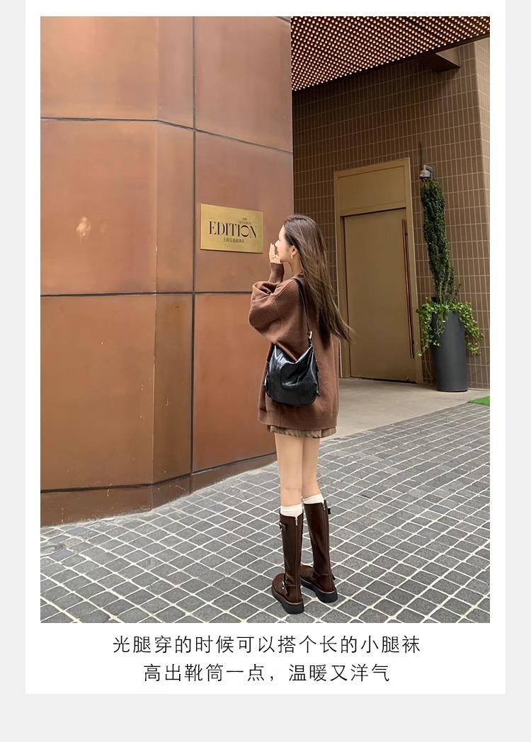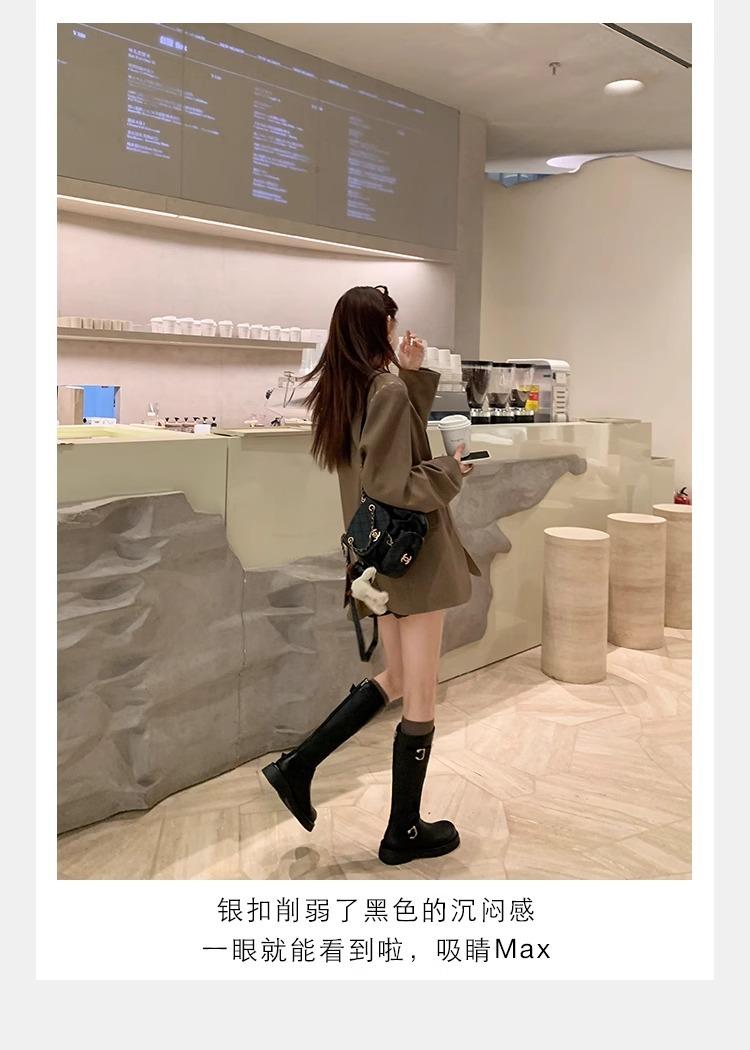 Grape Mom Invierno Nuevas Botas Largas de Caballero Cómodas de Punta Redonda Transpirables para Mujer Botas de Suela Pequeña Gruesa