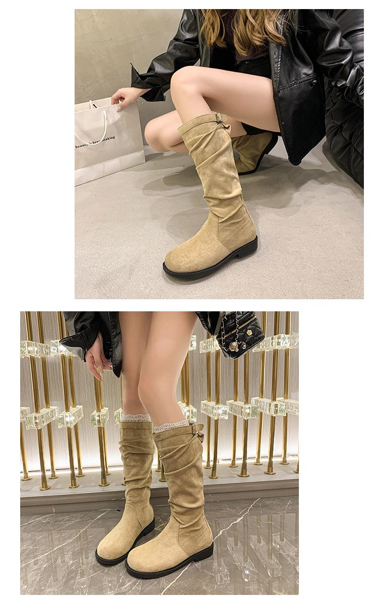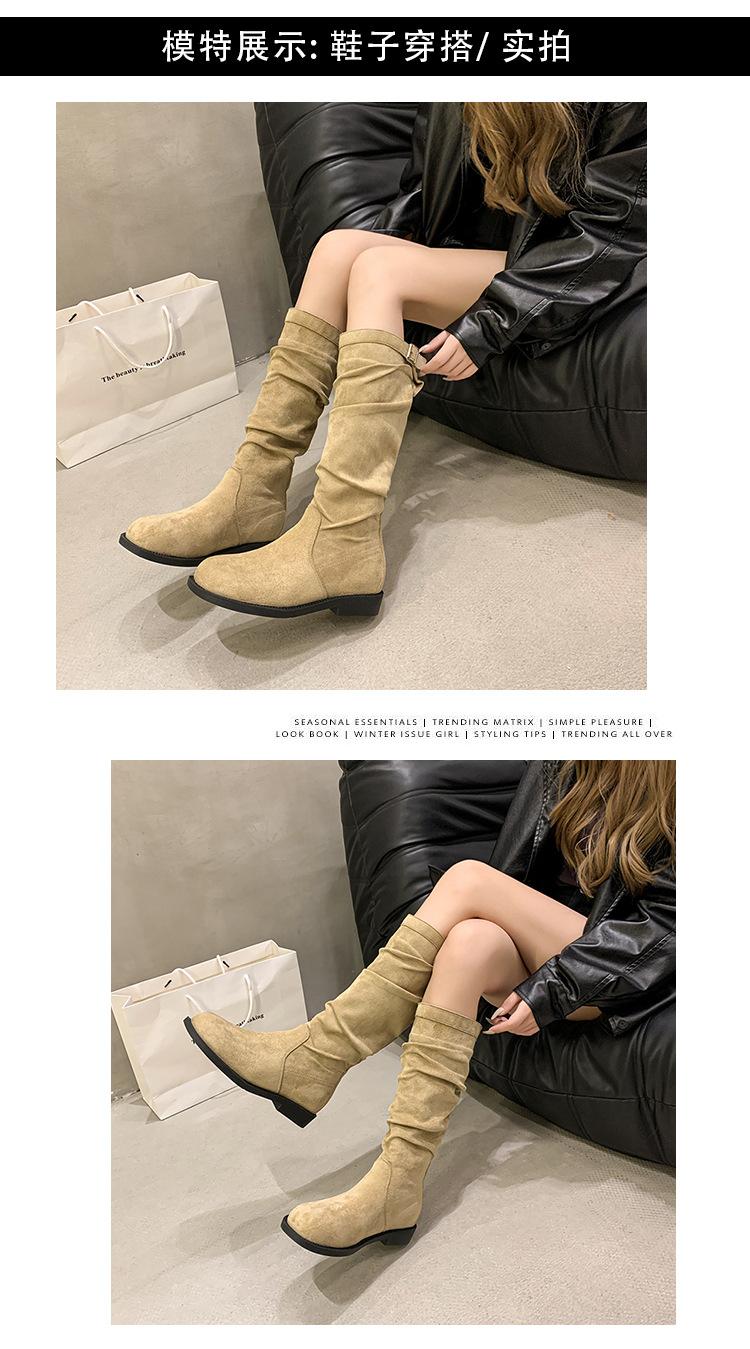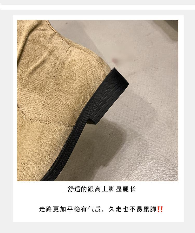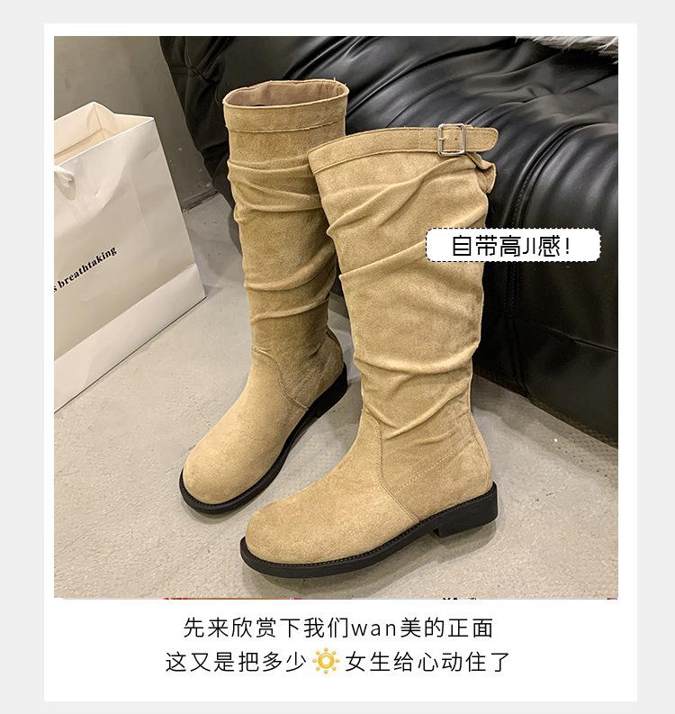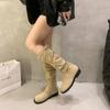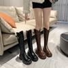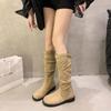 Botas de tacón grueso y bajo de color liso, botas largas de barril, zapatos de mujer, otoño e invierno 2024, botas de caballero finas de barril alto.
