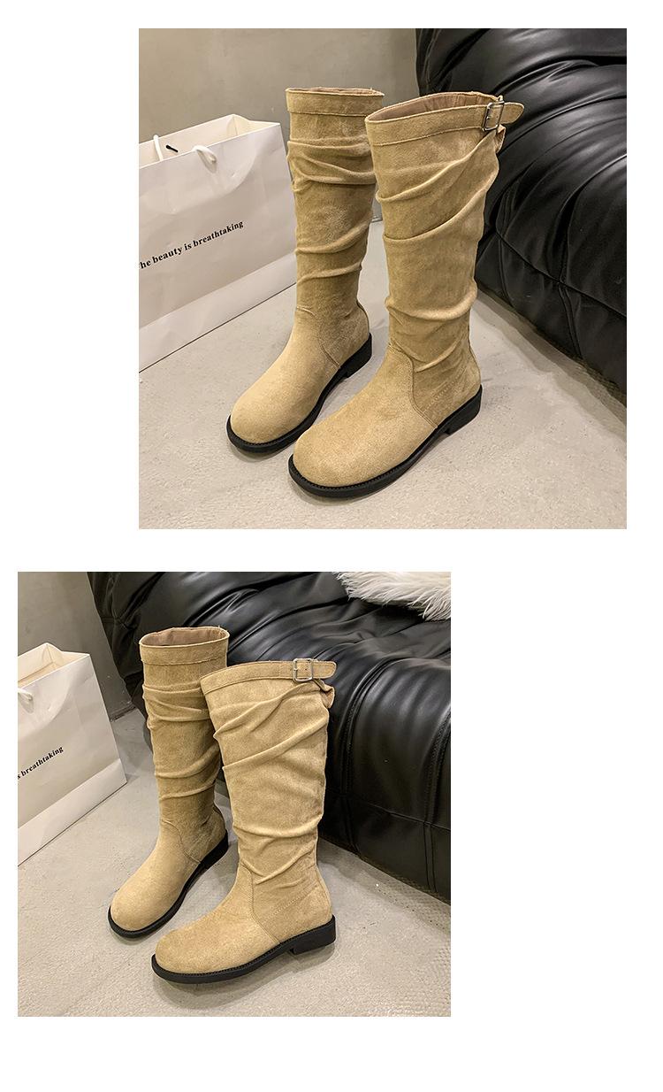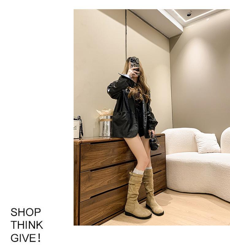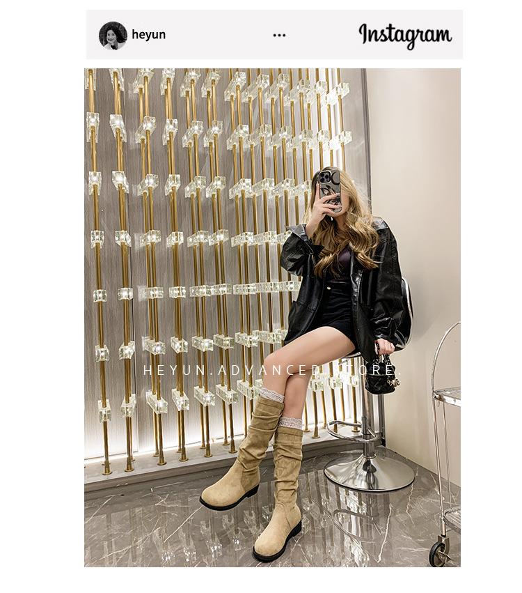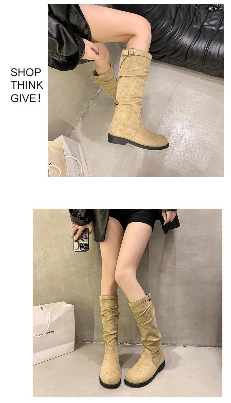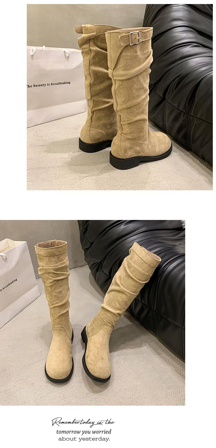 Botas de tacón grueso y bajo de color liso, botas largas de barril, zapatos de mujer, otoño e invierno 2024, botas de caballero finas de barril alto.