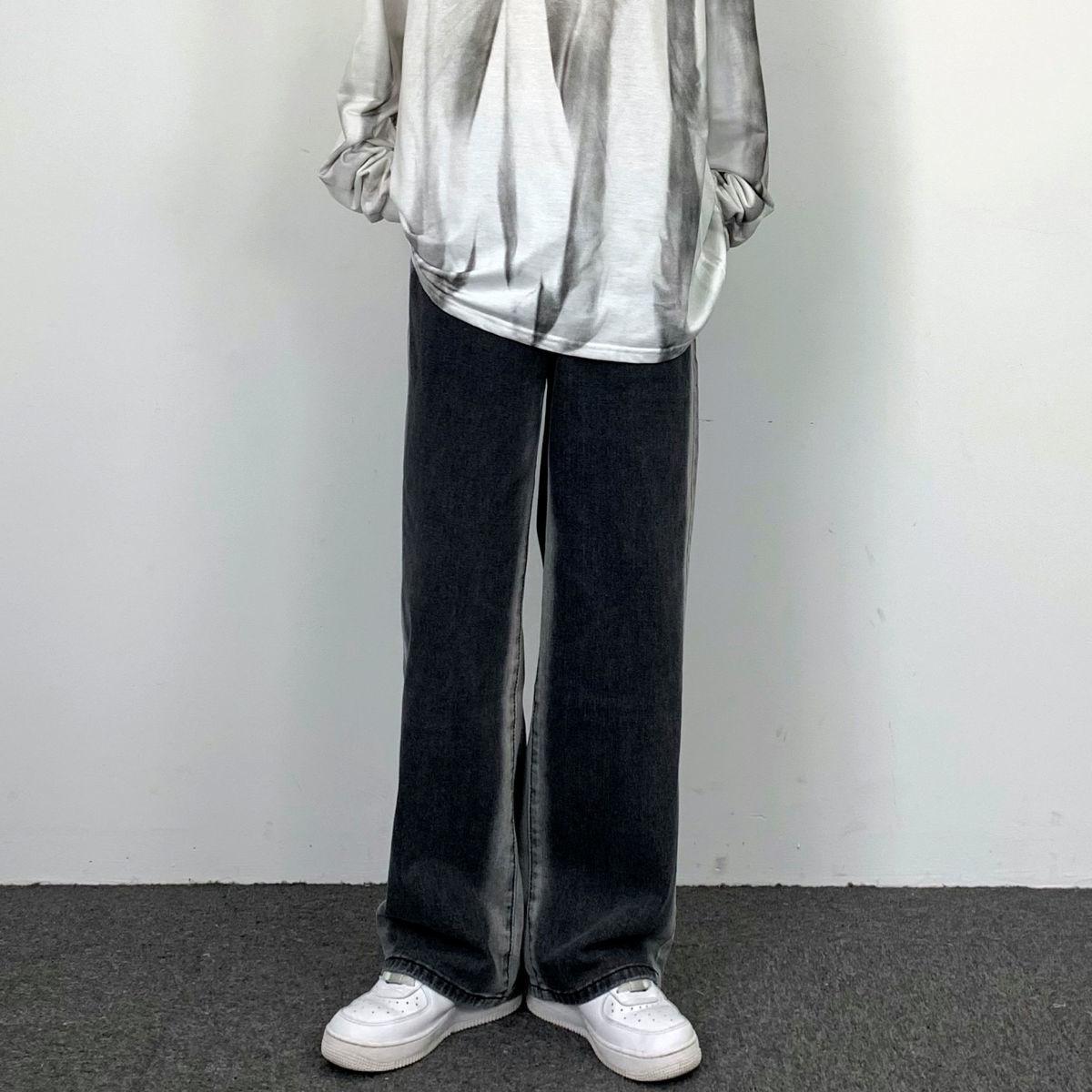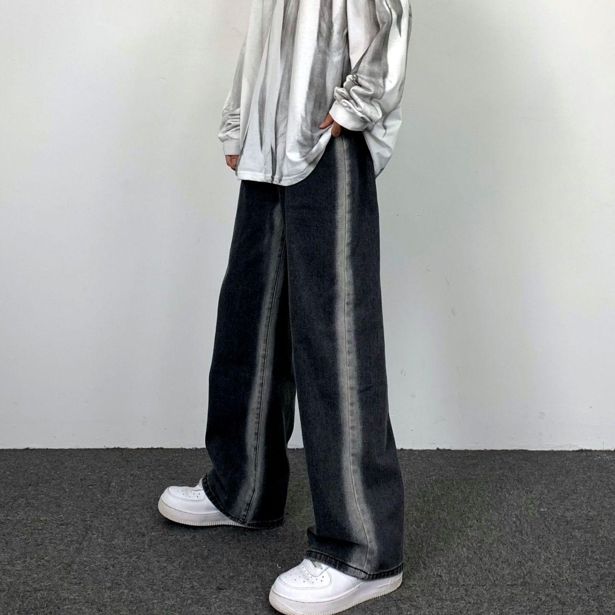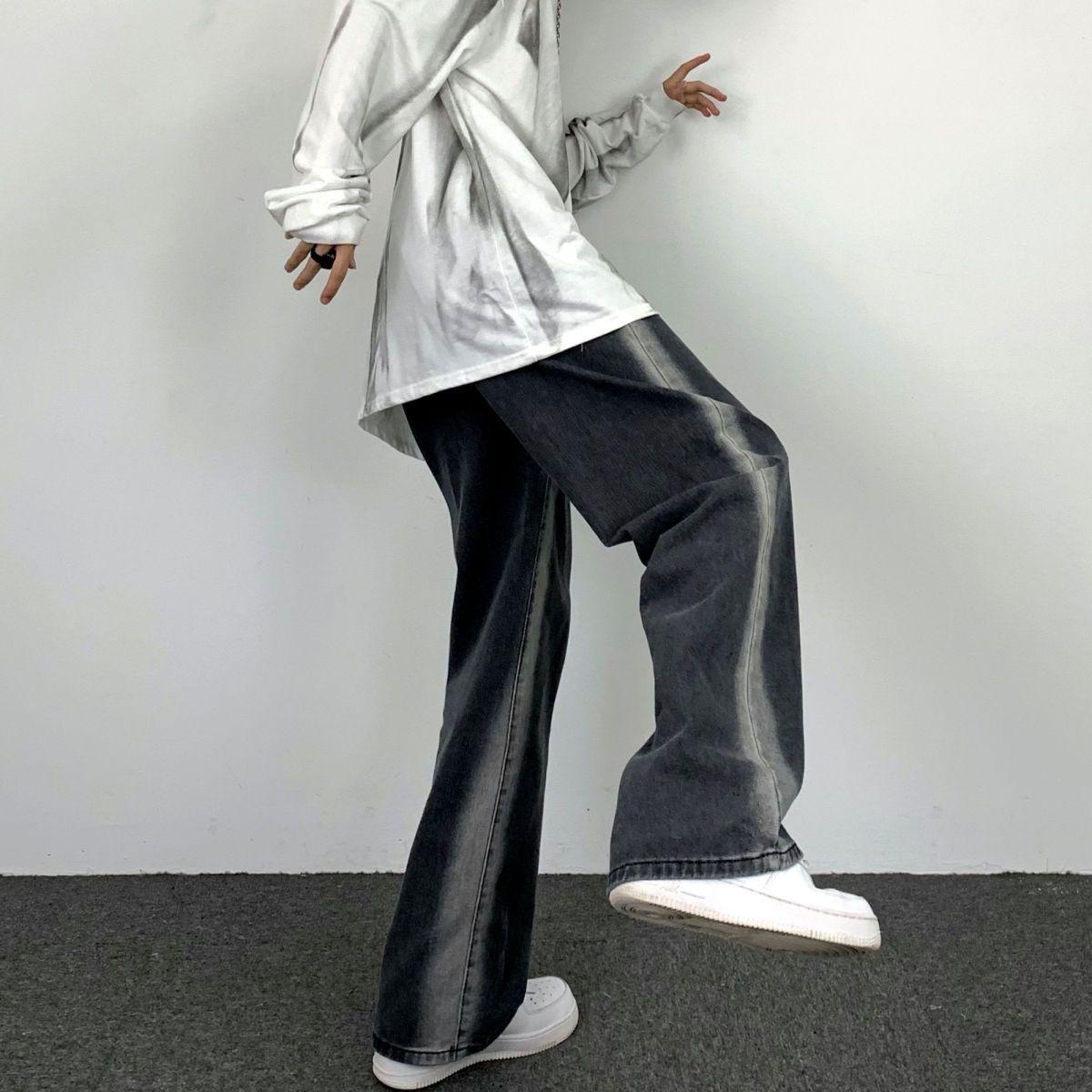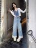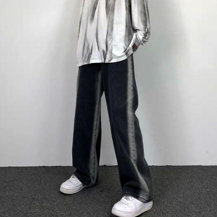 Jeans Rectos Lavados Americanos para Mujer Primavera y Verano 2024 Sueltos con Borde Blanco Degradado Pierna Adelgazante Look Elásticos Pantalones Largos