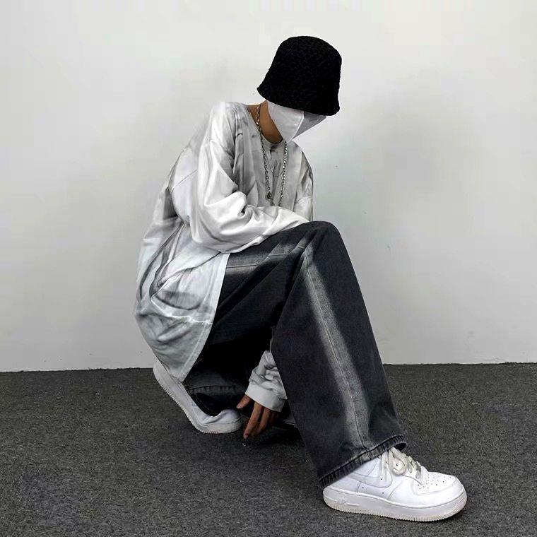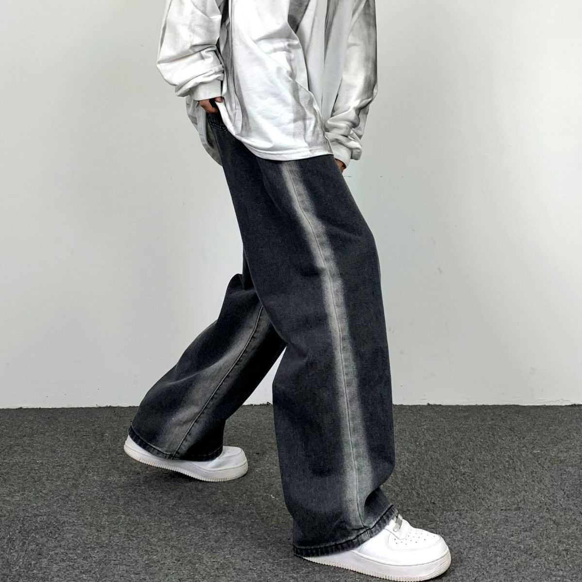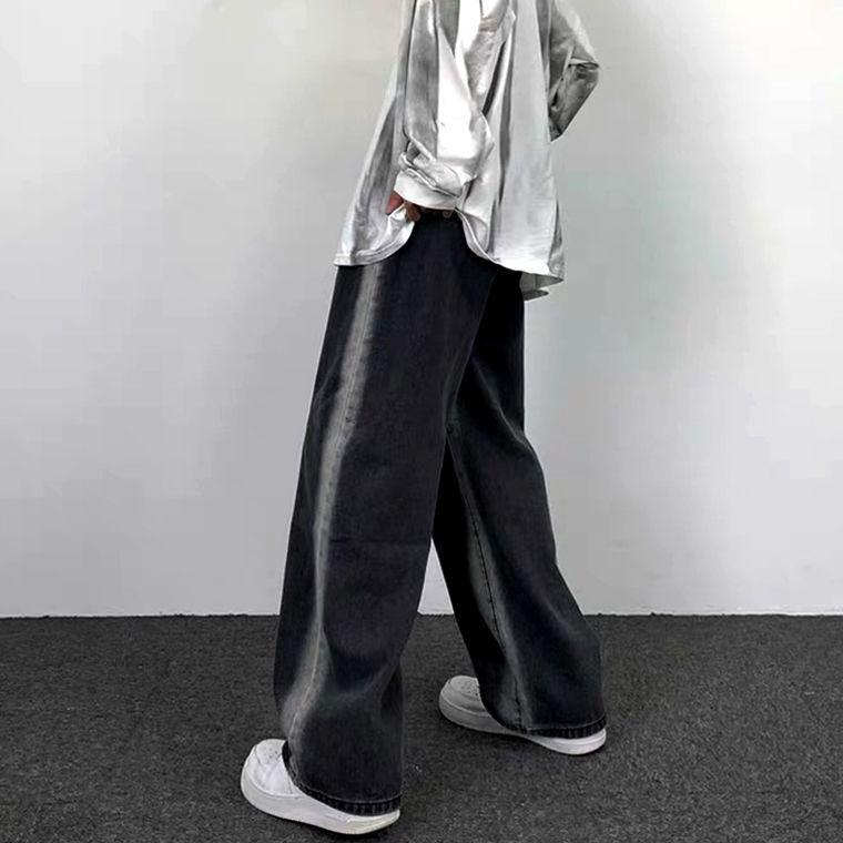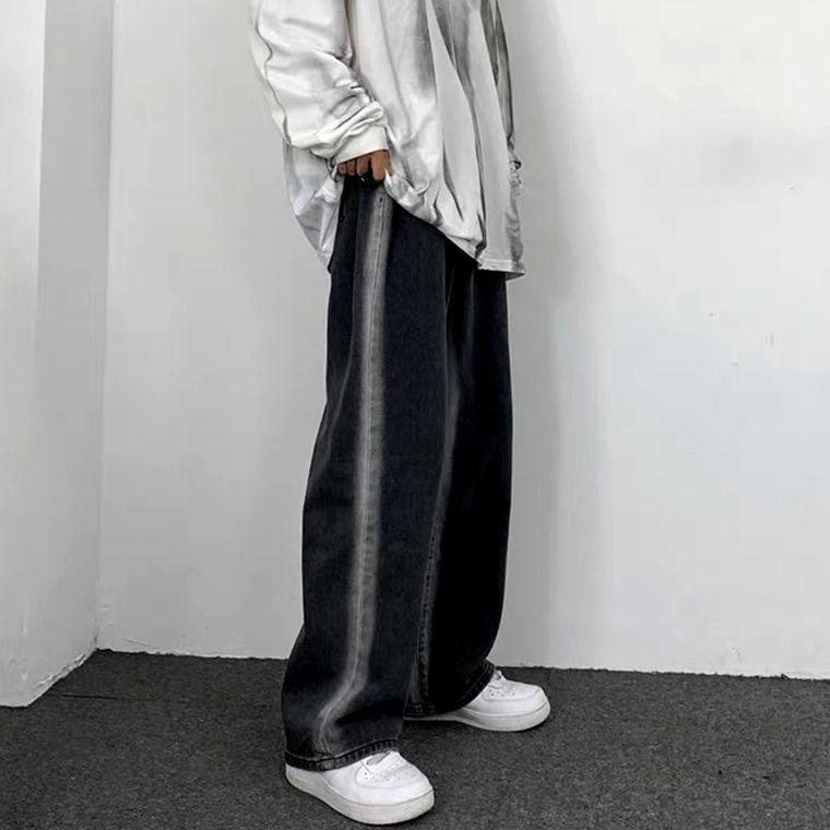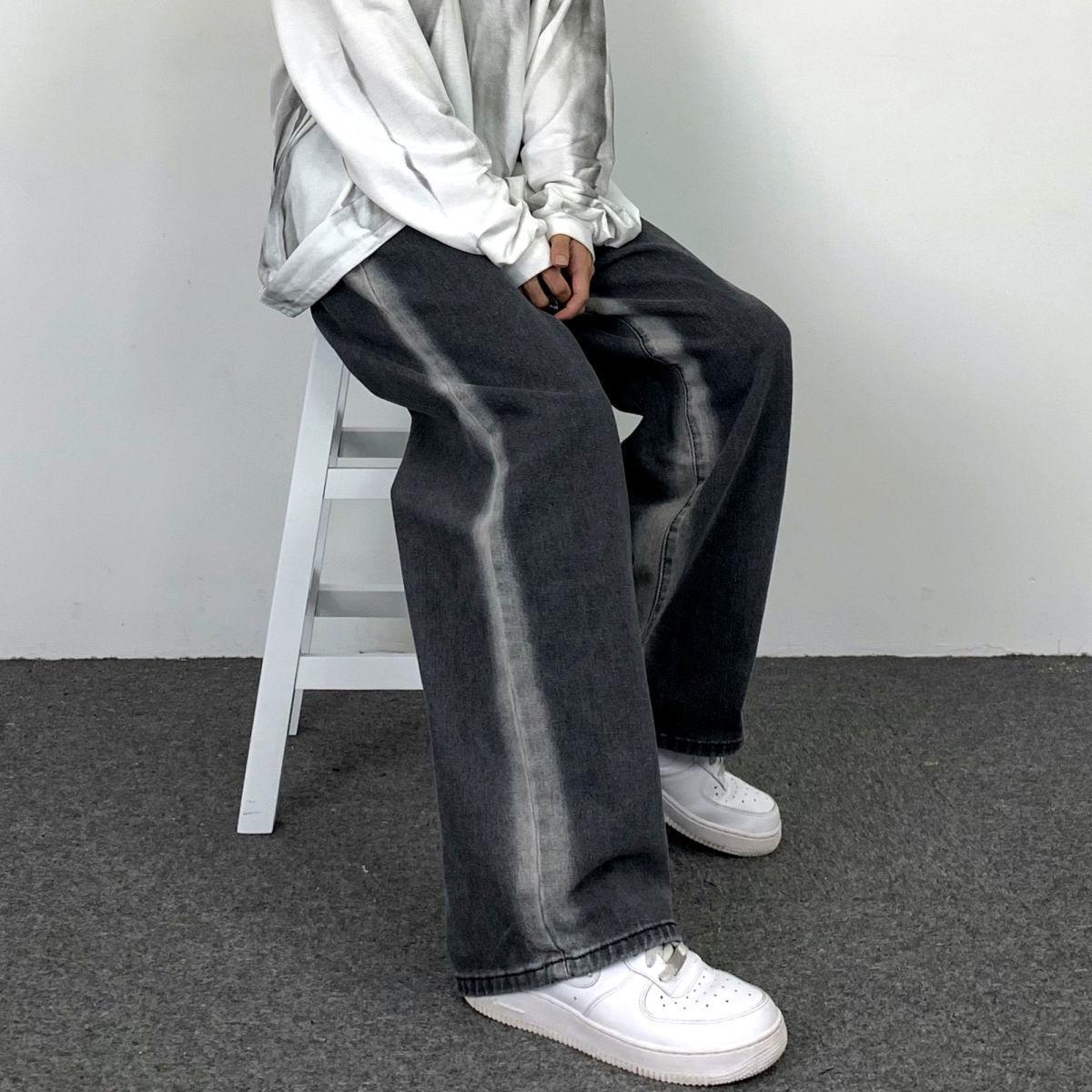 Jeans Rectos Lavados Americanos para Mujer Primavera y Verano 2024 Sueltos con Borde Blanco Degradado Pierna Adelgazante Look Elásticos Pantalones Largos