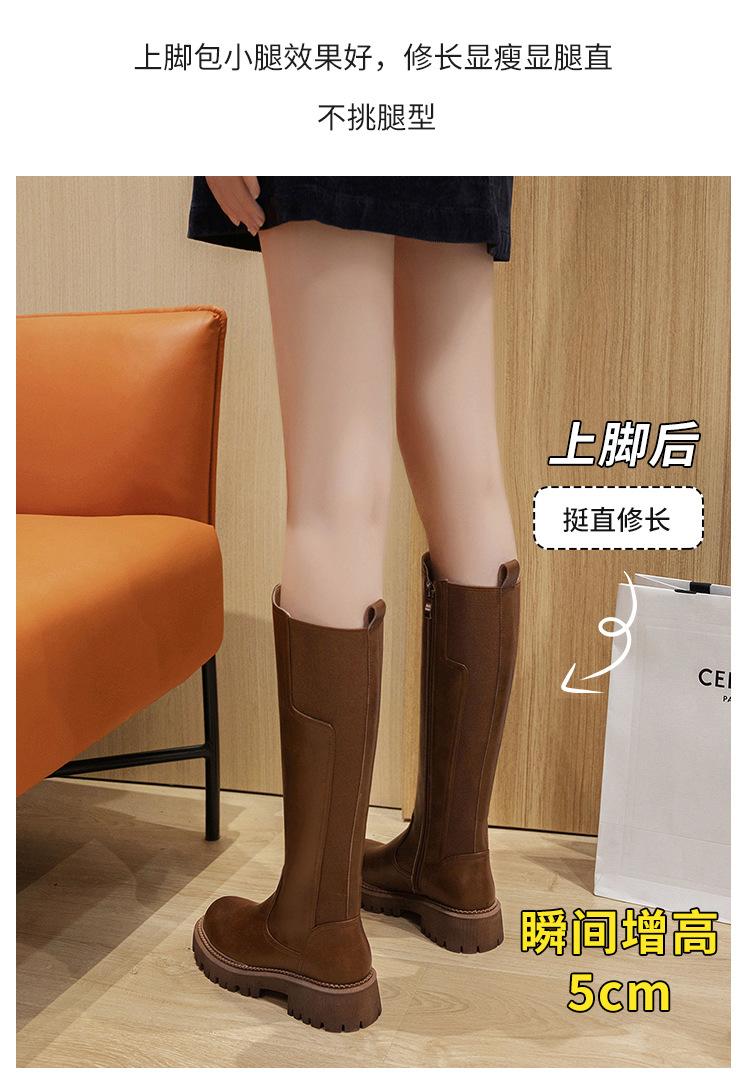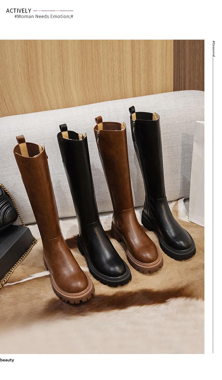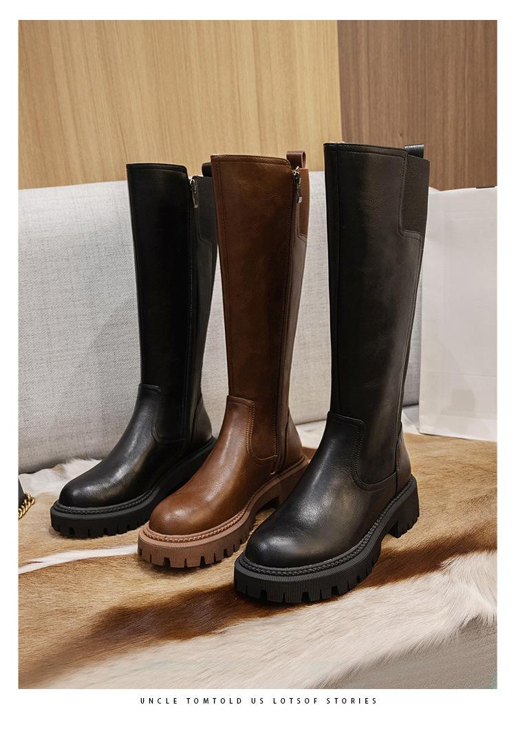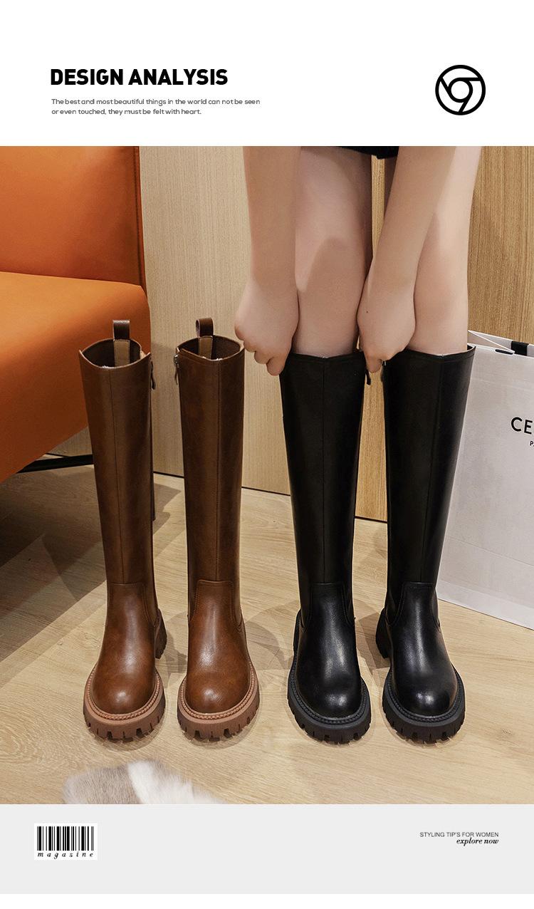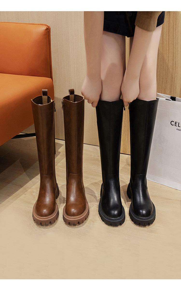 Botas de Caballero Botas de Boca V para Mujer 2025 Nuevo Otoño e Invierno Suela Gruesa mm Ancho Tubo Grande Forradas de Vellón Tubo Alto Talla Grande Botas de Mujer