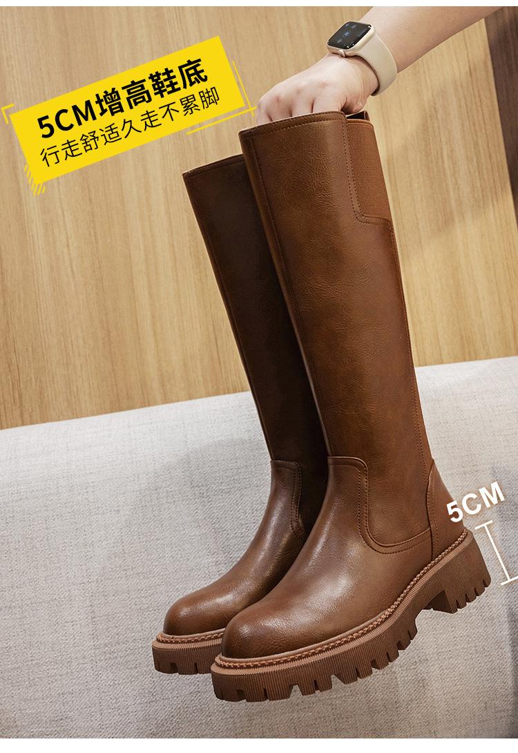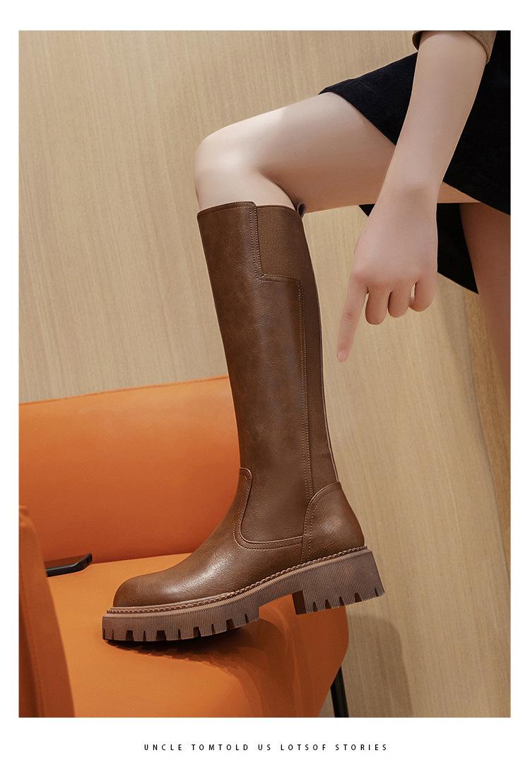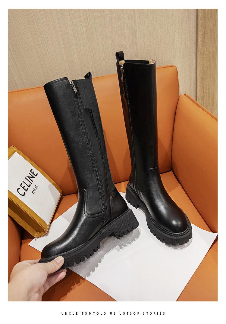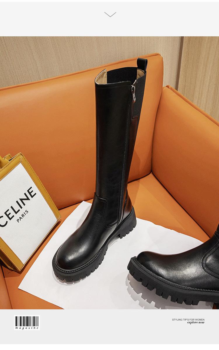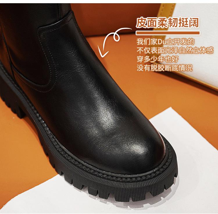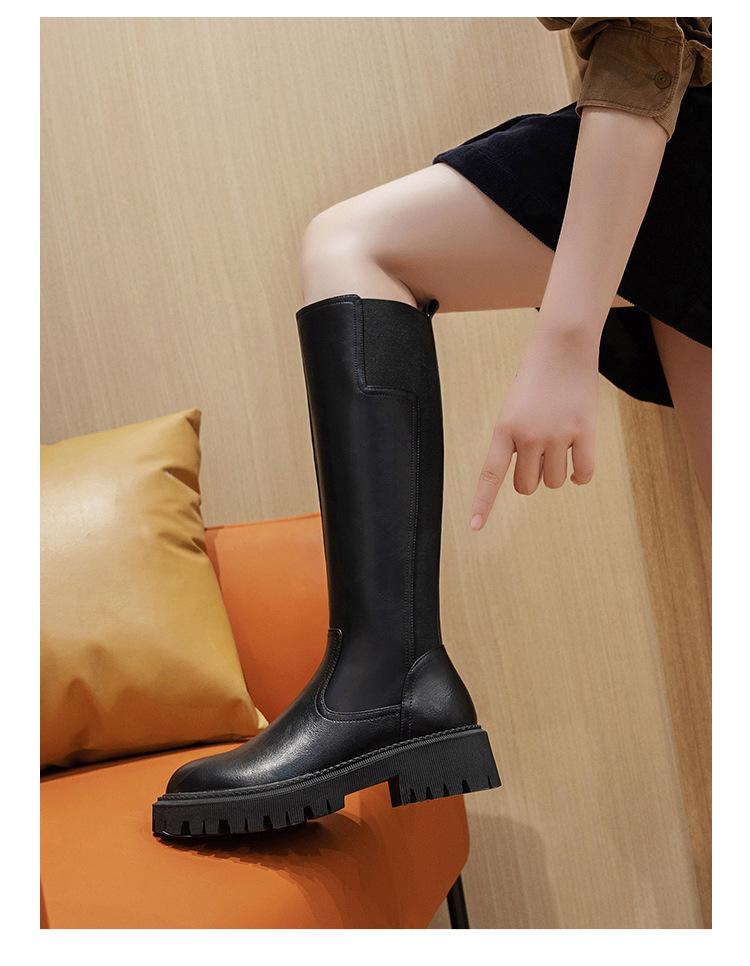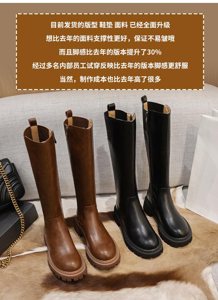 Botas de Caballero Botas de Boca V para Mujer 2025 Nuevo Otoño e Invierno Suela Gruesa mm Ancho Tubo Grande Forradas de Vellón Tubo Alto Talla Grande Botas de Mujer
