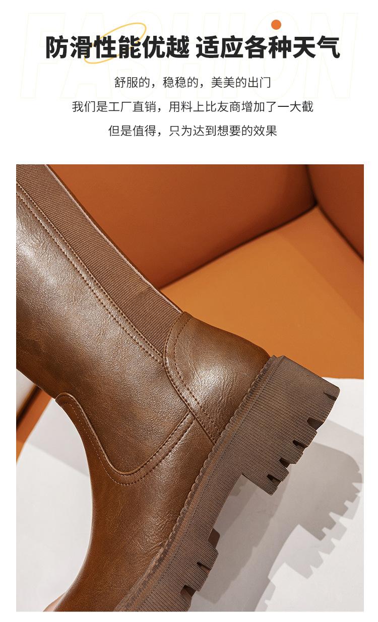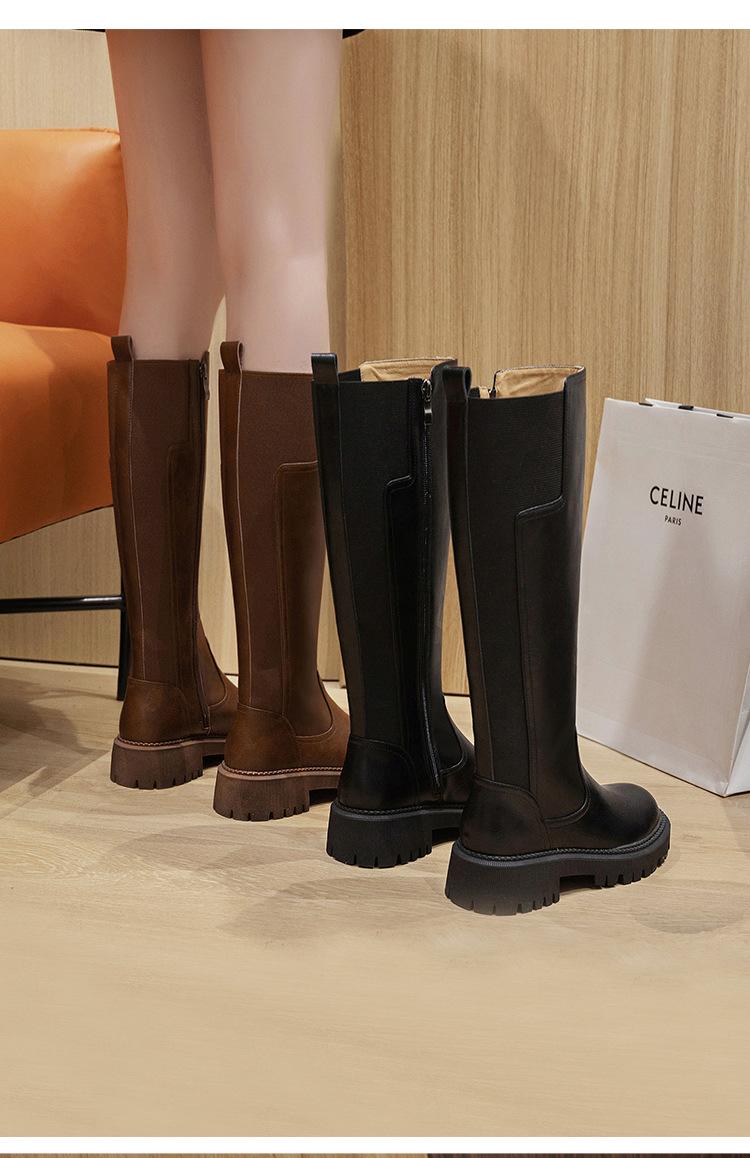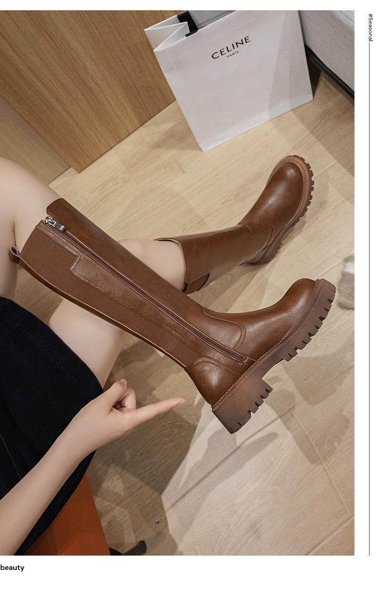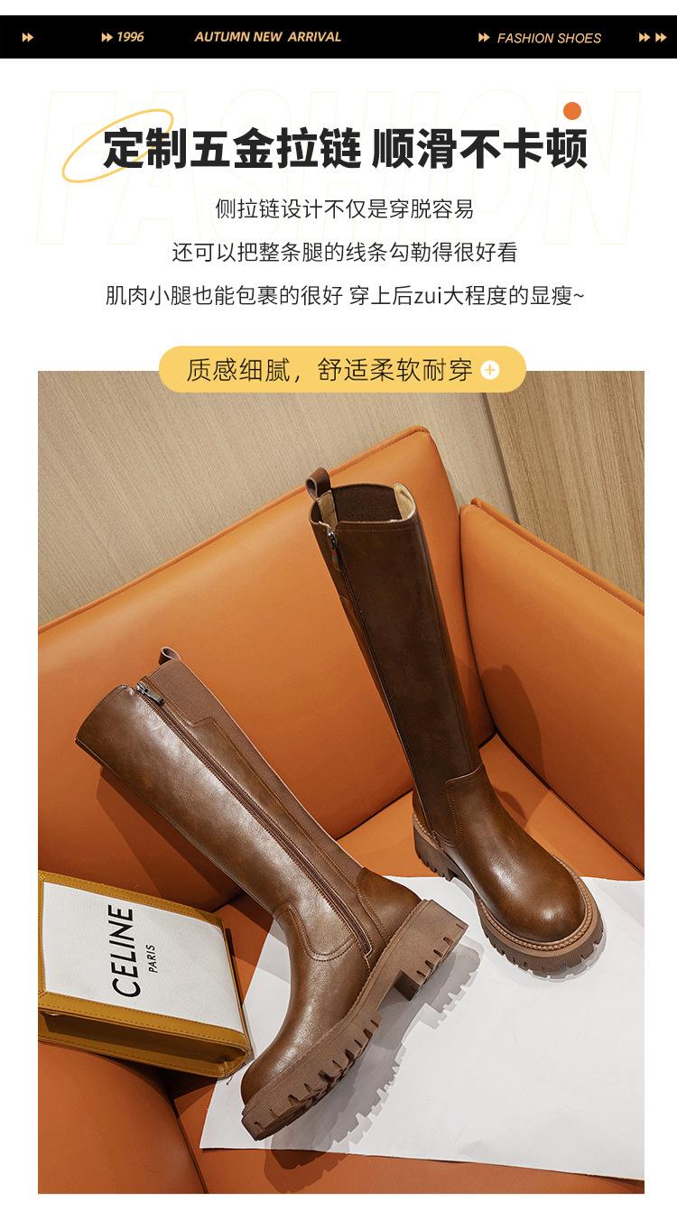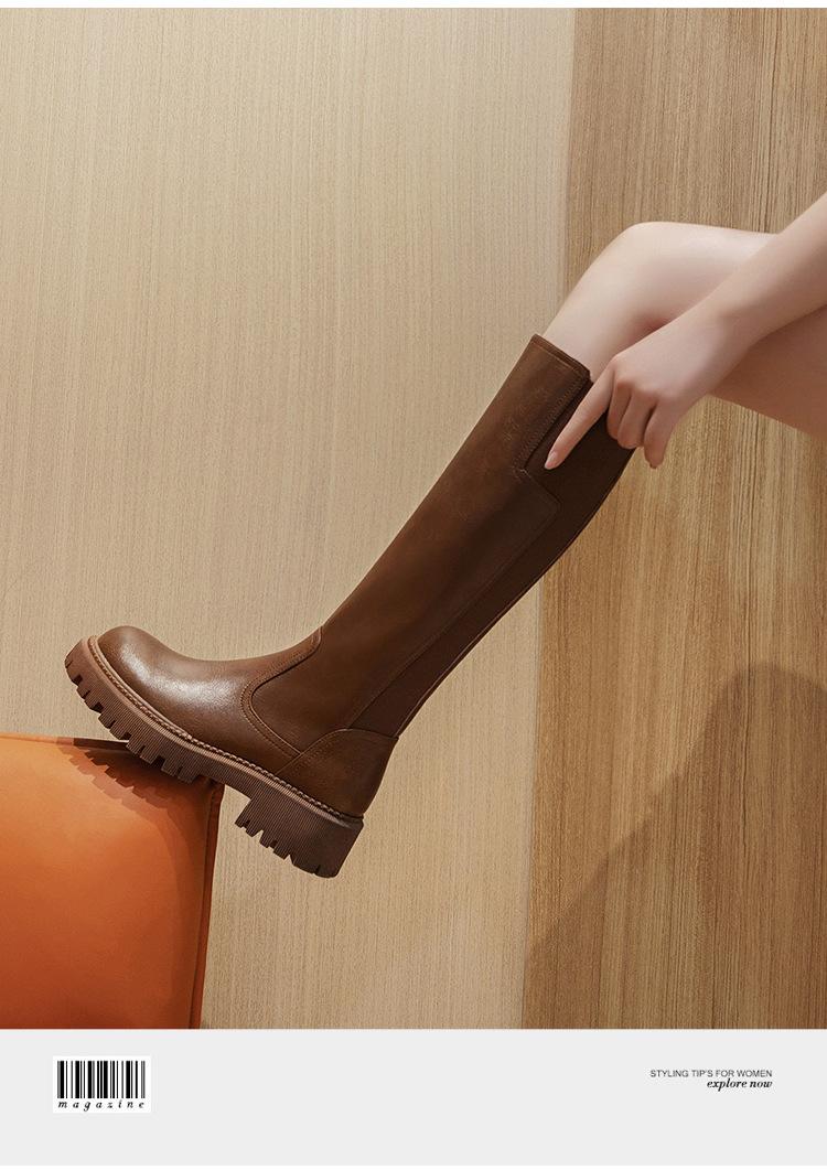 Botas de Caballero Botas de Boca V para Mujer 2025 Nuevo Otoño e Invierno Suela Gruesa mm Ancho Tubo Grande Forradas de Vellón Tubo Alto Talla Grande Botas de Mujer