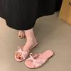 Sandalias de Verano para Mujer 2024 Nuevo Estilo Coreano Moda Lazo Punta Abierta Plataforma Fondo Plano Estilo Hada Chanclas
