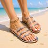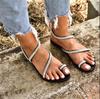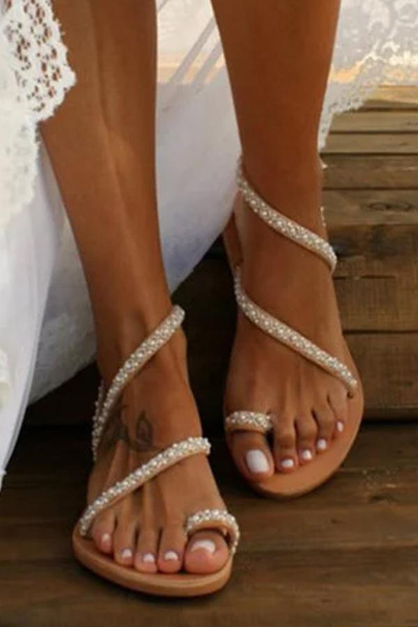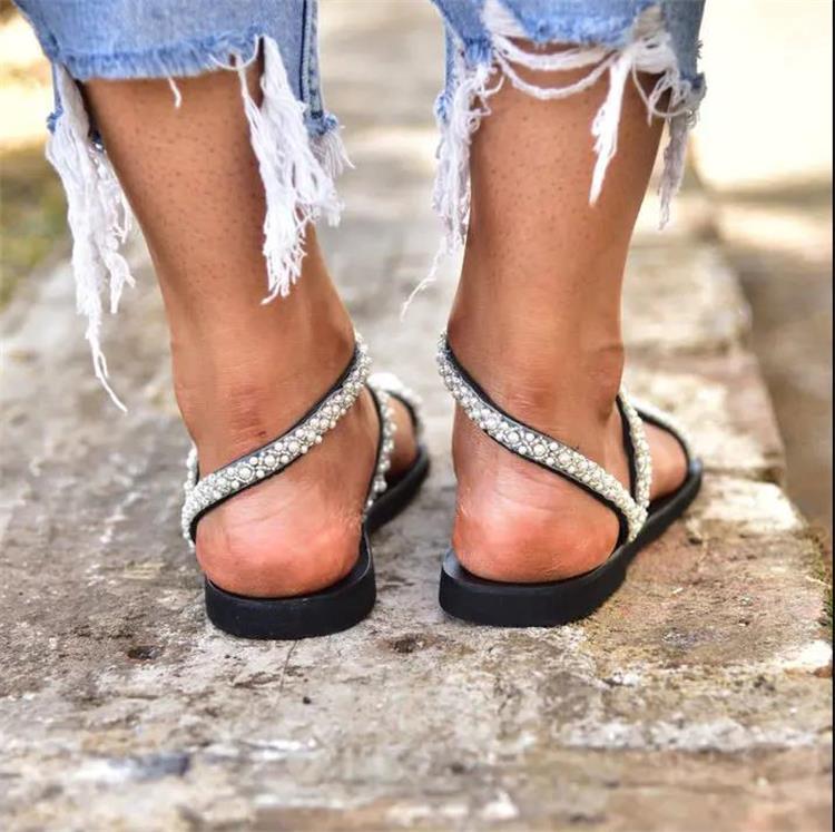 Verano 2025 Nuevas Sandalias Planas Tipo Chancla Europea y Americana con Perlas para Mujer Dropshipping Transfronterizo Talla Grande Exportación Zapatos de Playa