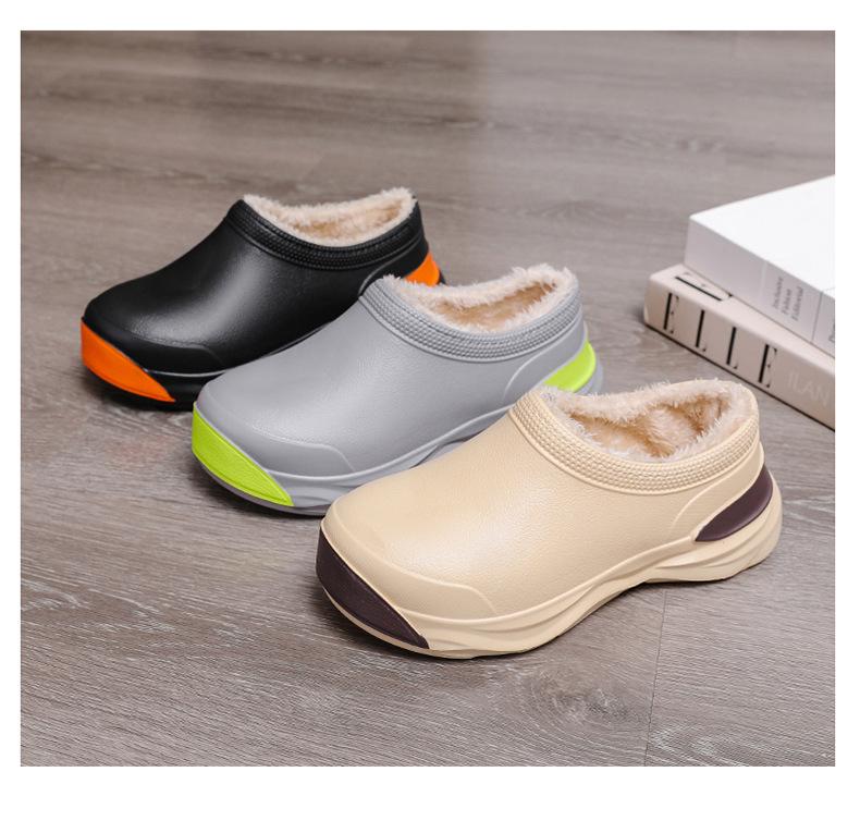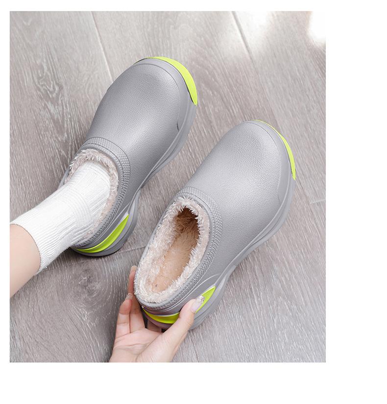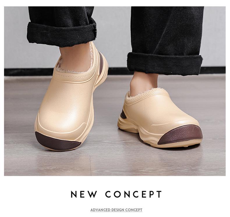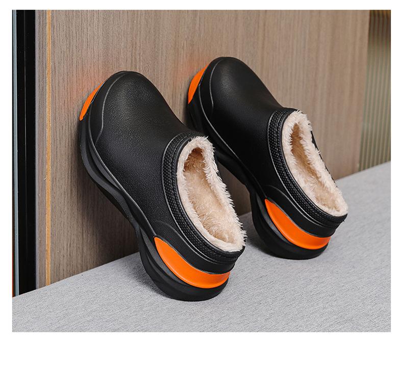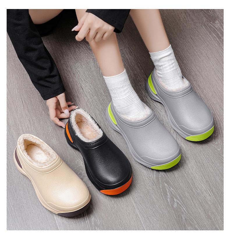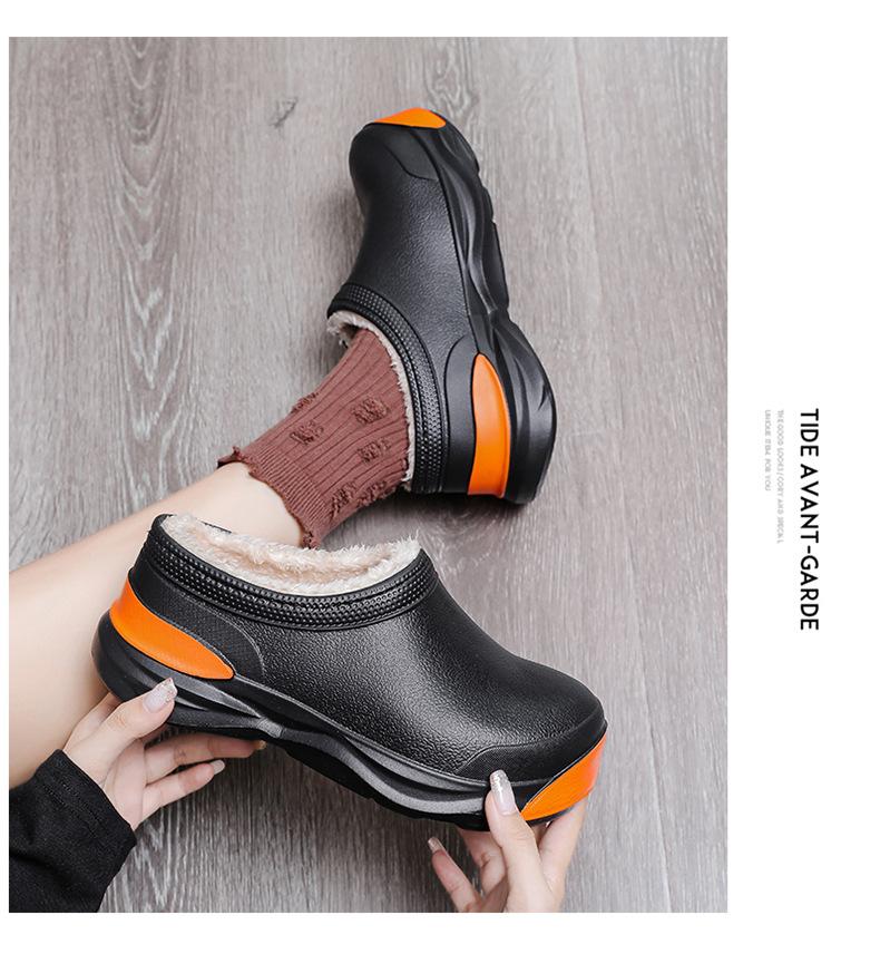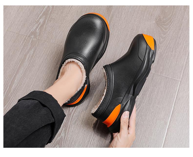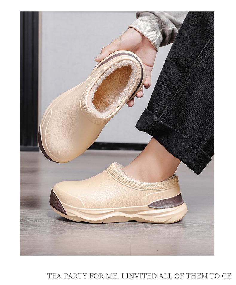 2024 nuevos zapatos de chef de invierno con forro polar, pantuflas de algodón de suela gruesa, zapatos cálidos de felpa impermeables para exteriores, zapatos de luna antideslizantes