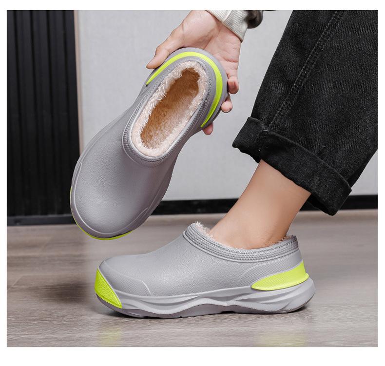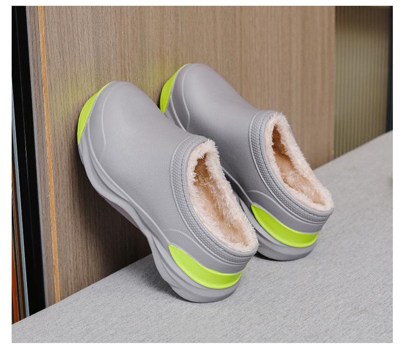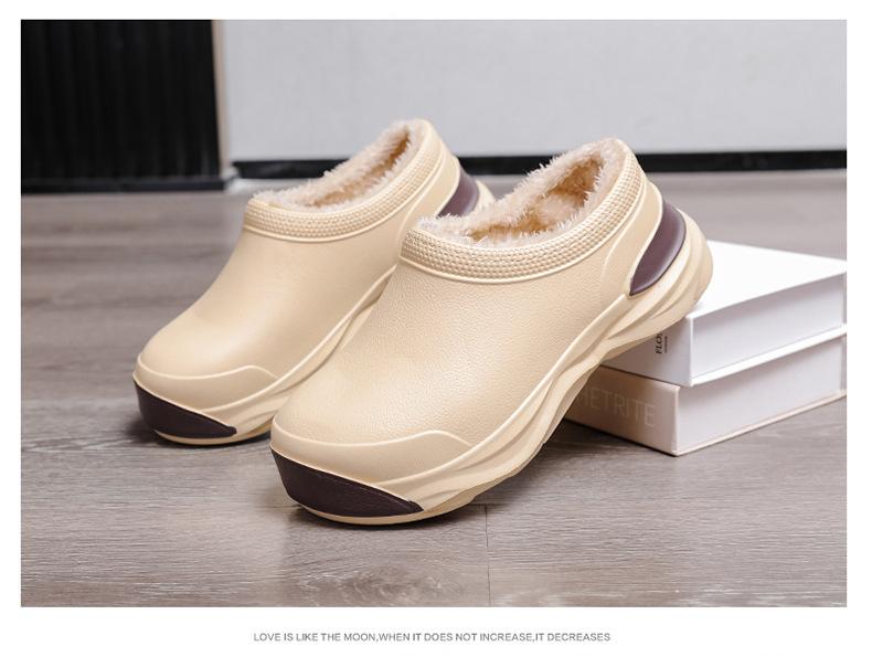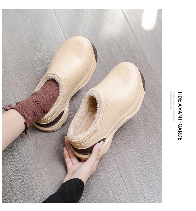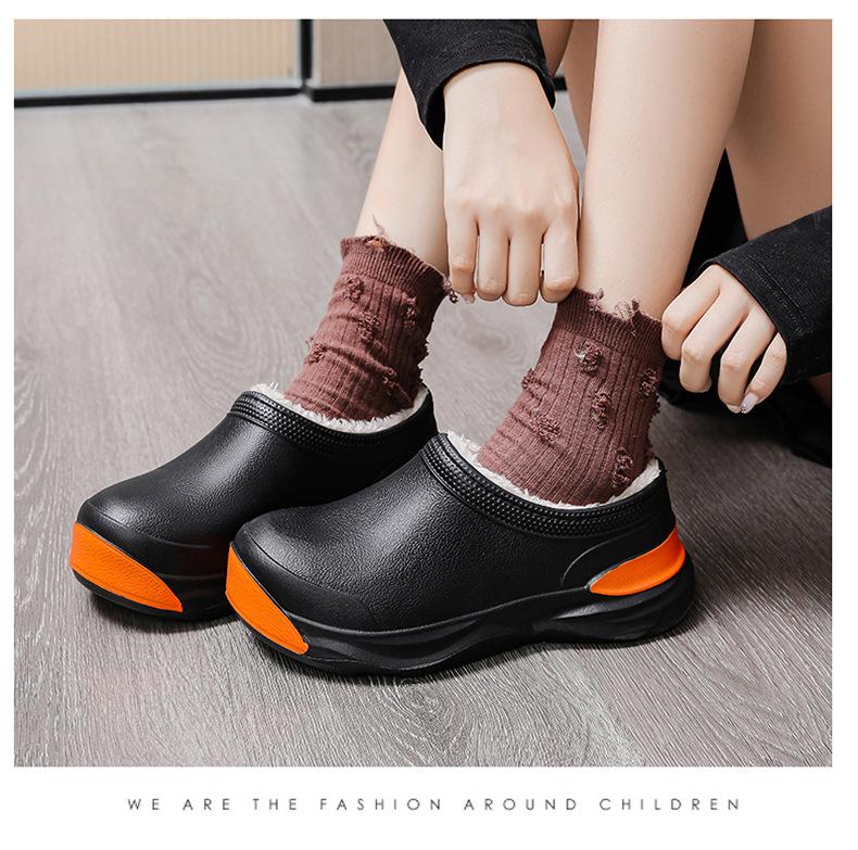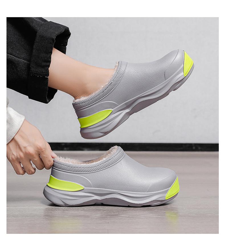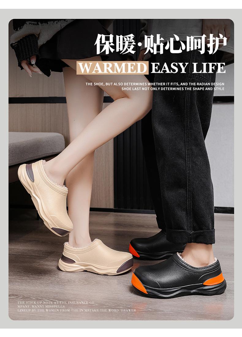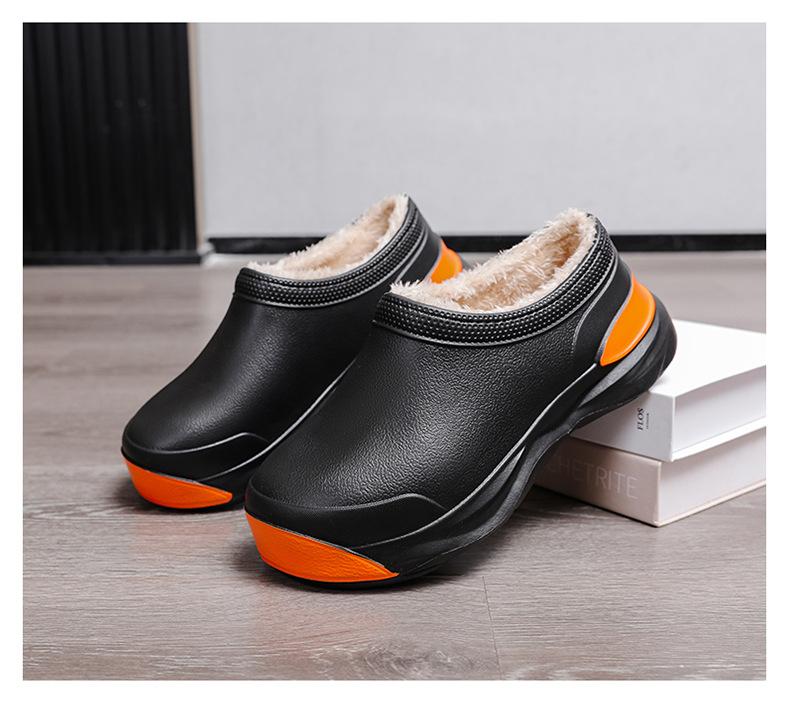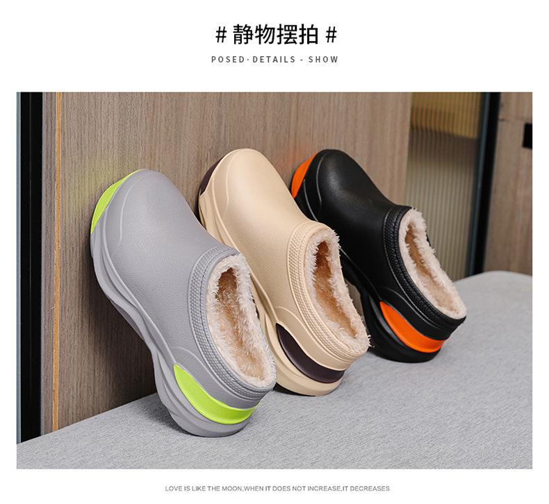 2024 nuevos zapatos de chef de invierno con forro polar, pantuflas de algodón de suela gruesa, zapatos cálidos de felpa impermeables para exteriores, zapatos de luna antideslizantes