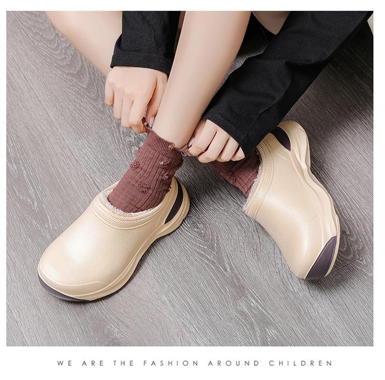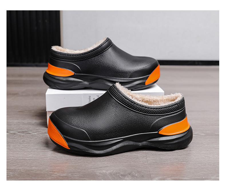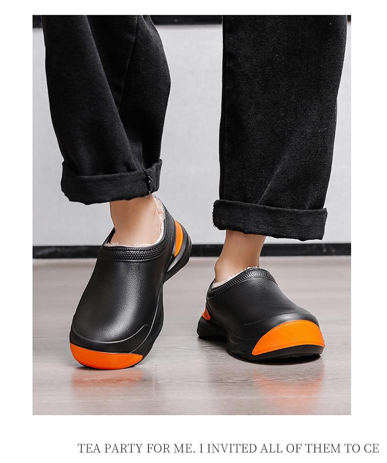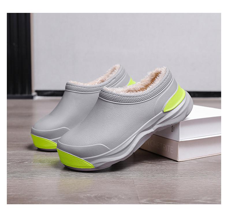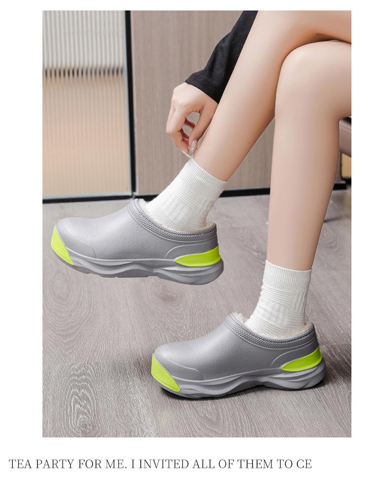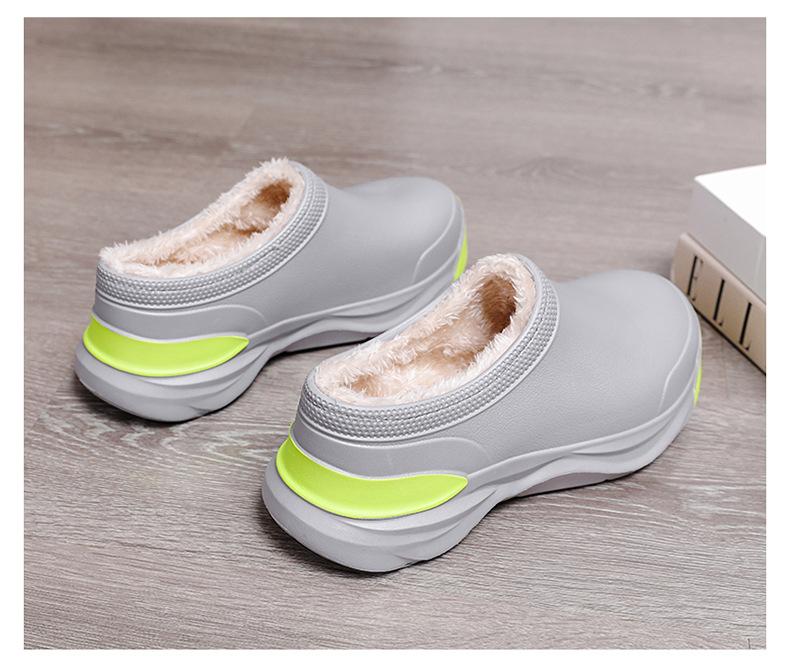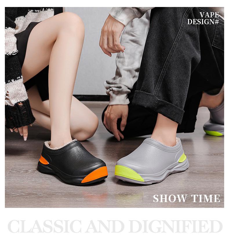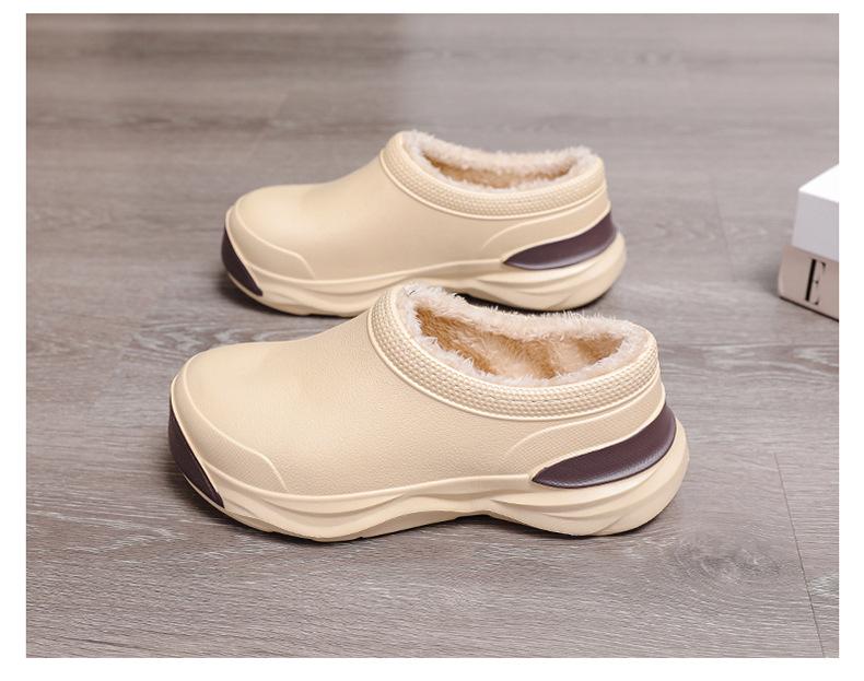 2024 nuevos zapatos de chef de invierno con forro polar, pantuflas de algodón de suela gruesa, zapatos cálidos de felpa impermeables para exteriores, zapatos de luna antideslizantes