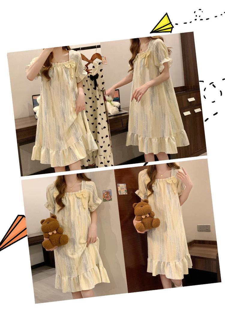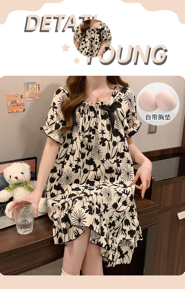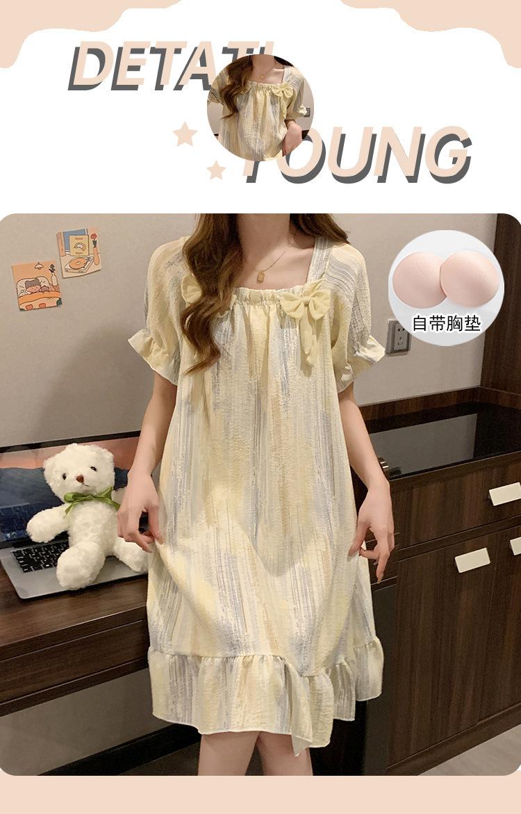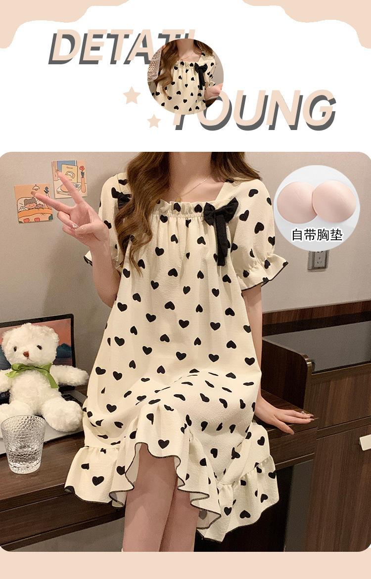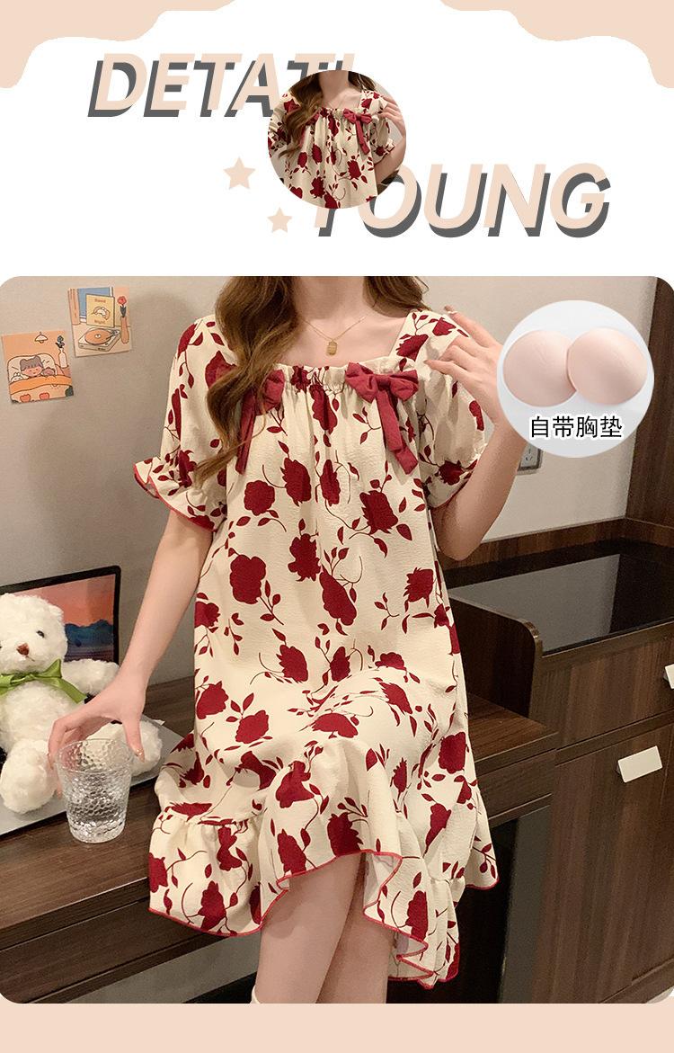 Pijama Transfronterizo para Mujer Verano Manga Corta Algodón Espuma Camisón con Almohadilla en el Pecho Dulce Lindo Delgado Ropa Exterior para el Hogar