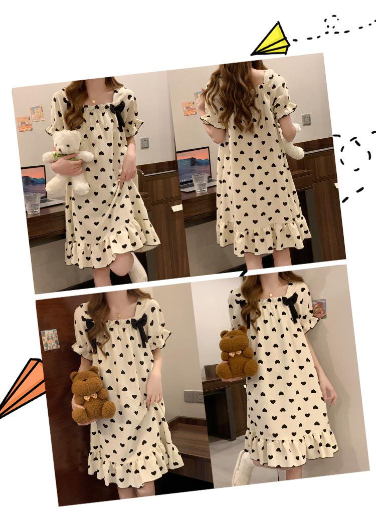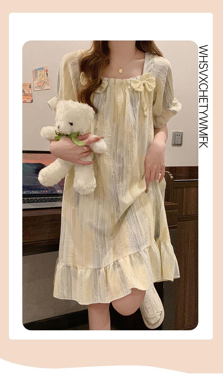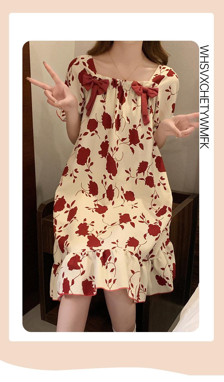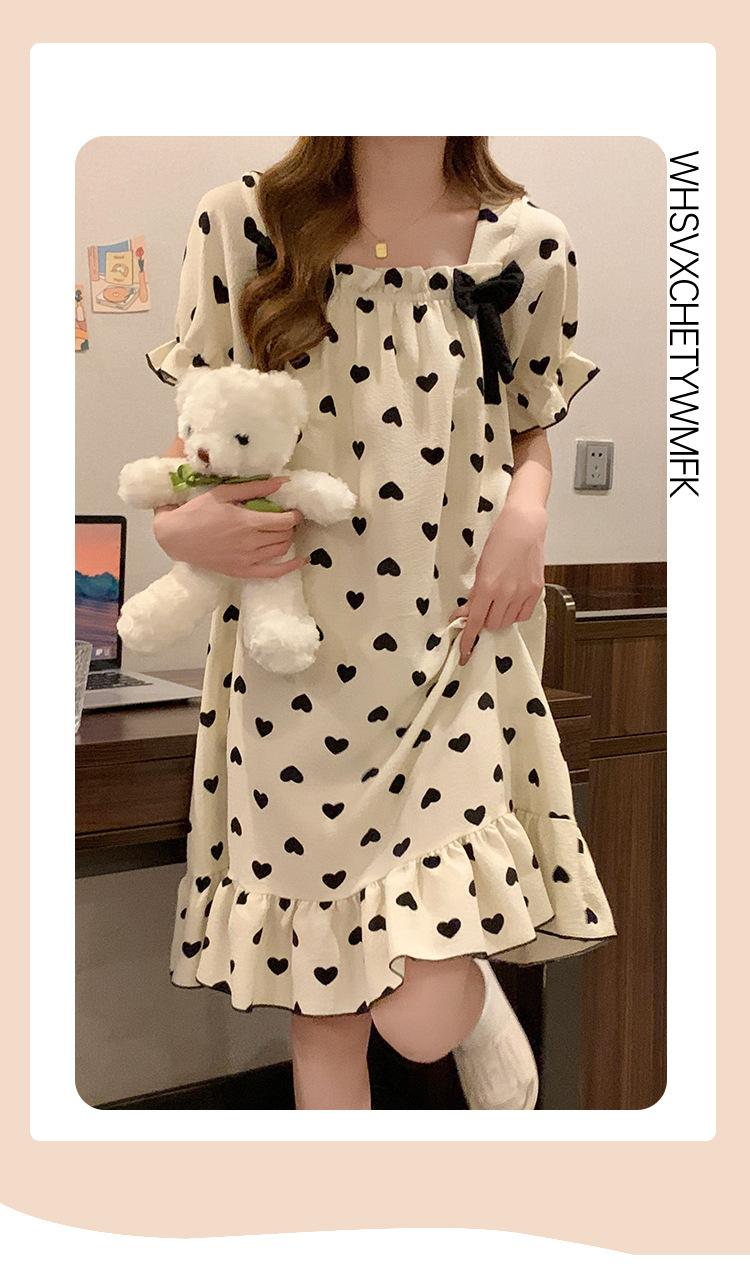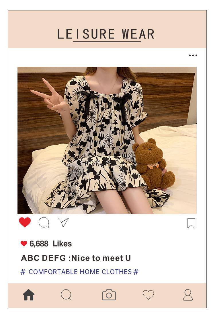 Pijama Transfronterizo para Mujer Verano Manga Corta Algodón Espuma Camisón con Almohadilla en el Pecho Dulce Lindo Delgado Ropa Exterior para el Hogar
