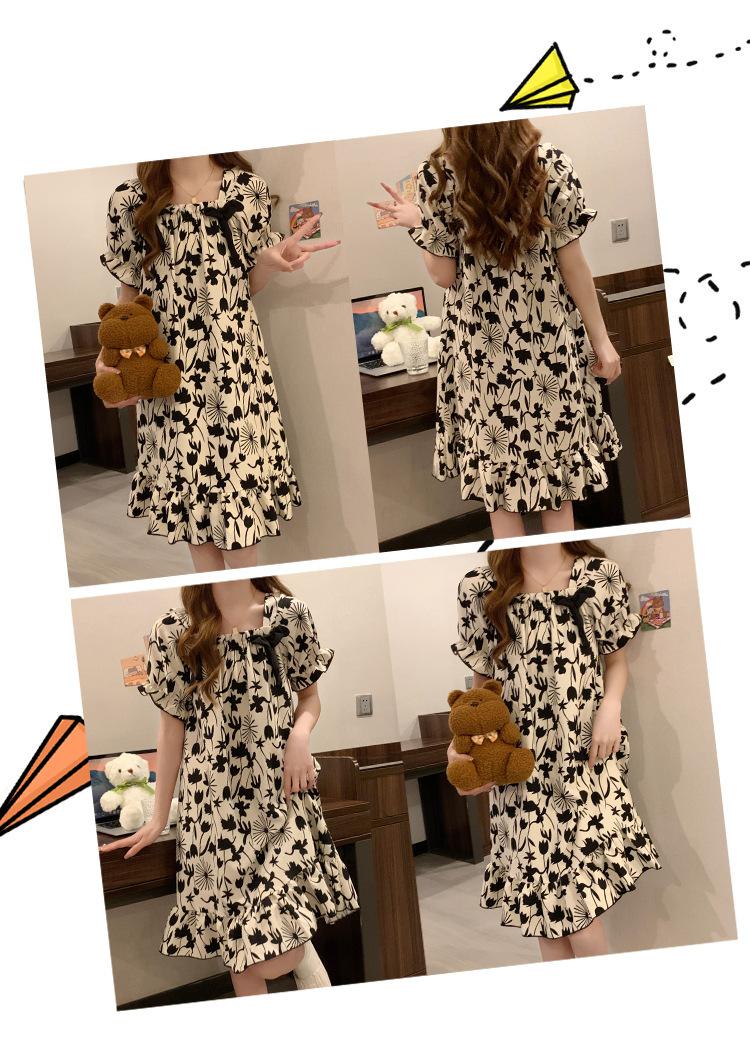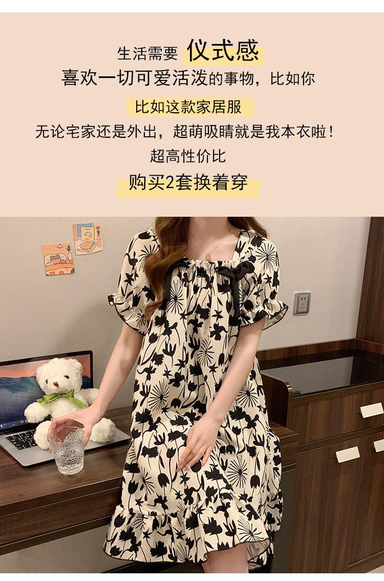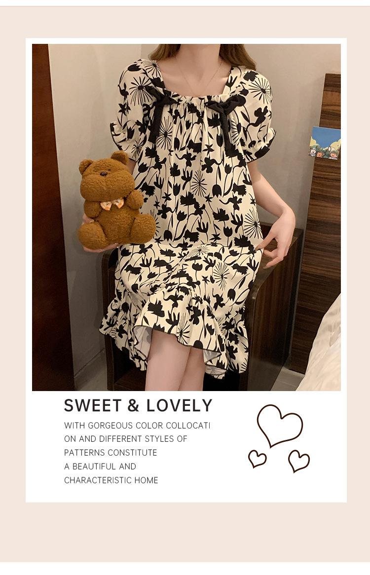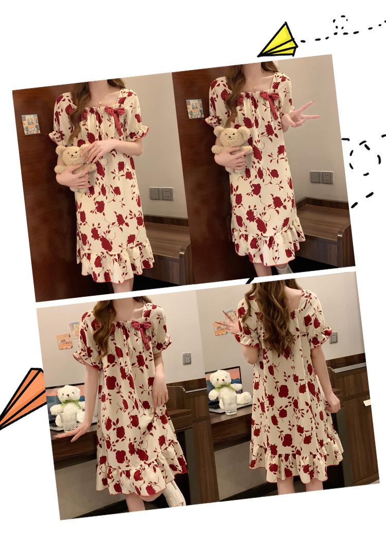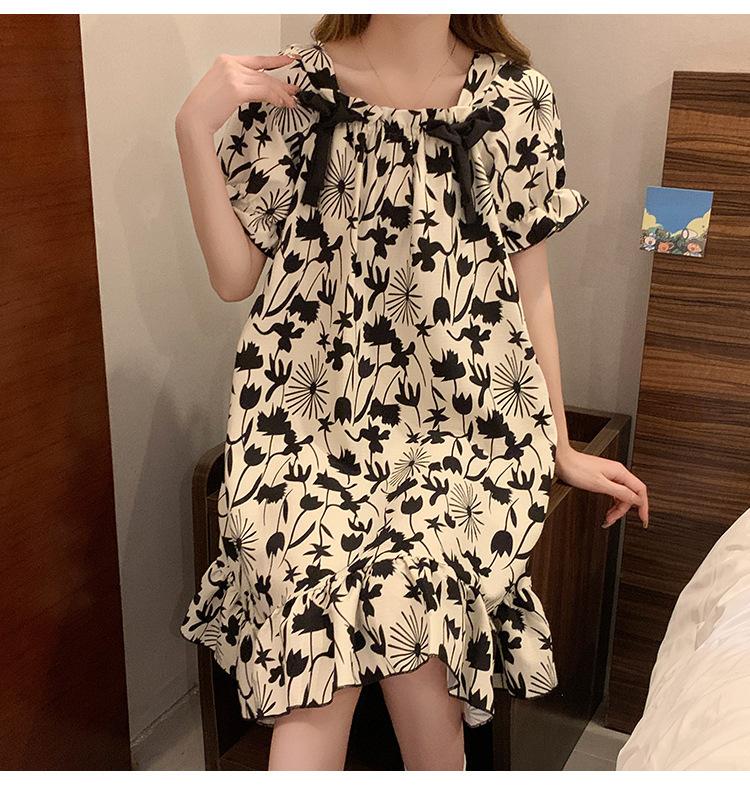 Pijama Transfronterizo para Mujer Verano Manga Corta Algodón Espuma Camisón con Almohadilla en el Pecho Dulce Lindo Delgado Ropa Exterior para el Hogar