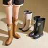 Botas de Lluvia Altas para Mujer Estilo Coreano Nuevas Botas de Lluvia para Estudiantes a la Moda Ropa Exterior Tubo Medio Antideslizantes Zapatos para Agua Engrosados para Todas las Estaciones