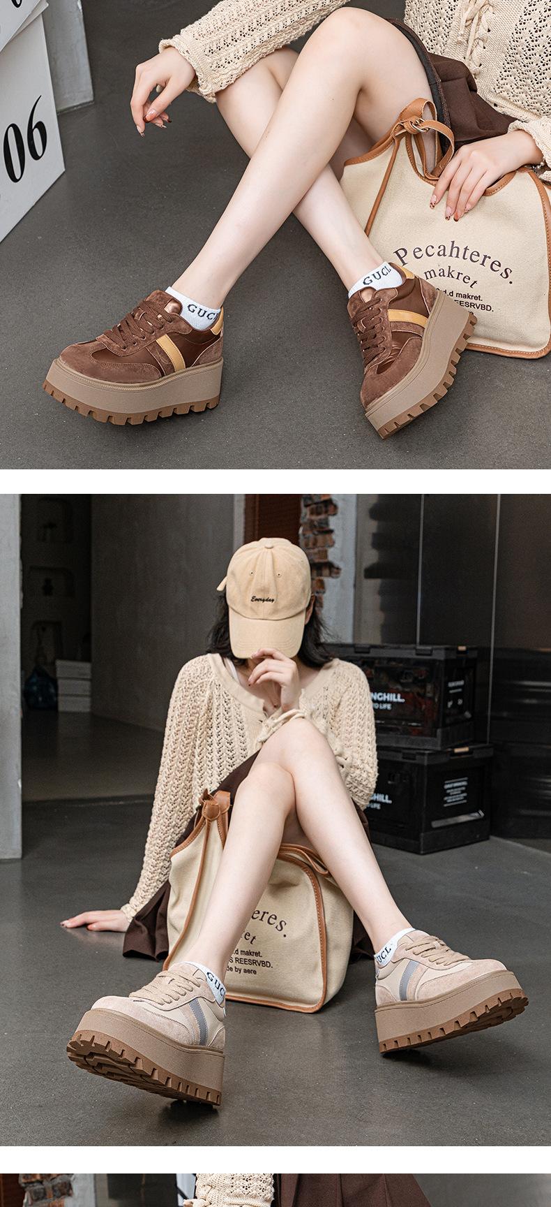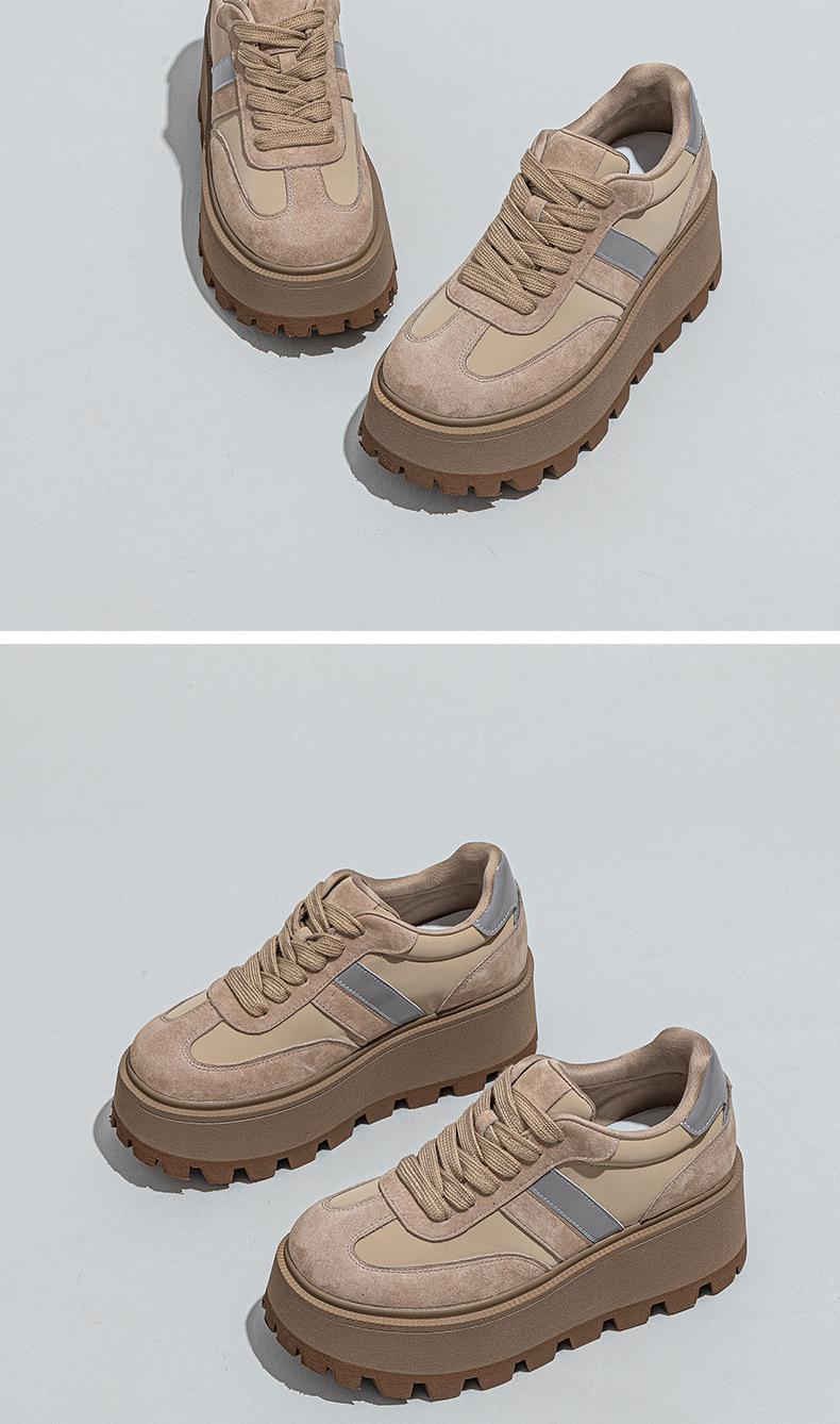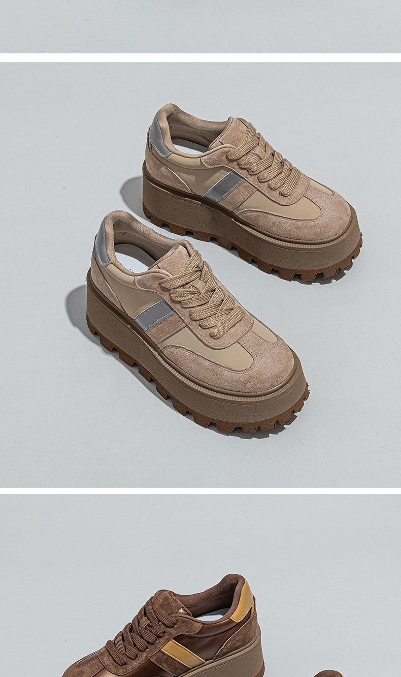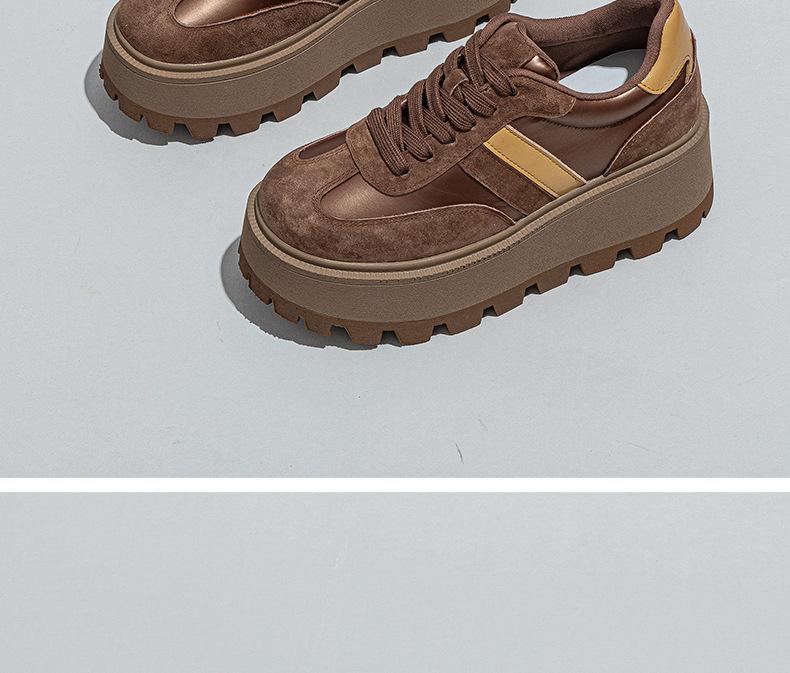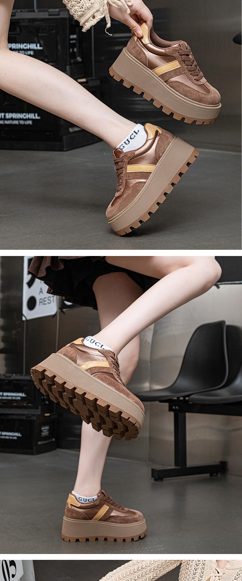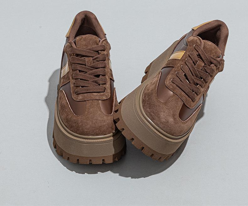 Zapatos de Plataforma Gruesa Aumentantes de Altura de Cuero Genuino para Mujer 2024 Otoño e Invierno Nuevos Zapatos Casuales con Cordones de Cuero de Ante para Mujer Casuales y Versátiles
