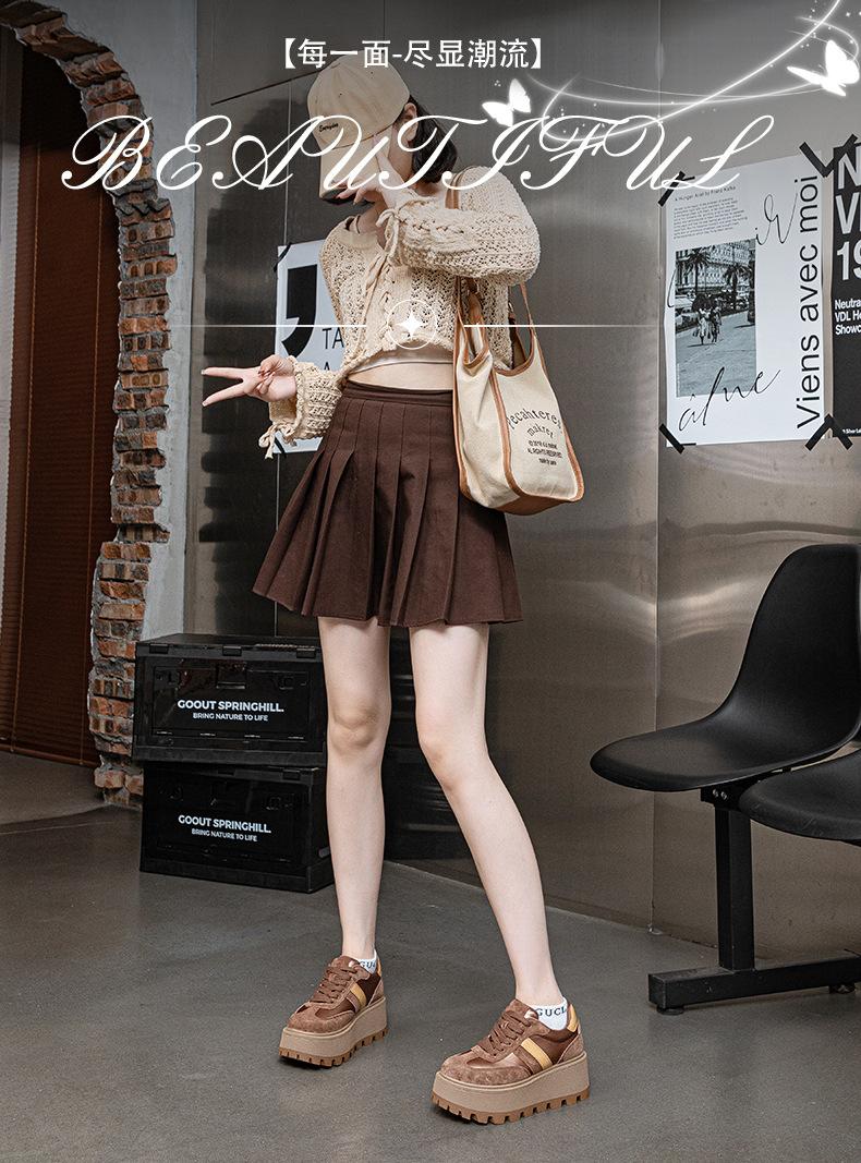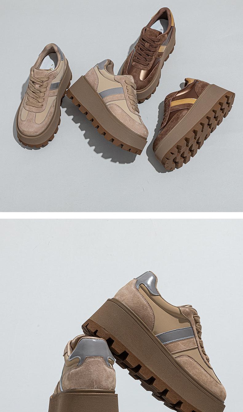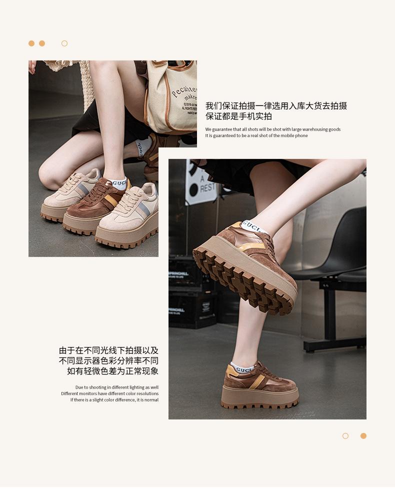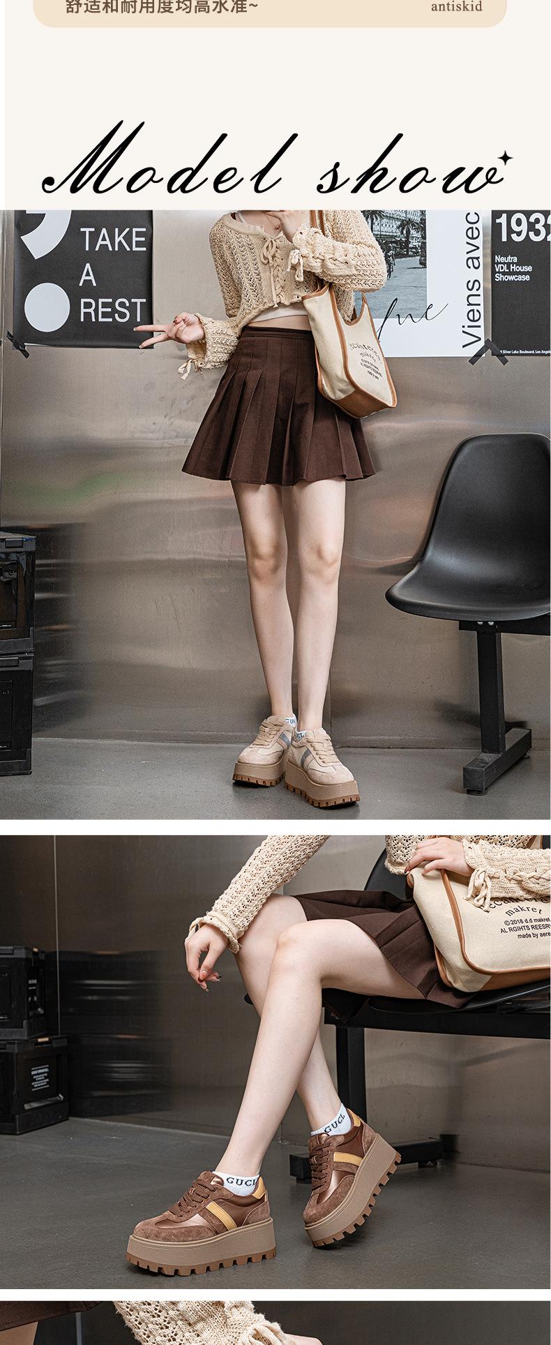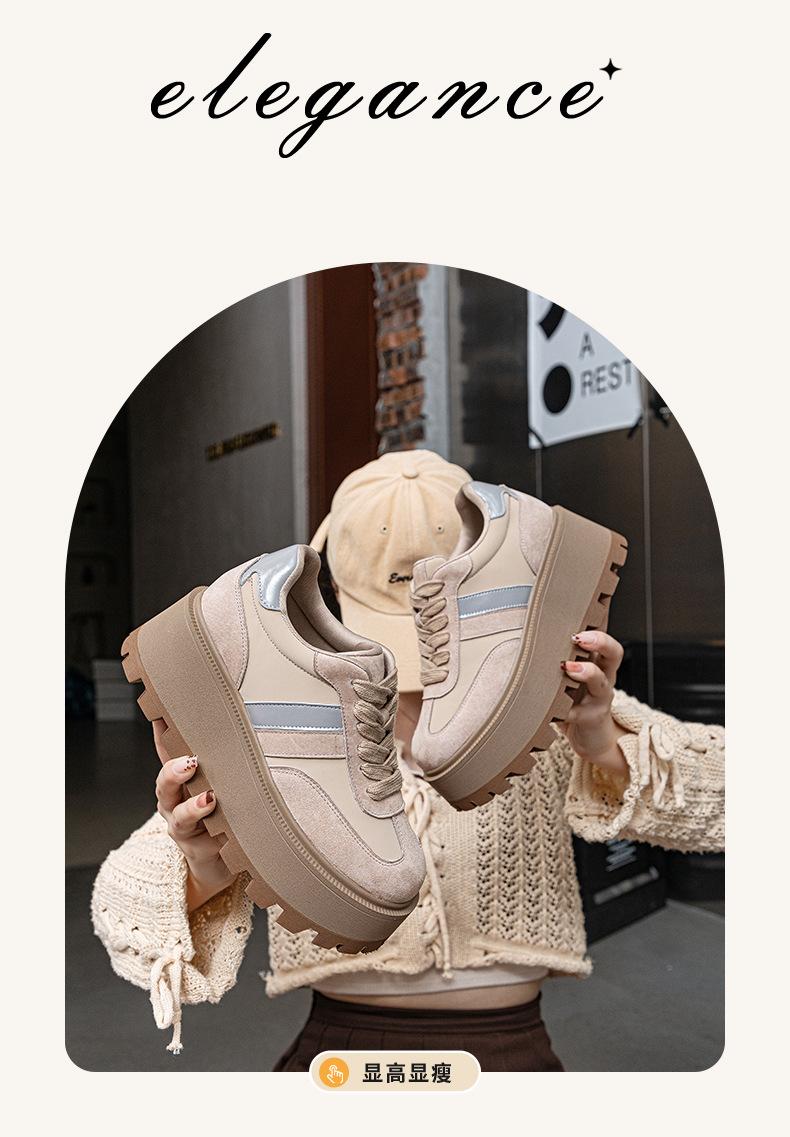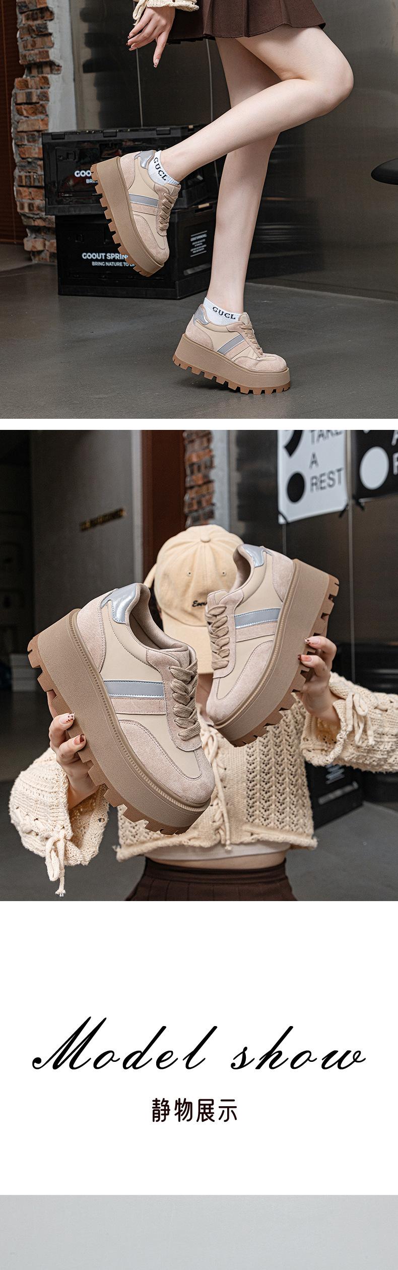 Zapatos de Plataforma Gruesa Aumentantes de Altura de Cuero Genuino para Mujer 2024 Otoño e Invierno Nuevos Zapatos Casuales con Cordones de Cuero de Ante para Mujer Casuales y Versátiles