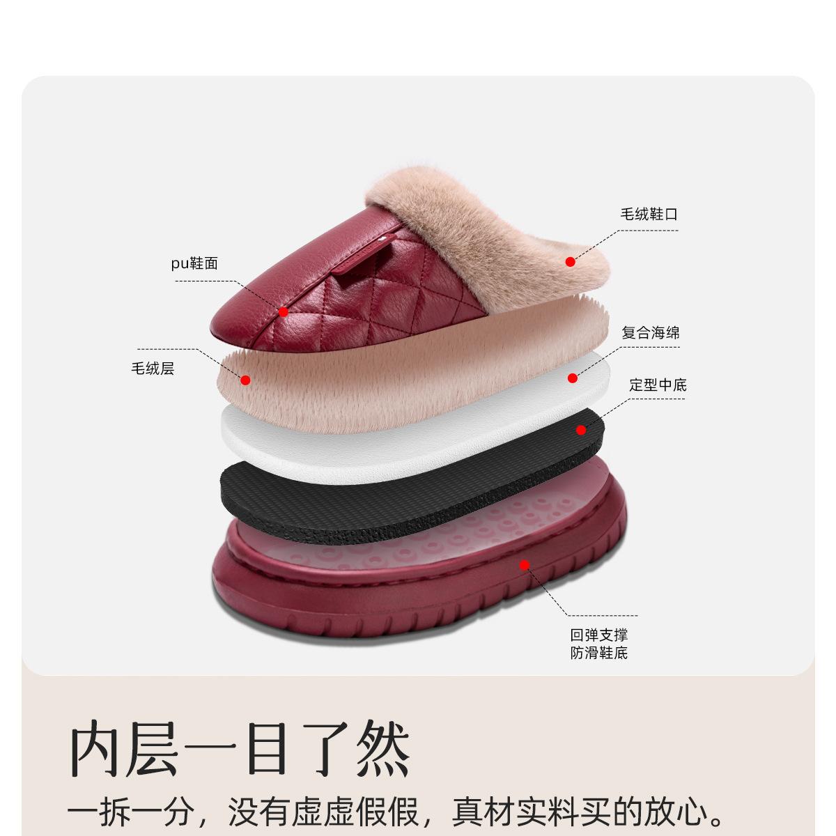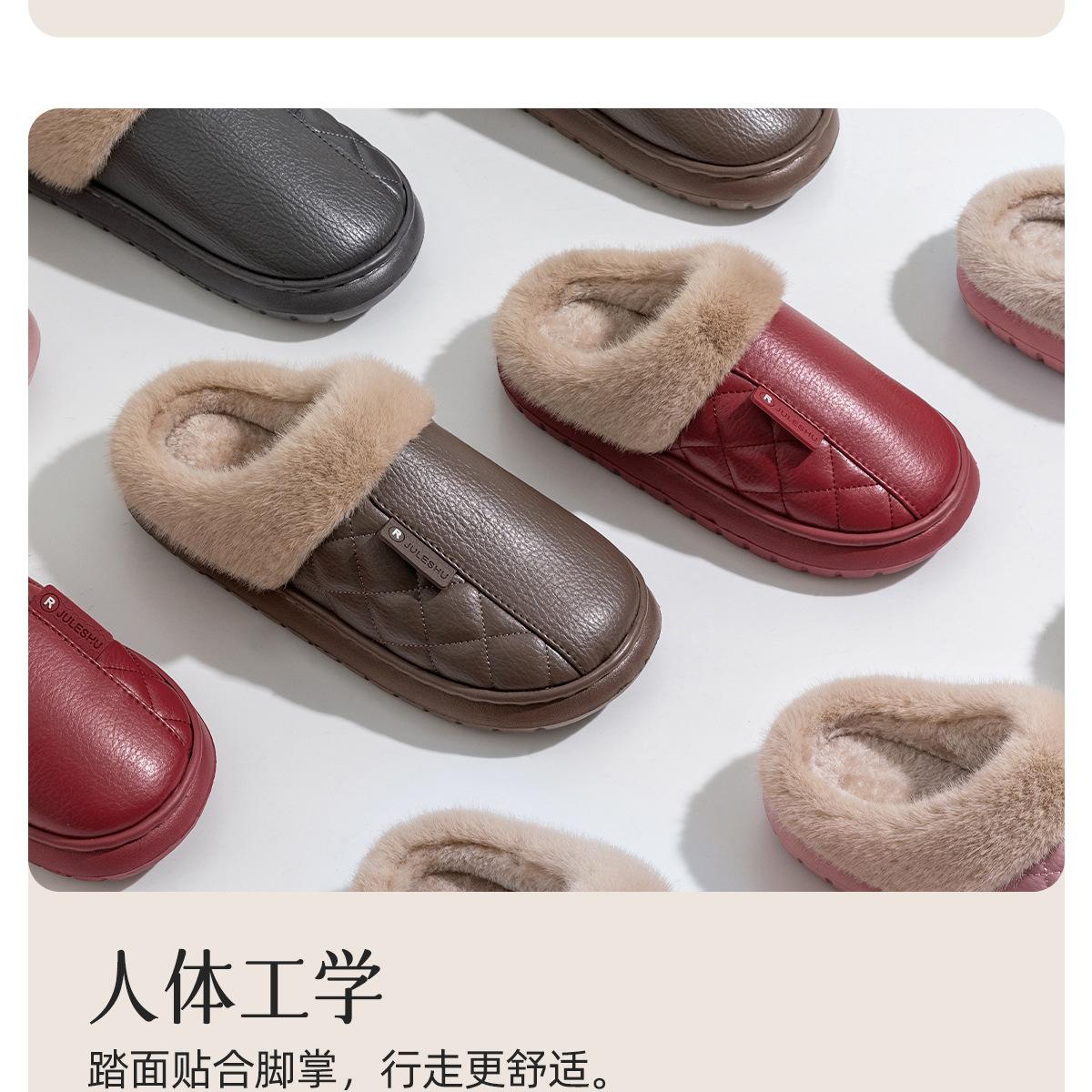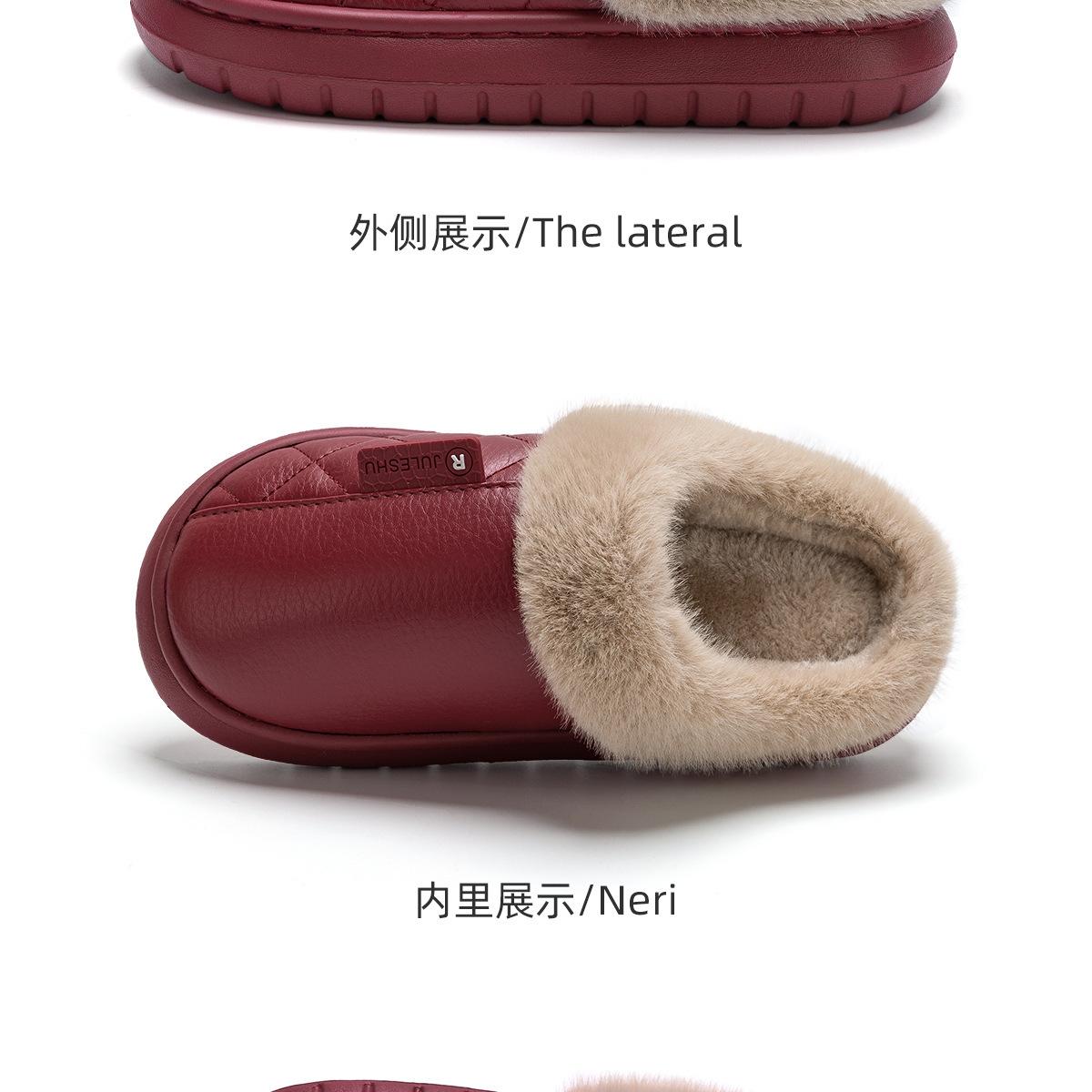 Pantuflas de Algodón y Cuero para Hombre en Otoño e Invierno 2025 Nuevas para Interior Hogar Pareja Suela Gruesa Antideslizantes Impermeables Pantuflas de Algodón para Mujer
