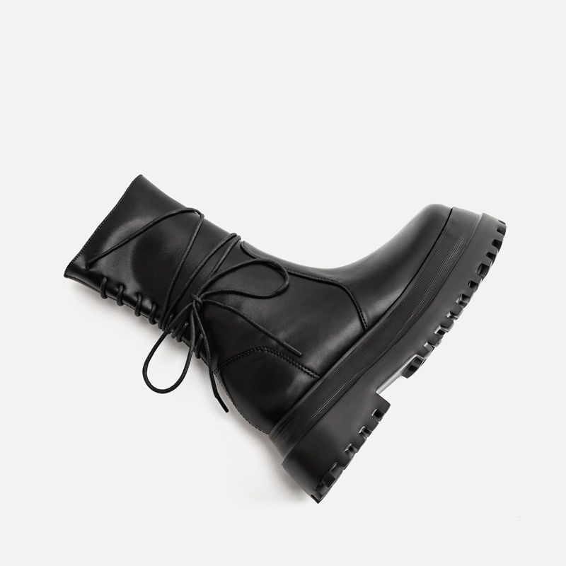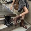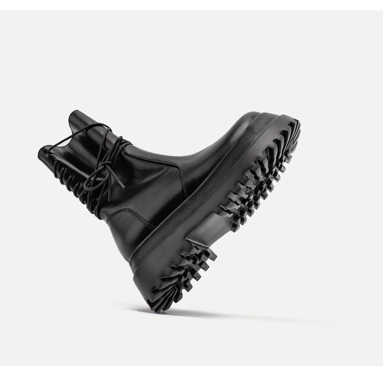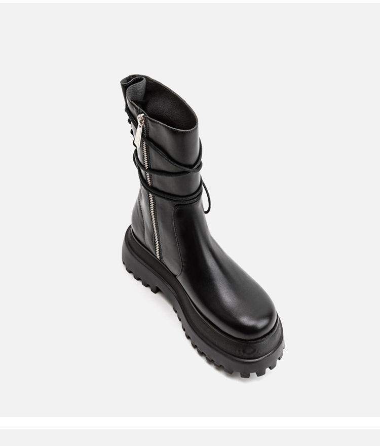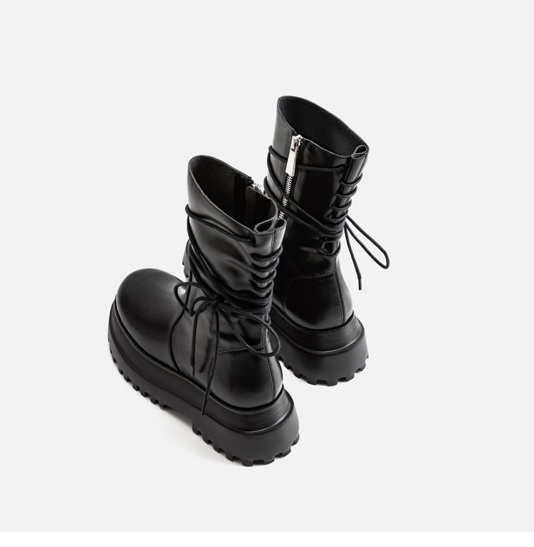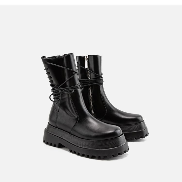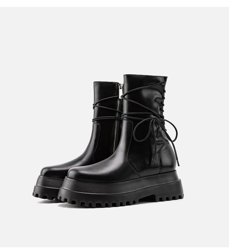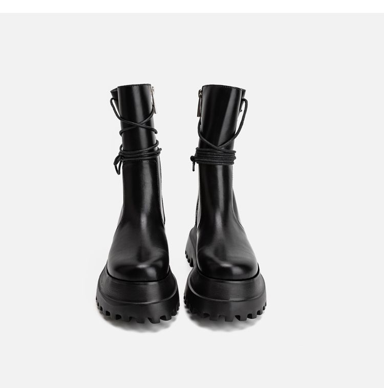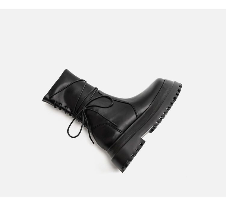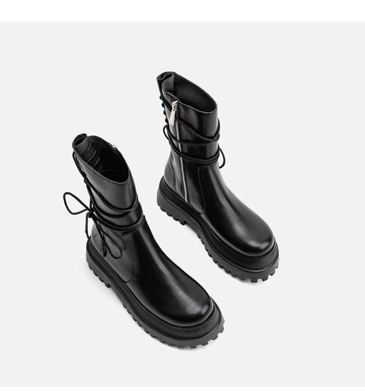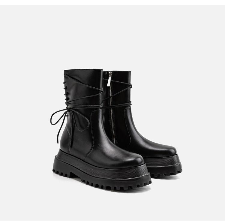 Botas Martin de suela gruesa para mujer, negras, otoño 2023, nuevas botas cortas con cremallera lateral, botas de caballero con cordones en la parte trasera, botas de media pantorrilla