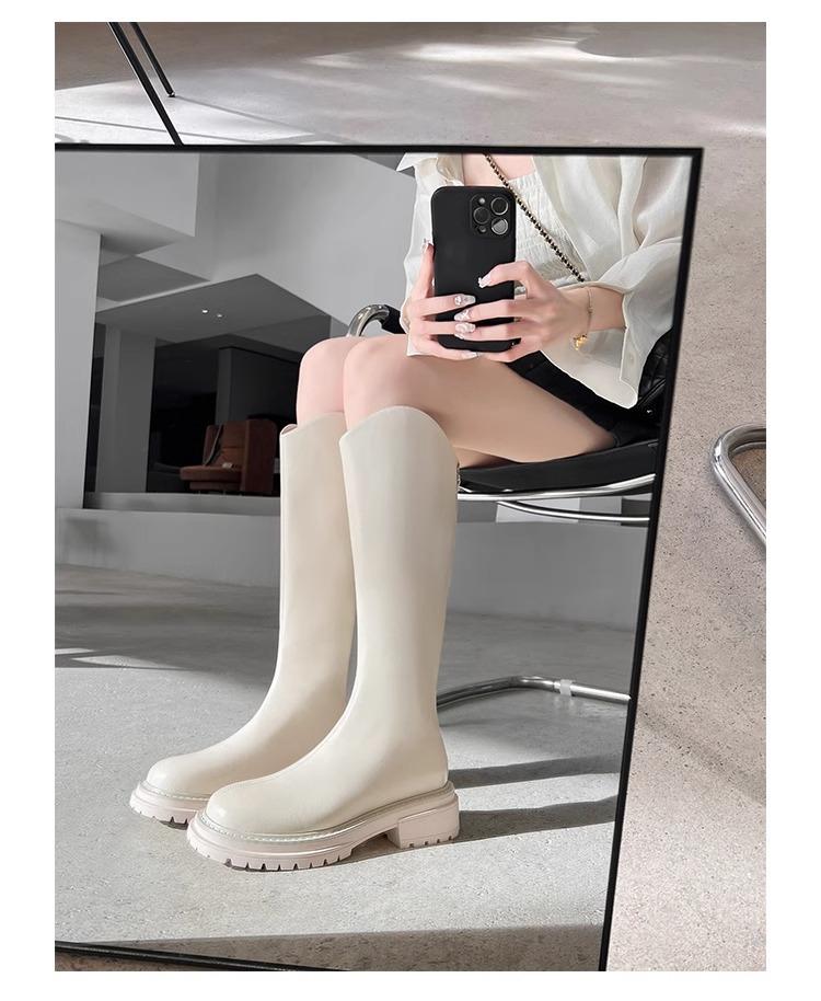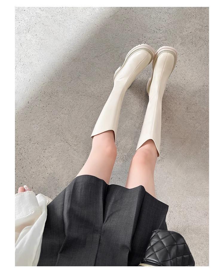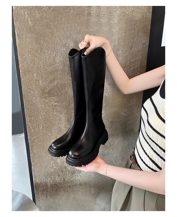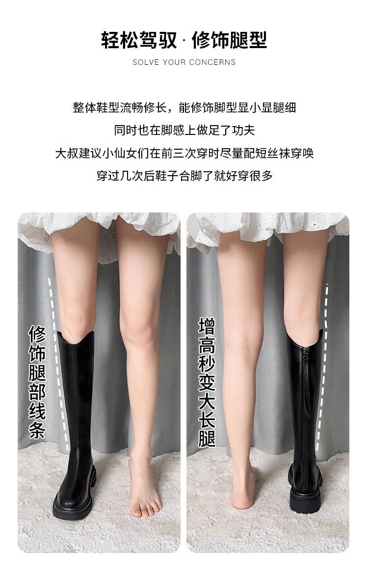 [Liquidación] Botas ajustadas de suela gruesa, pequeñas, elásticas, con boca en V, largas y con cremallera trasera, botas altas de caballero