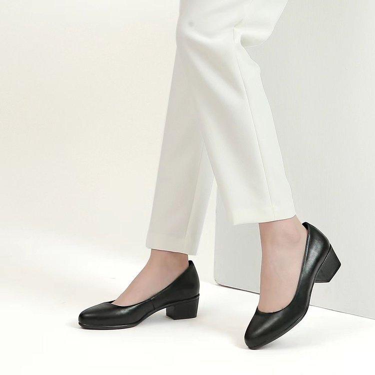 Zapatos de Boca Baja de Punta Redonda con Tacón Plano de PU 2024 Goma