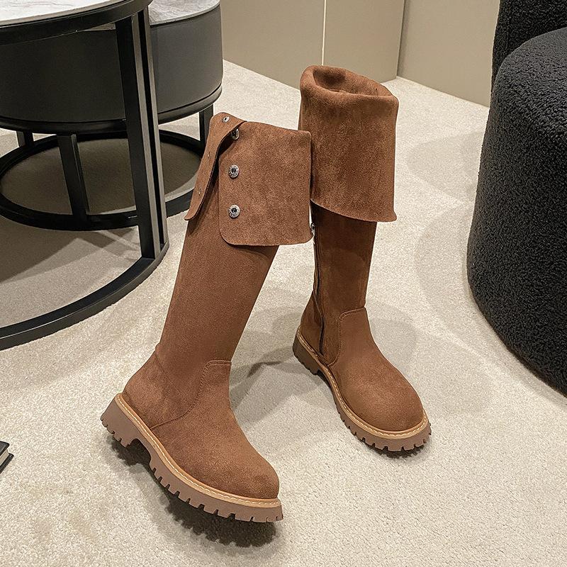 Botas Western Retro de Dos Usos Plegables de Suela Gruesa Otoño e Invierno Nueva Llegada Botas de Tacón Grueso por Encima de la Rodilla Botas de Caballero