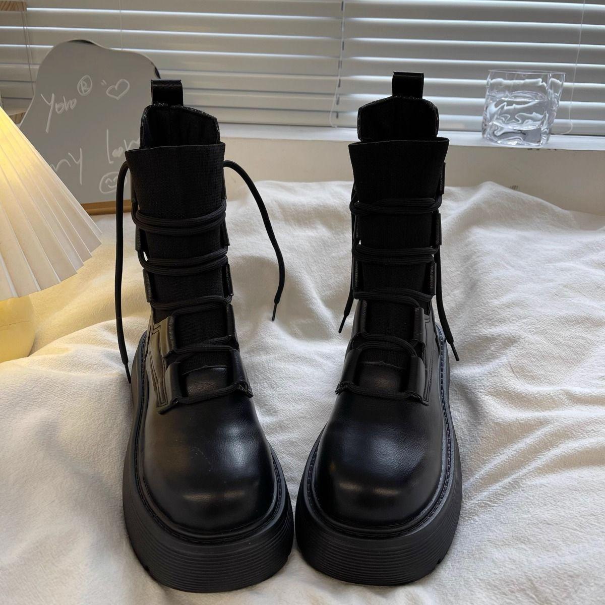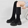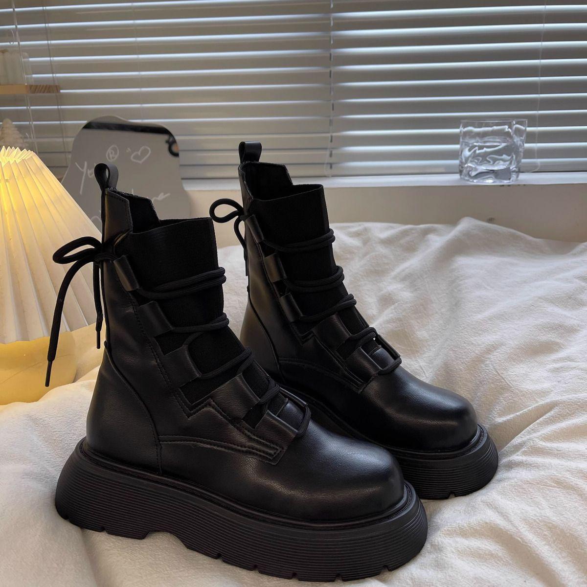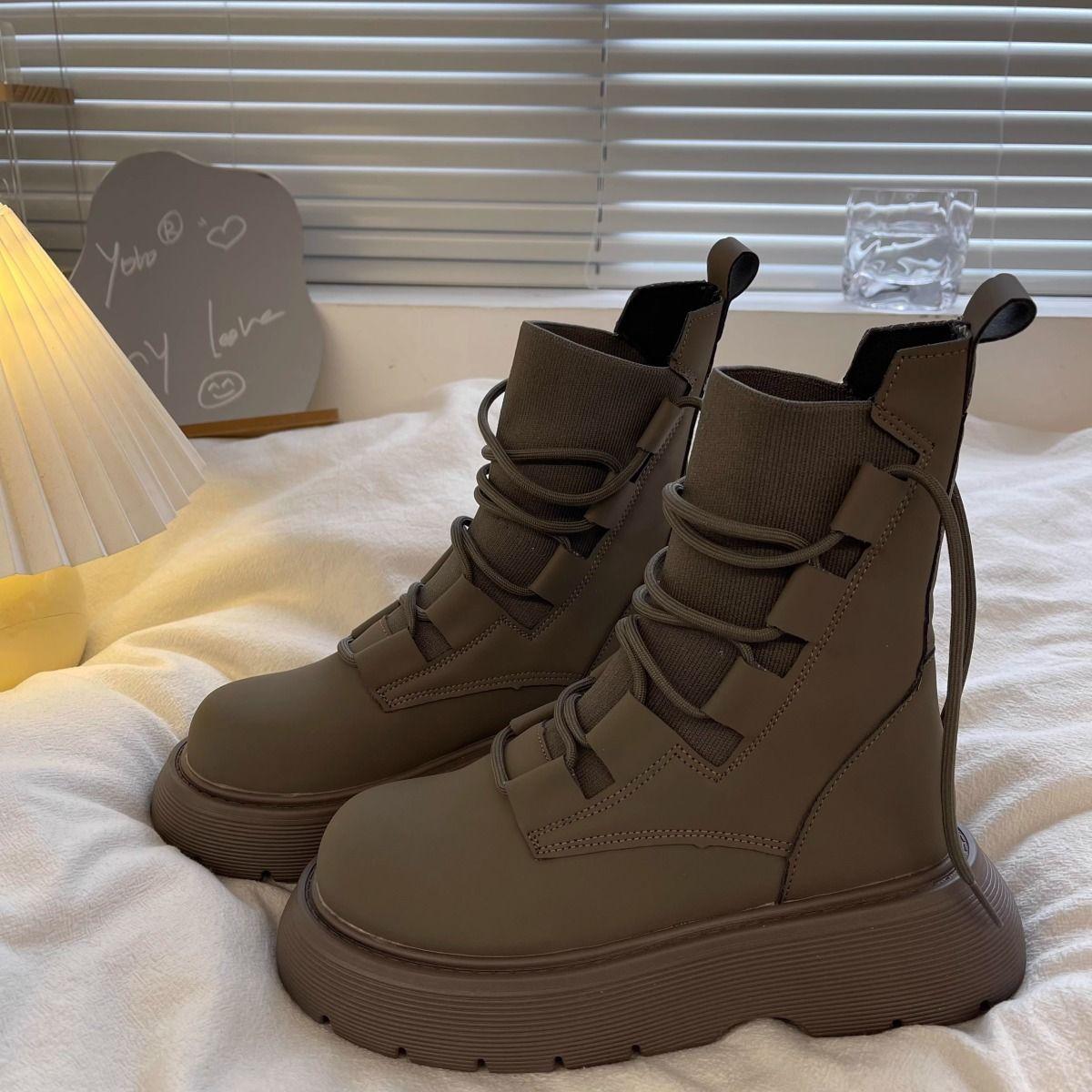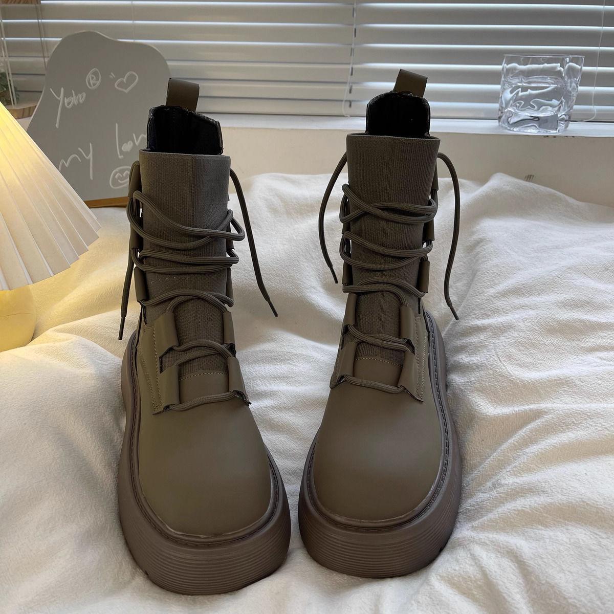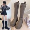 Botas Elásticas de Punto Ins Niche para Mujer 2024 Otoño e Invierno Nueva Moda Joker Fondo Grueso Antideslizantes con Forro Polar Botas Delgadas de Algodón