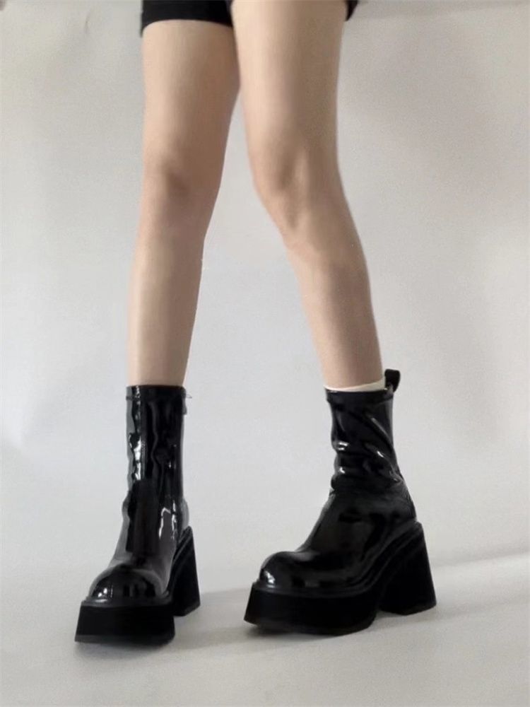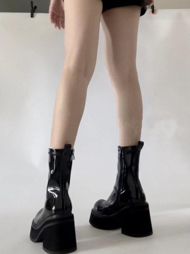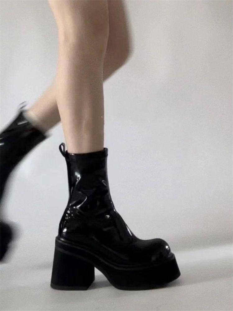 Botas Martin de tacón grueso negras para mujer, estilo americano, estilo hot girl, para otoño de 2023, nuevas botas cortas de tacón alto de Niche