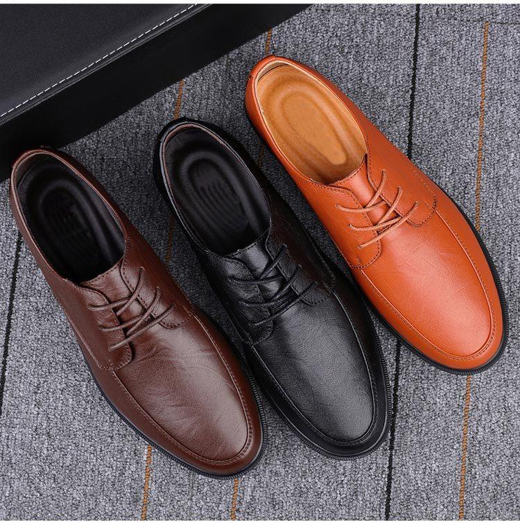 Zapatos de cuero para hombre de negocios, zapatos casuales de cuero para hombre británicos, zapatos de cuero transpirables antideslizantes de fondo suave, zapatos de trabajo para hombre, una generación de cabello