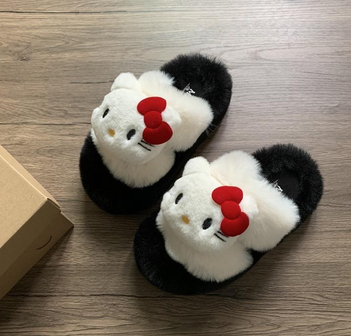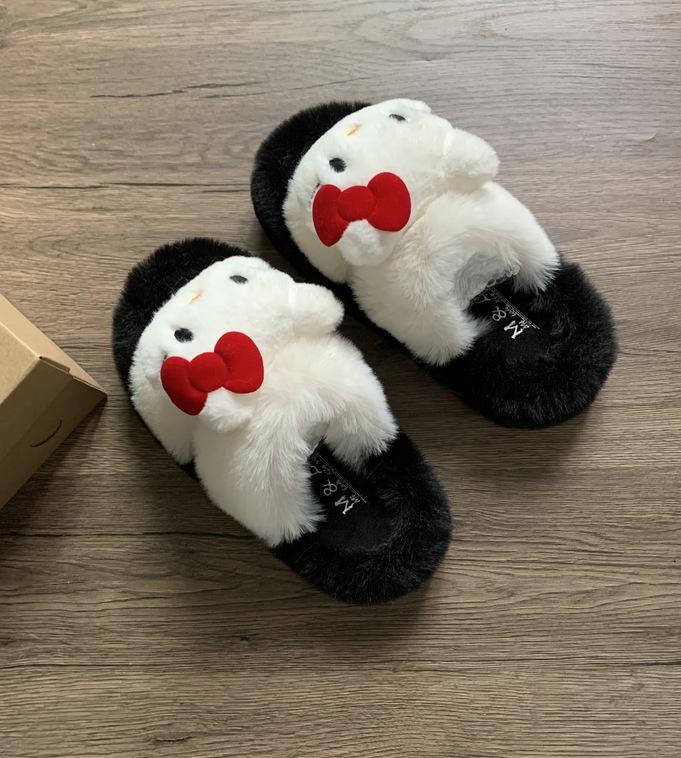 Pantuflas de algodón con dibujos animados para mujer, ropa de invierno 2024, nuevas, de suela gruesa, cómodas, sin cordones, cálidas y forradas con forro polar.