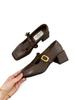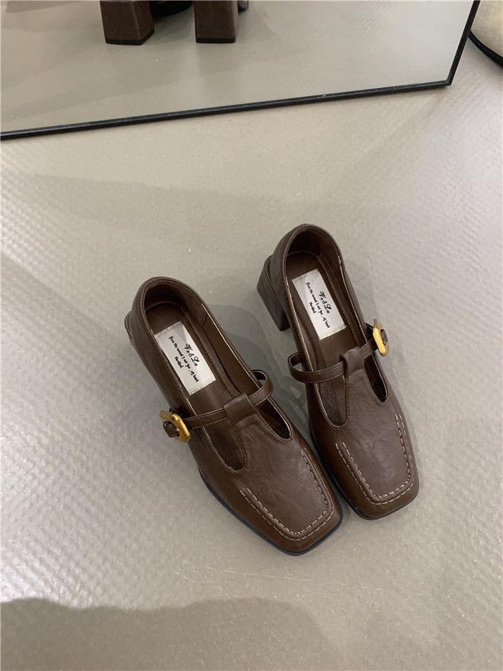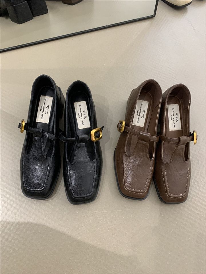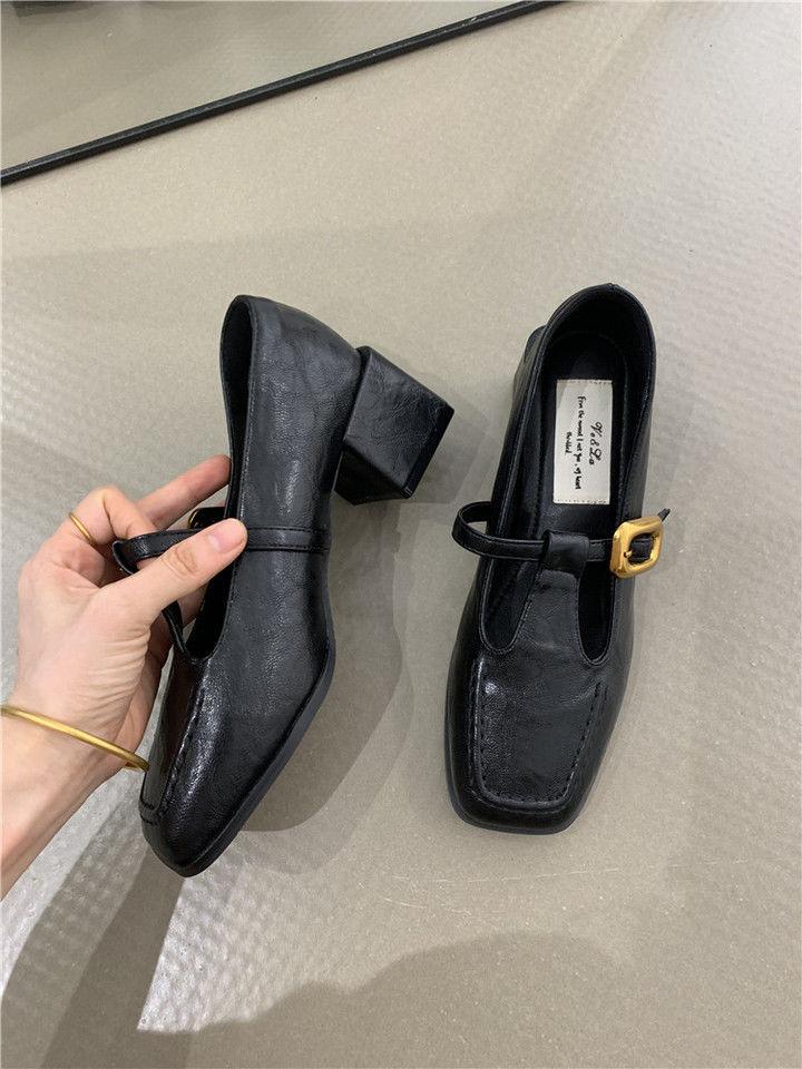 Zapatos Mary Jane para Mujer Otoño 2025 Nuevo Estilo Francés Elegante Hebilla Punta Cuadrada Boca Baja Tacón Grueso Flats de Mujer
