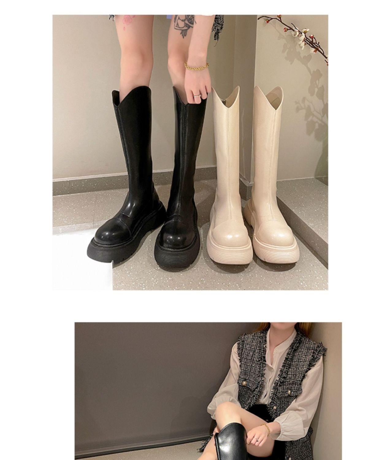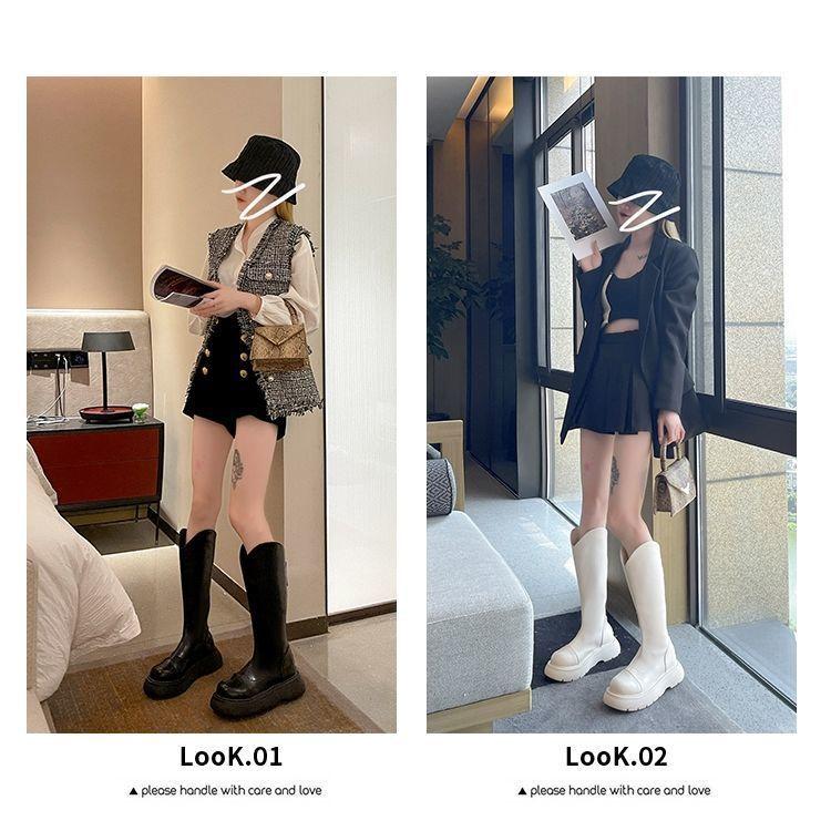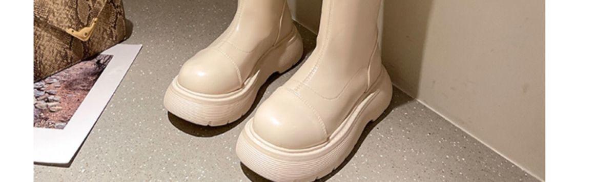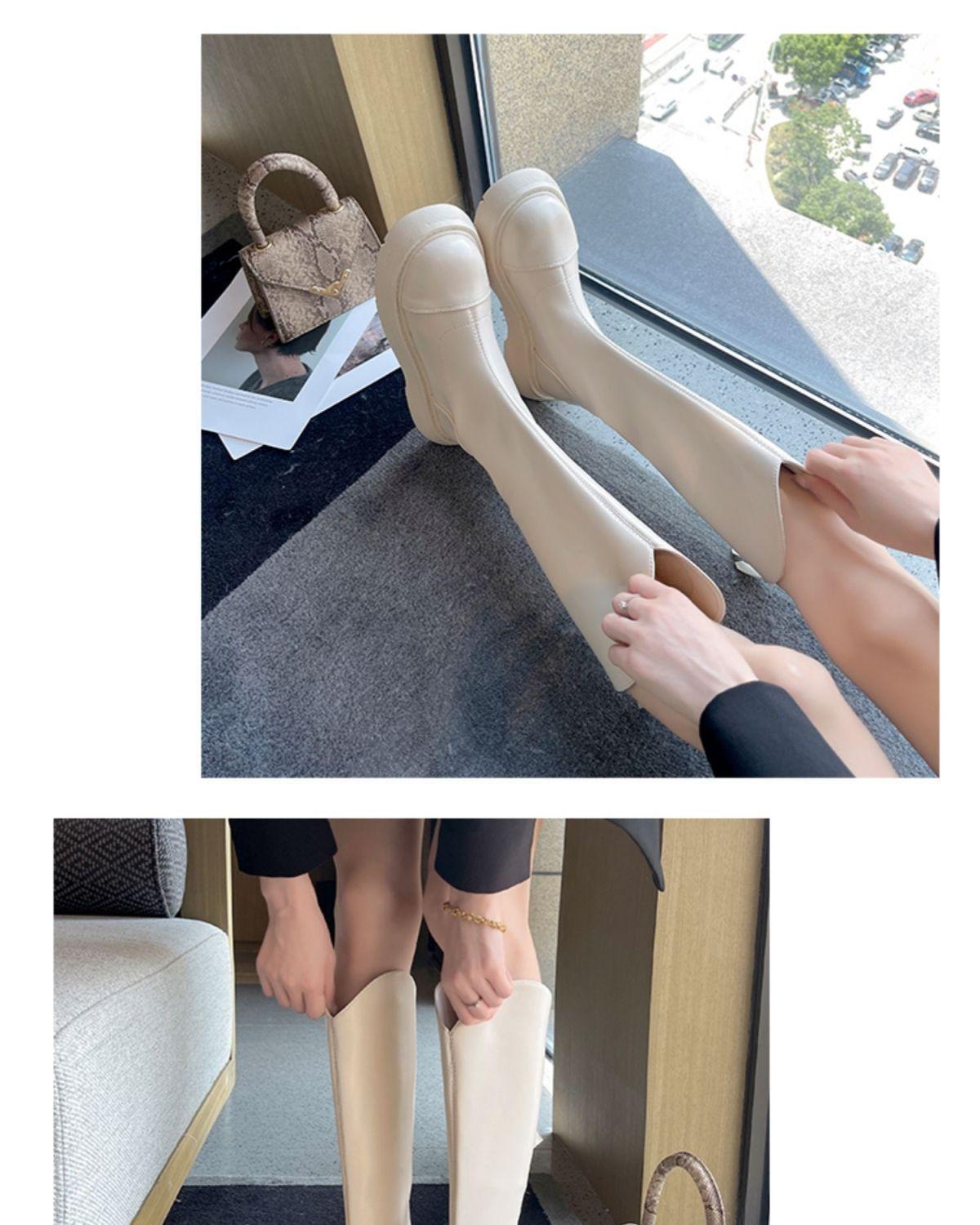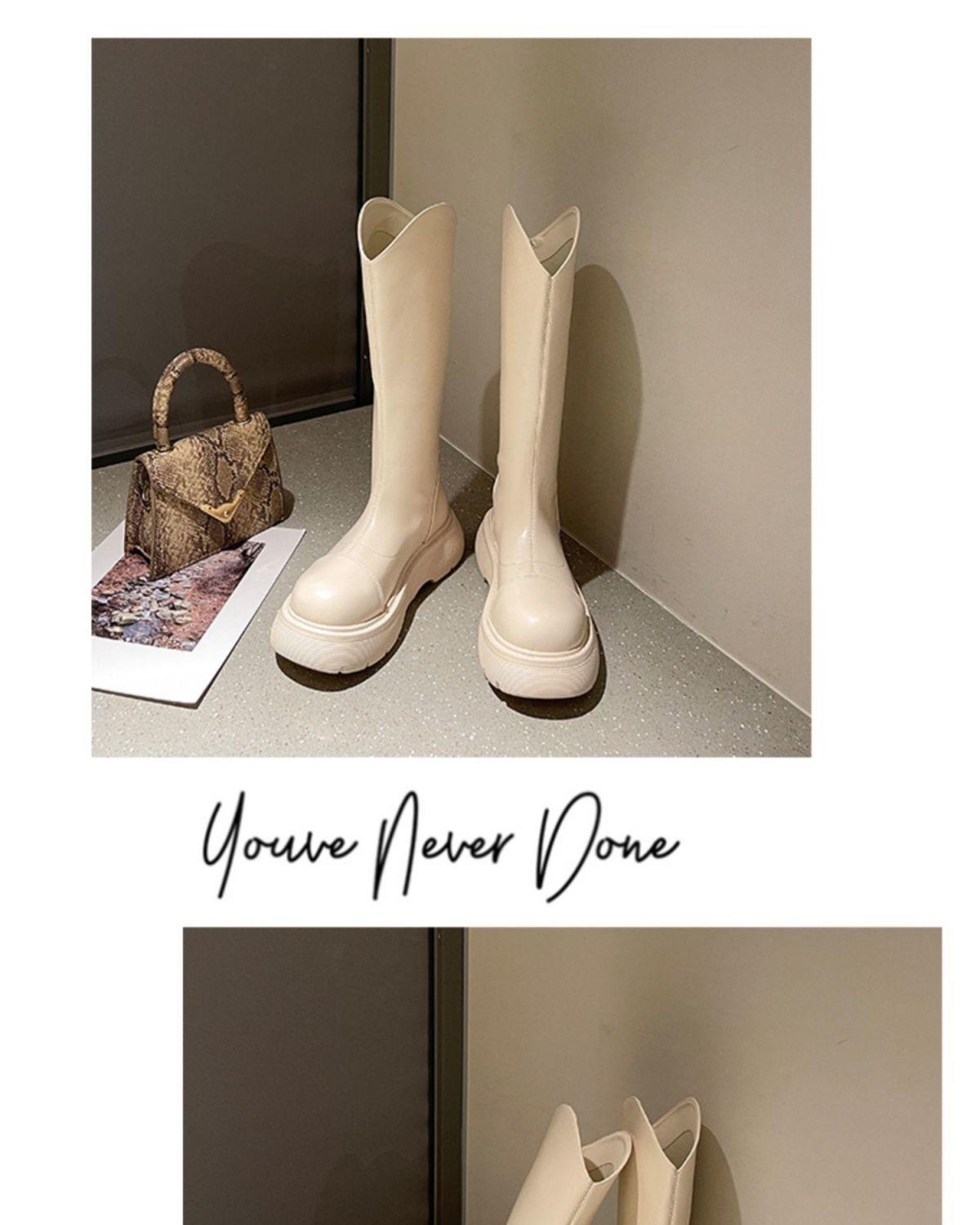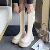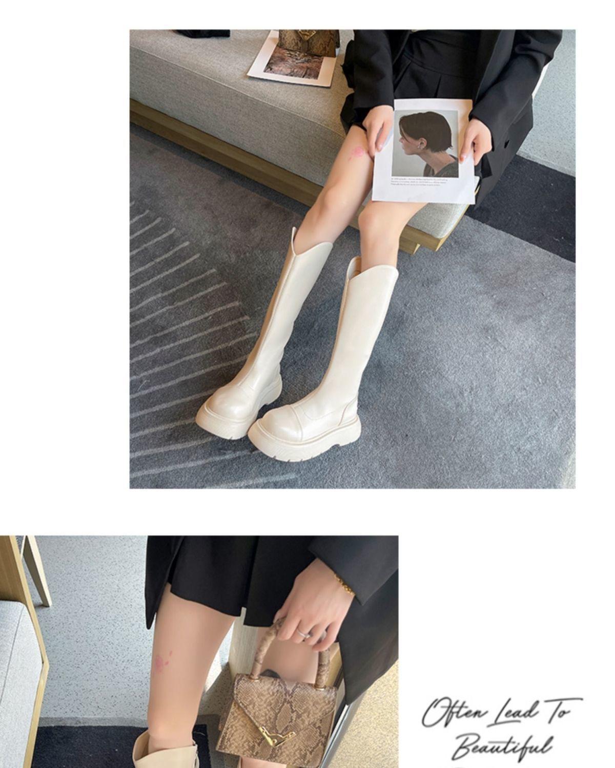 Botas largas de primavera y otoño, pierna gruesa, suela gruesa francesa, pequeña altura que aumenta la rodilla, botas de caballero blancas a media pantorrilla para mujer