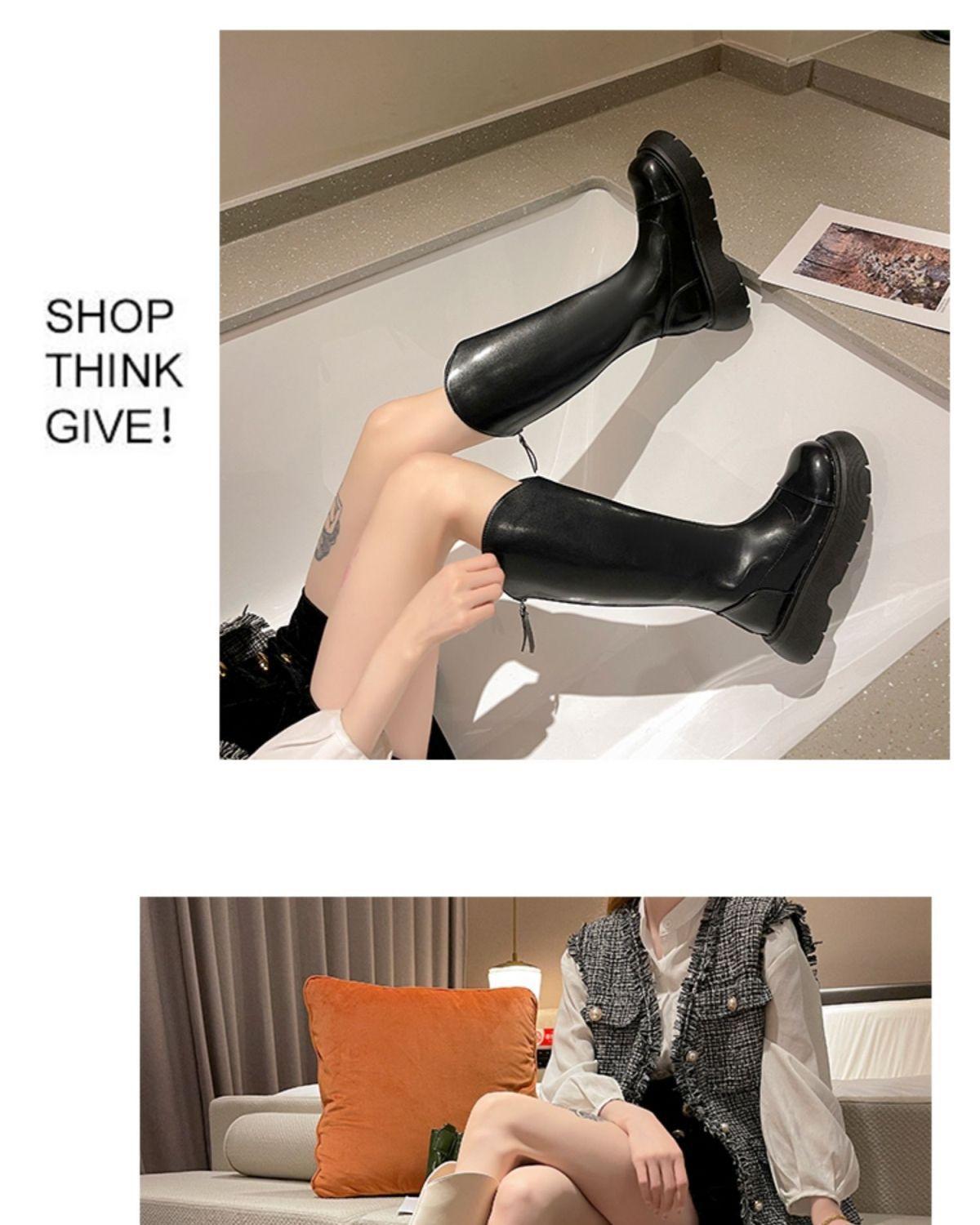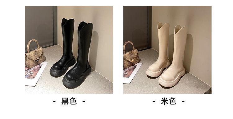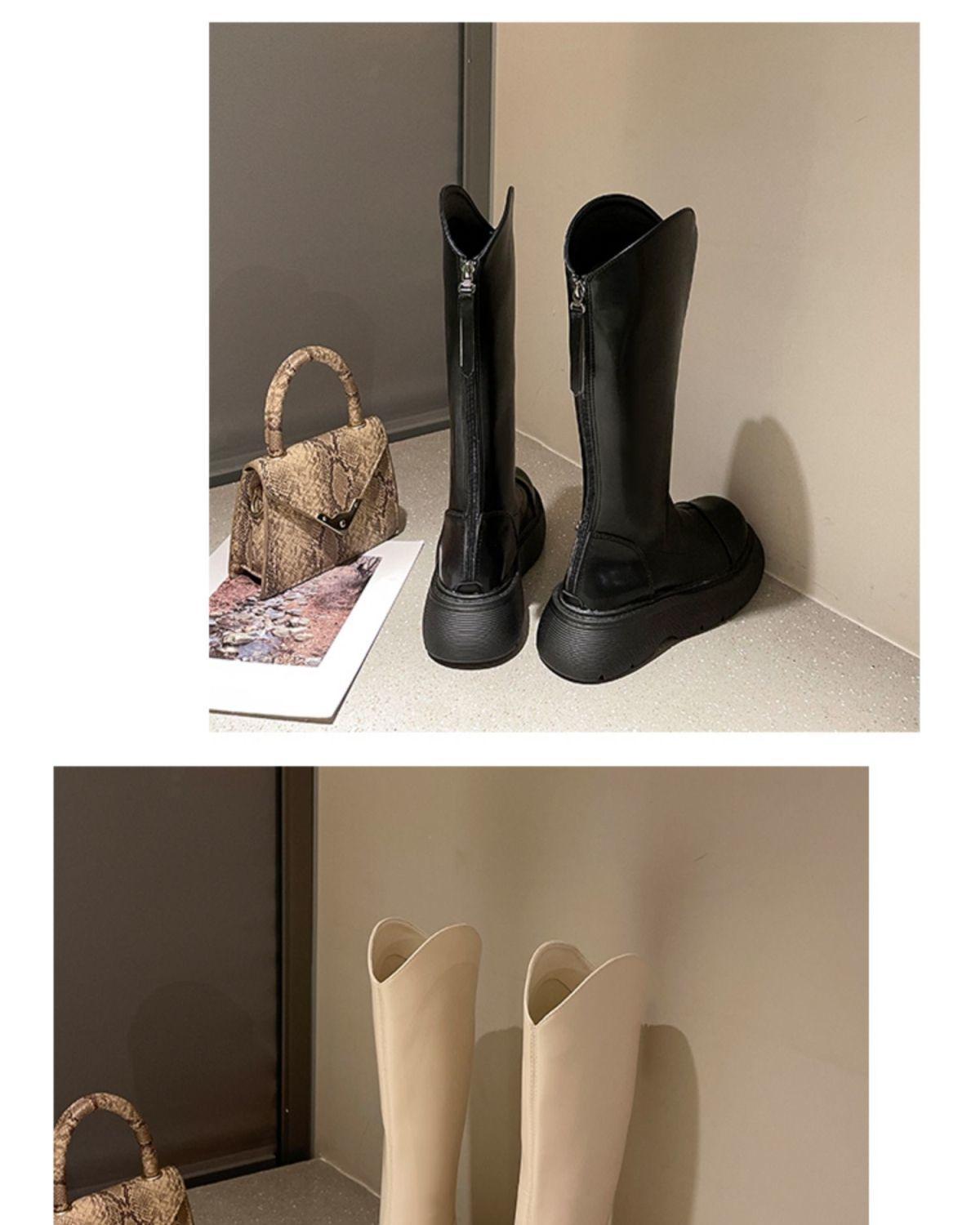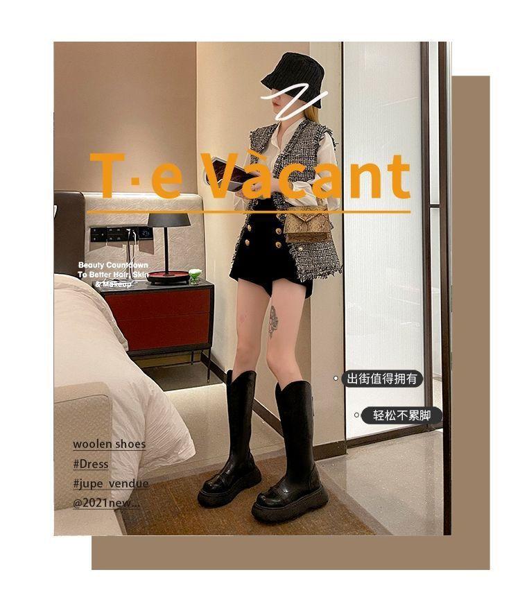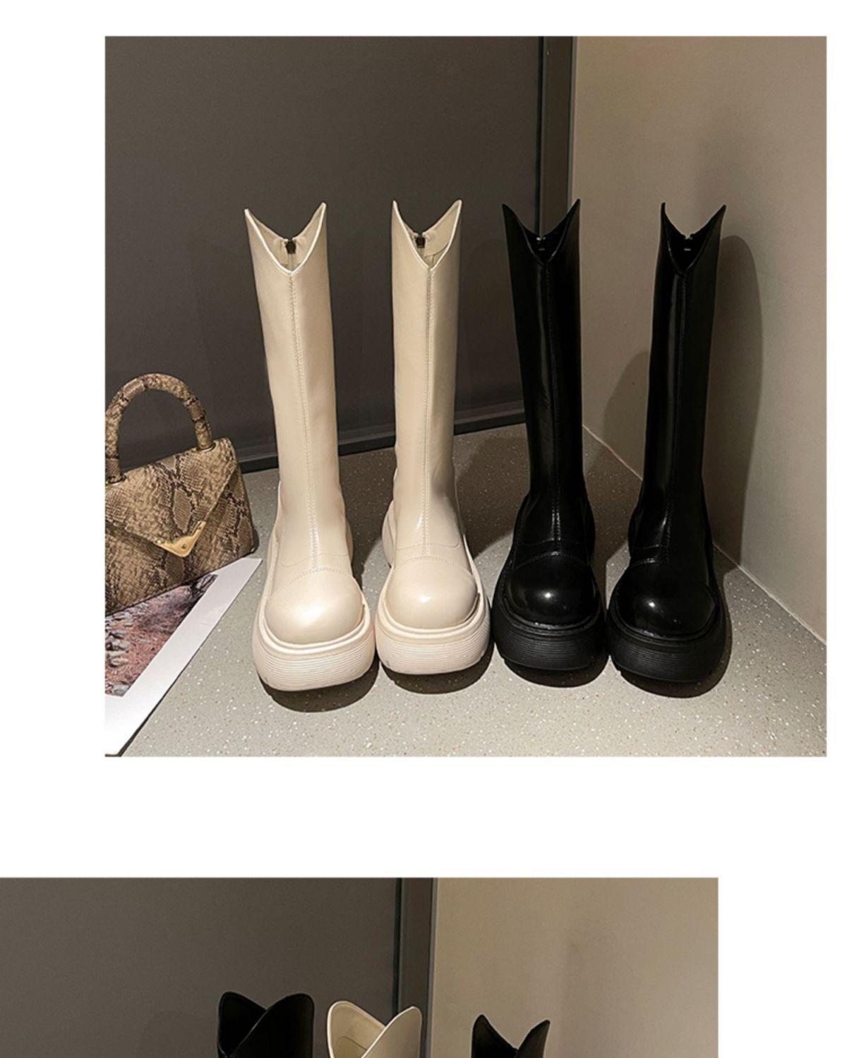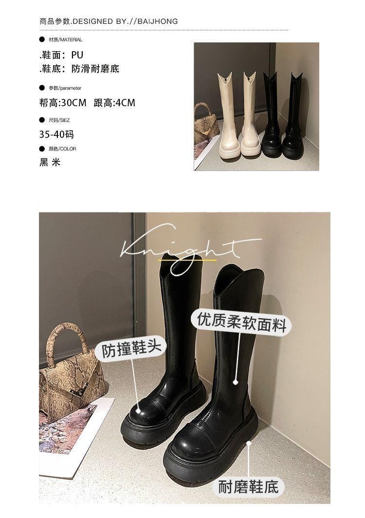 Botas largas de primavera y otoño, pierna gruesa, suela gruesa francesa, pequeña altura que aumenta la rodilla, botas de caballero blancas a media pantorrilla para mujer