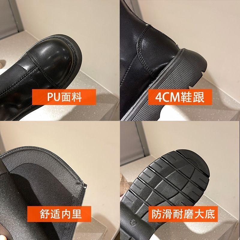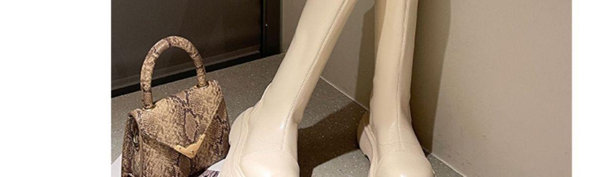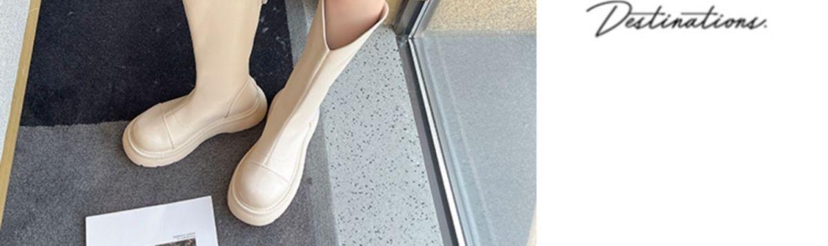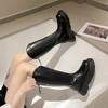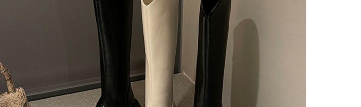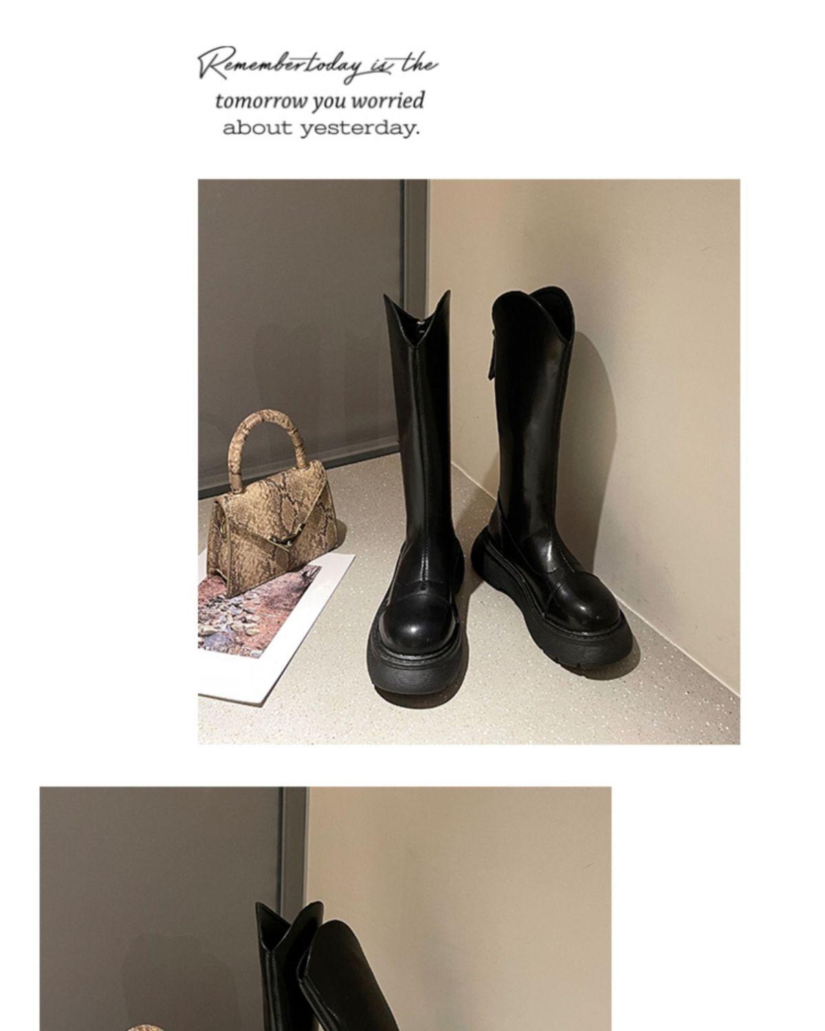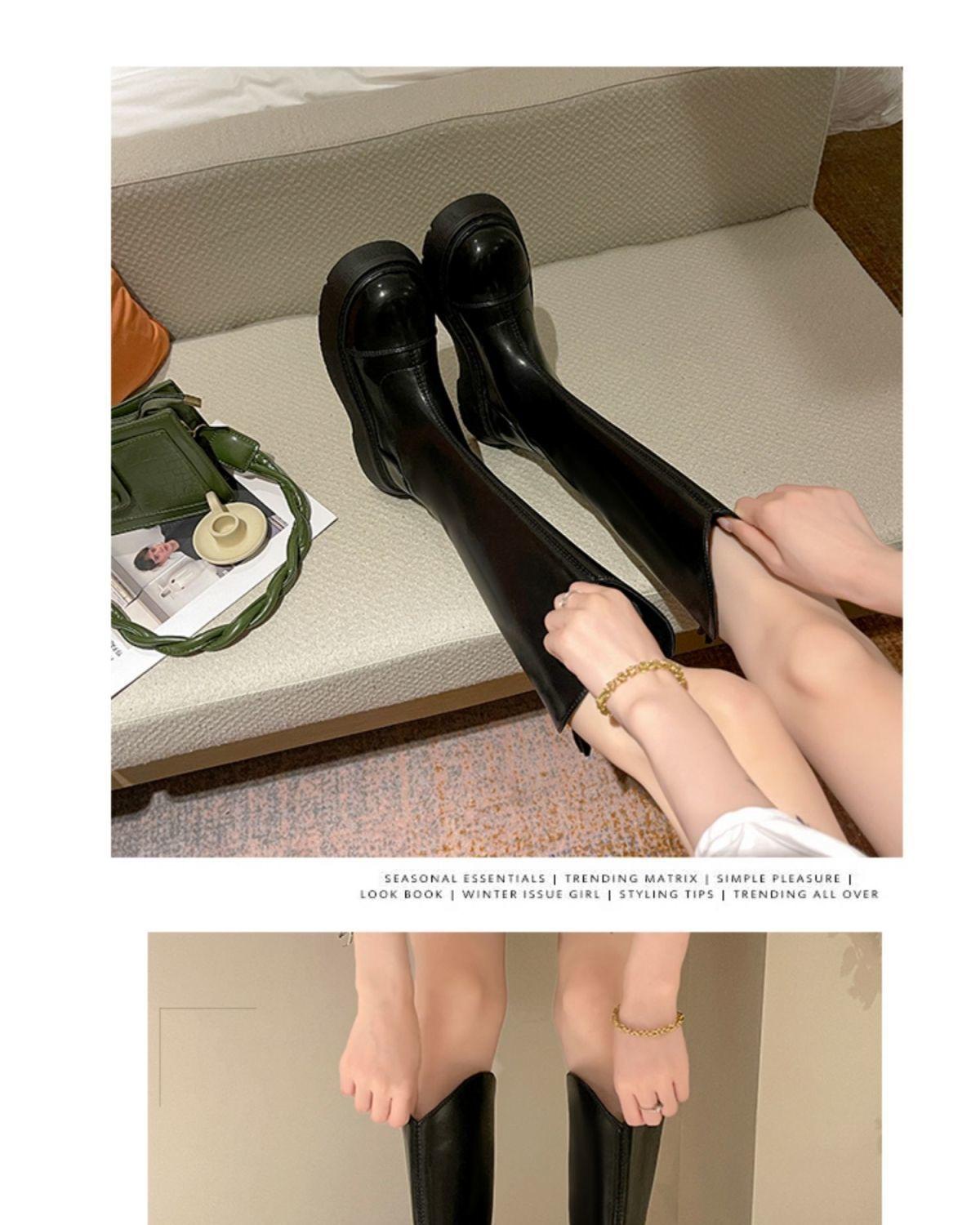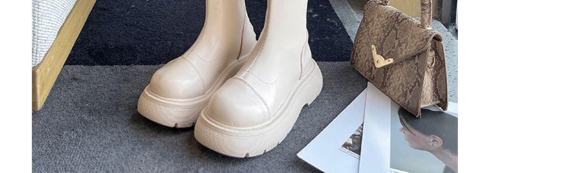 Botas largas de primavera y otoño, pierna gruesa, suela gruesa francesa, pequeña altura que aumenta la rodilla, botas de caballero blancas a media pantorrilla para mujer