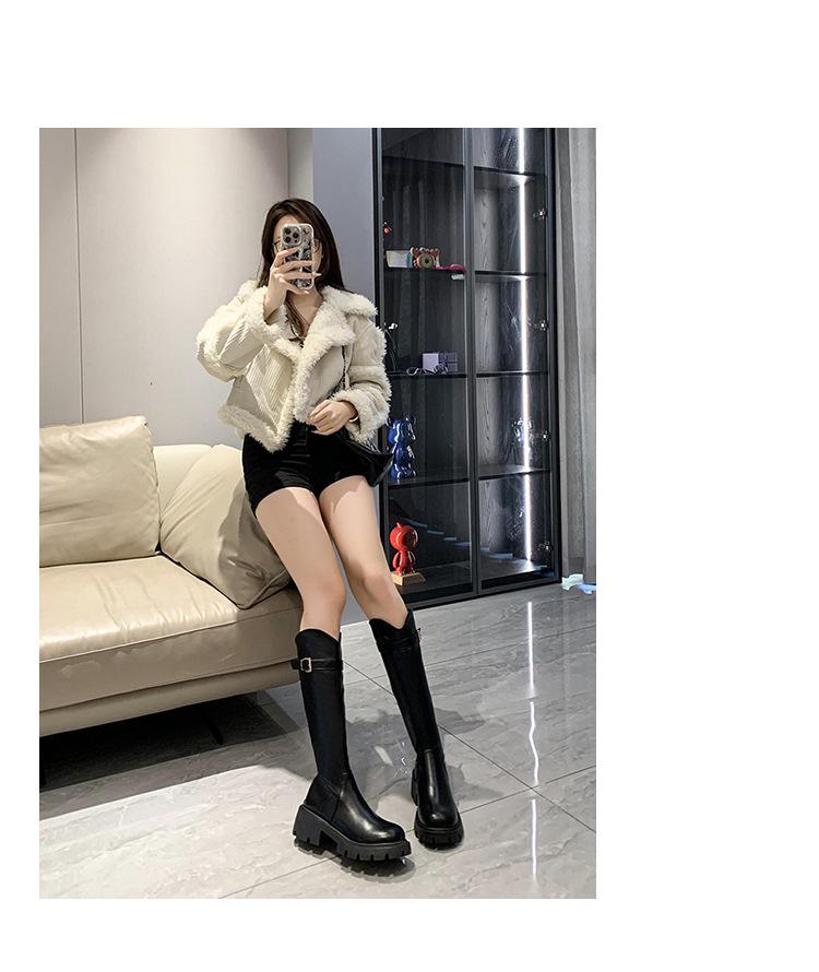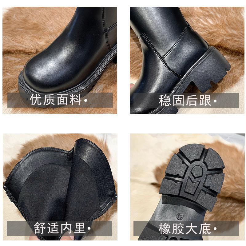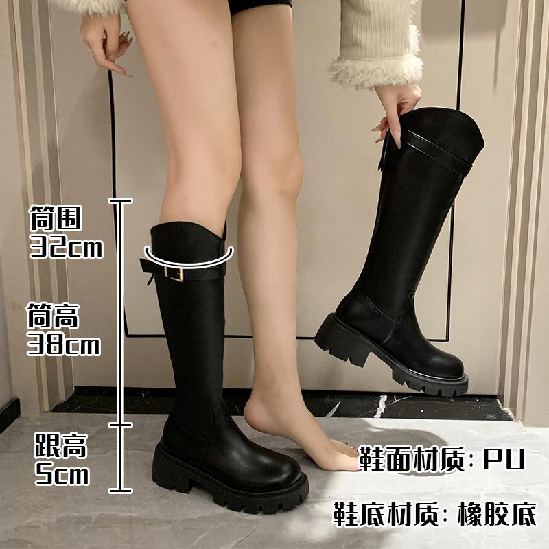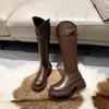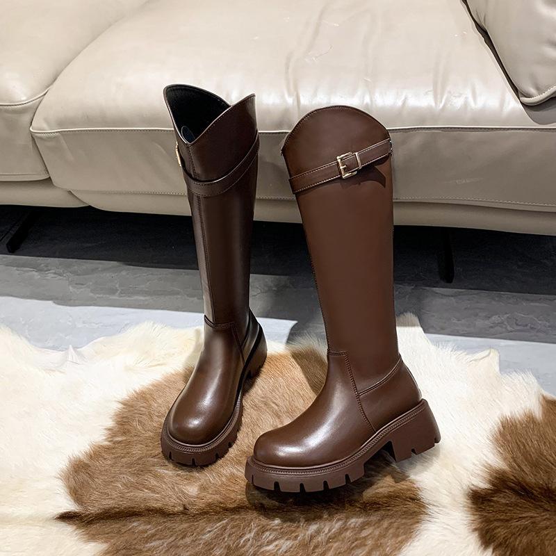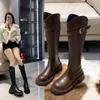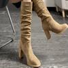 Botas de caballero con tacón alto y suela gruesa, elásticas, hasta la rodilla, para mujer, 2024