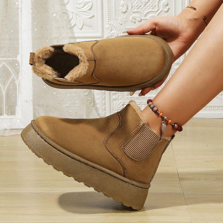 2024 otoño e invierno nuevas botas de nieve de suela gruesa para mujer de comercio exterior zapatos de algodón con forro polar interior punta redonda botas de algodón Amazon