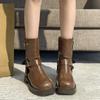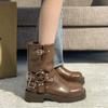 Botas Martin de tacón grueso para mujer 2024, estilo británico, retro, con punta cuadrada, botas cortas, botas vaqueras occidentales de manga larga, botas de caballero