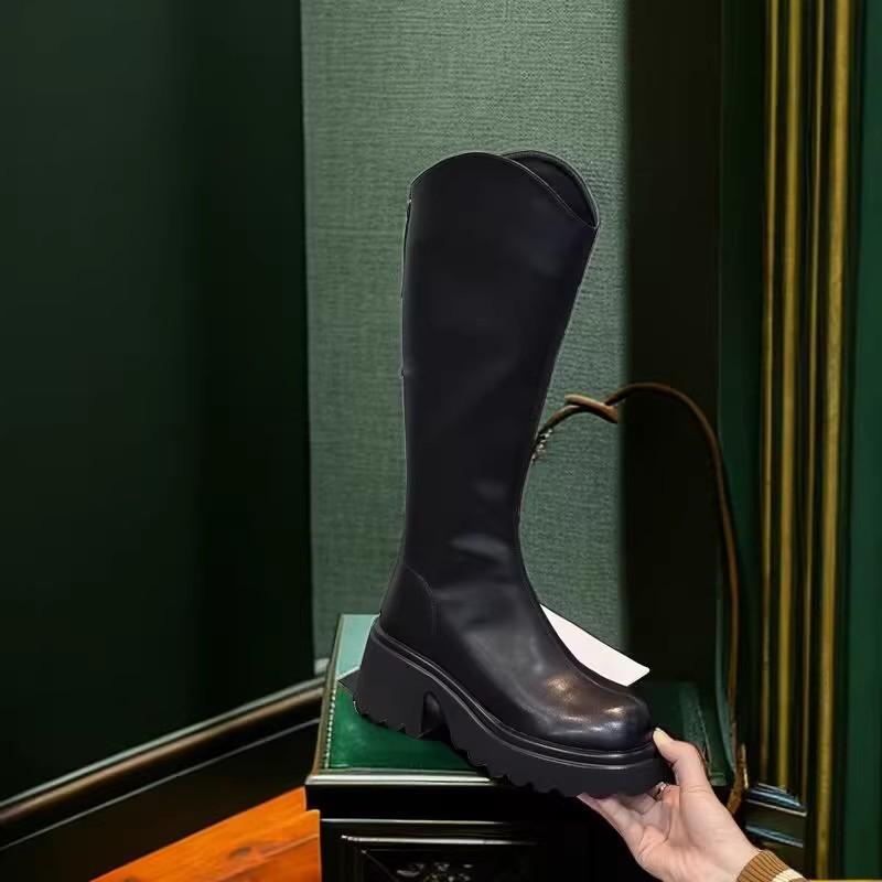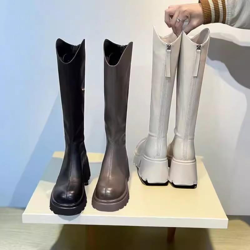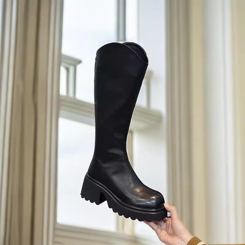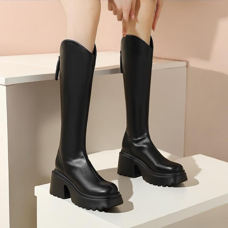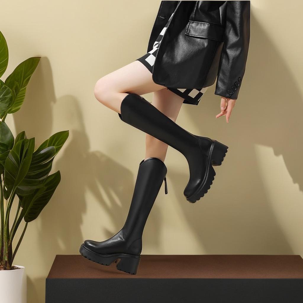 Botas de invierno 2024 para mujer, botas de caballero con pierna gruesa y suela gruesa, botas hasta la rodilla, talla grande.