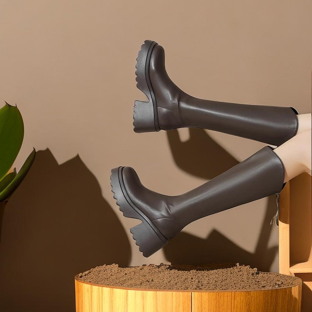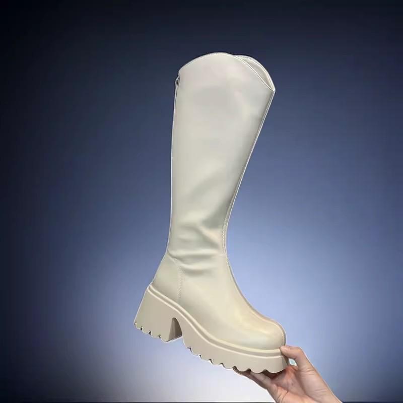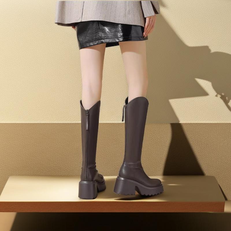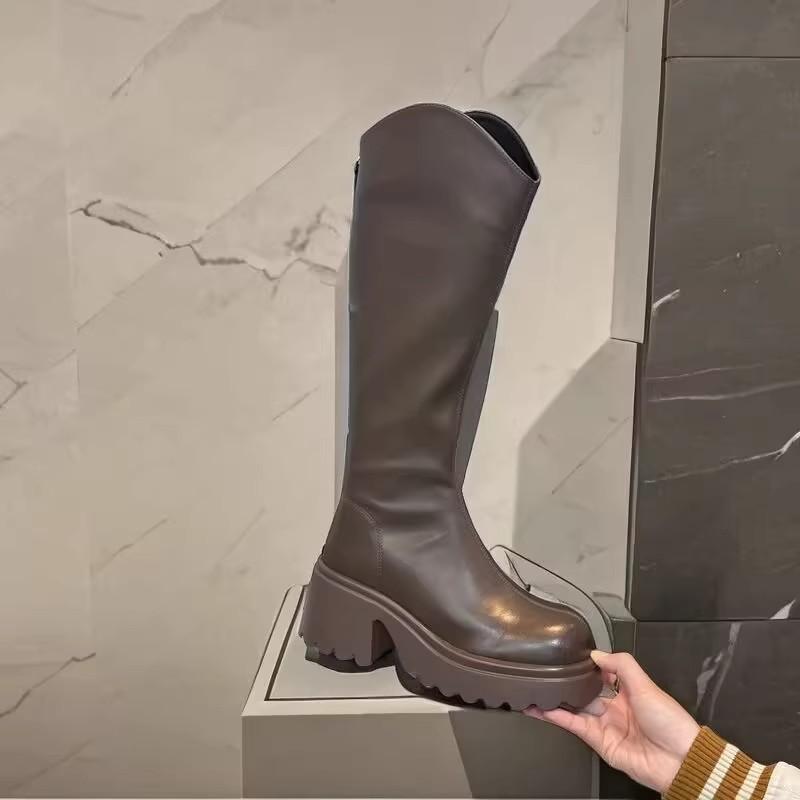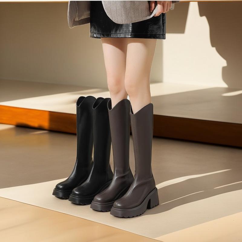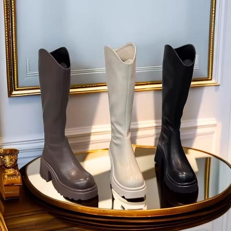 Botas de invierno 2024 para mujer, botas de caballero con pierna gruesa y suela gruesa, botas hasta la rodilla, talla grande.