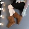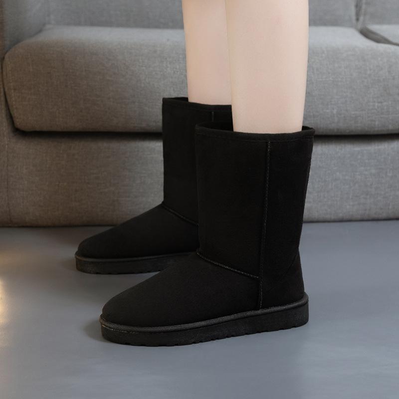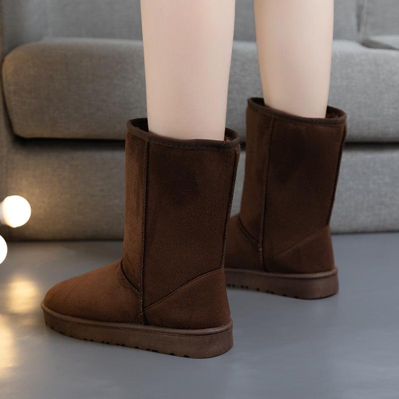 Botas de Nieve para Mujer Invierno Nuevo Punta Redonda Estilo Coreano Media Caña Forro Polar Engrosado Cálido Suela de Melocotón Casual Estudiante Botas de Algodón