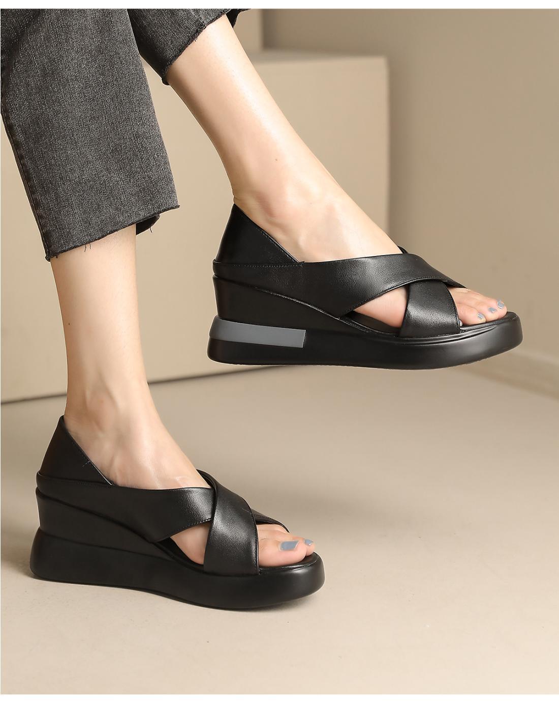Sandalias de Cuña de Moda de Verano 2025 Zapatos Exteriores para Mujer Zapatos de Plataforma de Suela Gruesa Retro de Punta Abierta Sandalias de Mujer