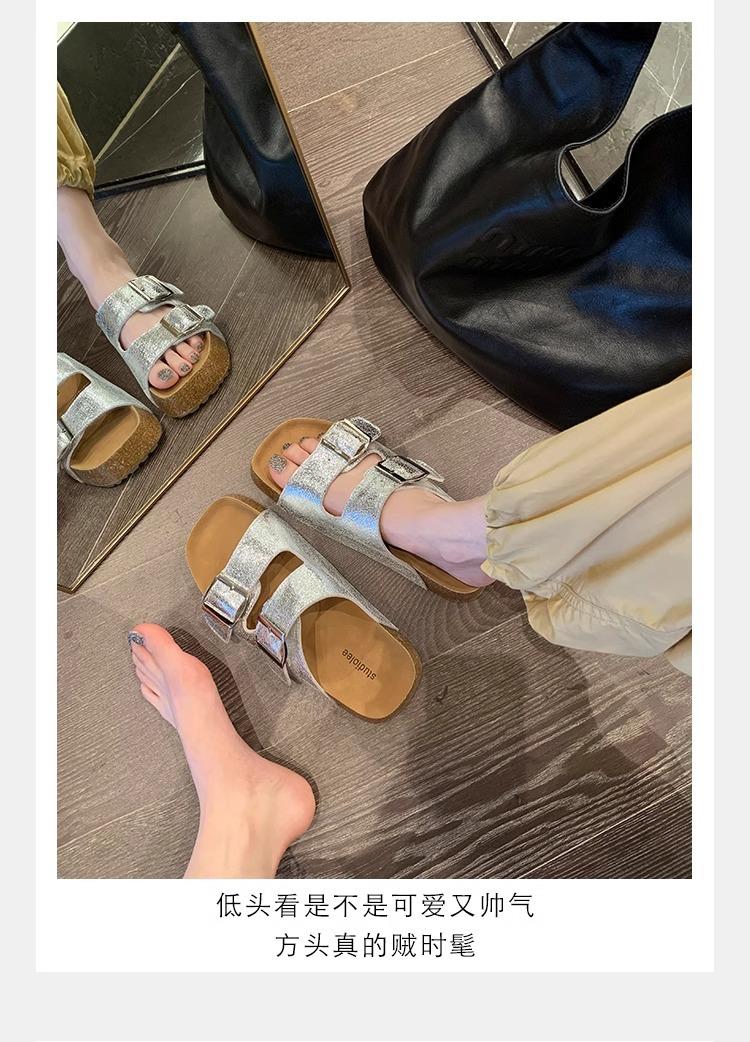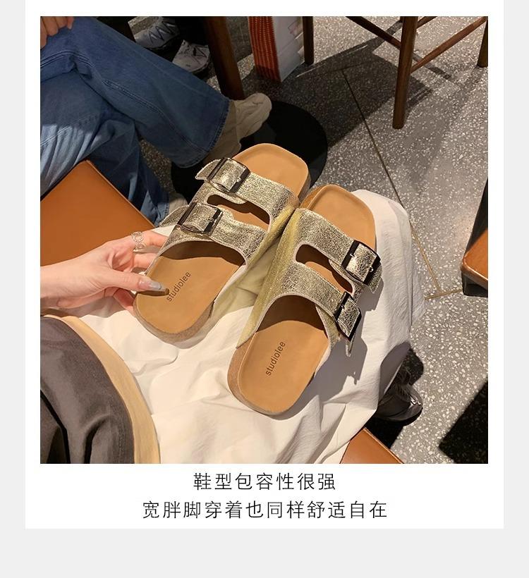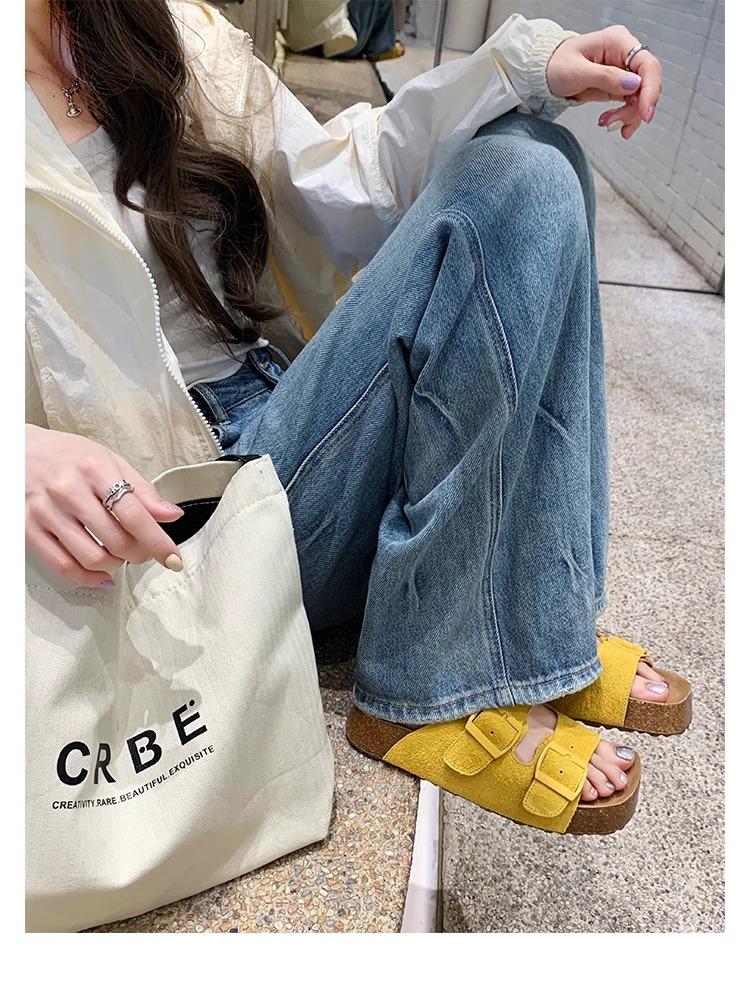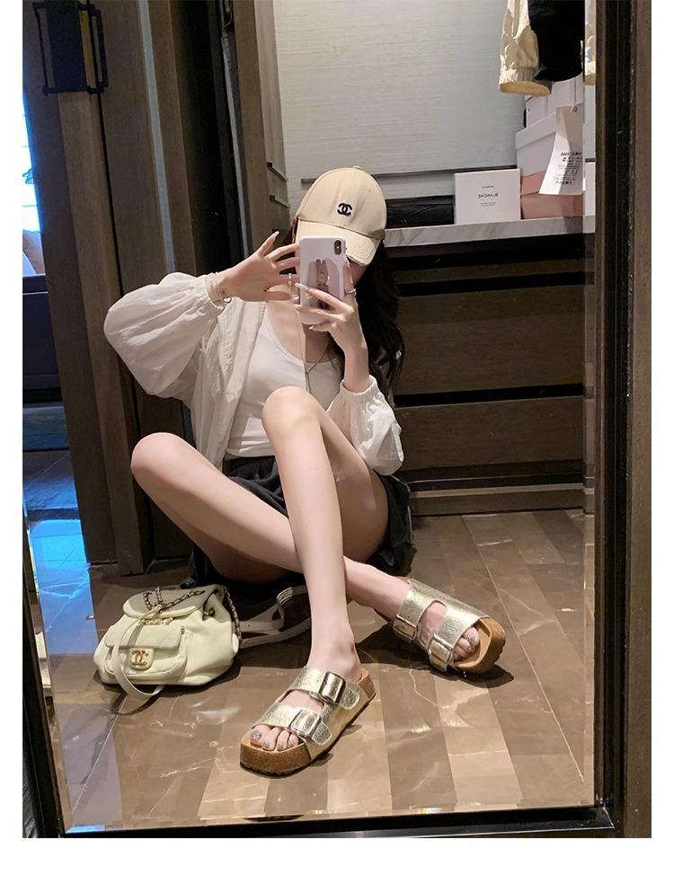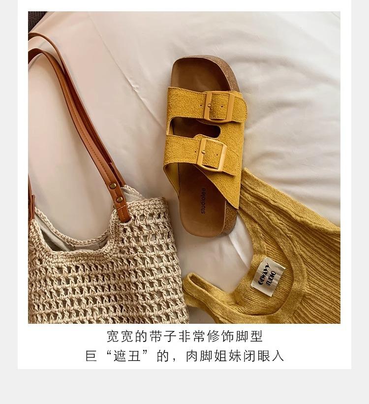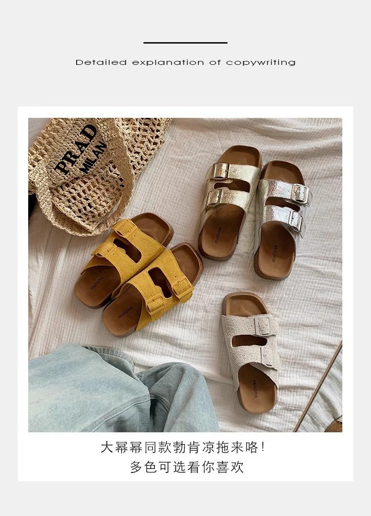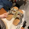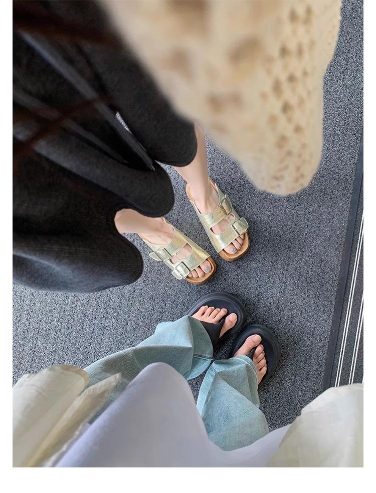 Pantuflas de Pan de Velcro de Una Palabra para Mujer 2024 Verano Nuevo Ropa Exterior Sandalias y Pantuflas de Fondo Alto Zapatos de Playa de Suela Gruesa para Mujer