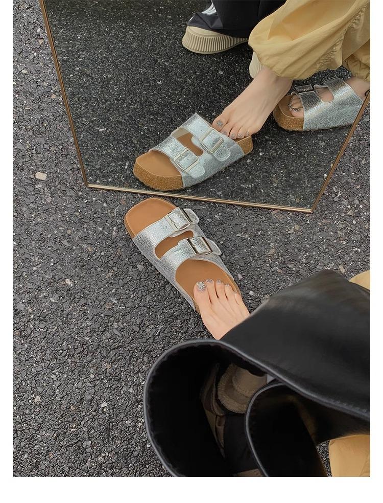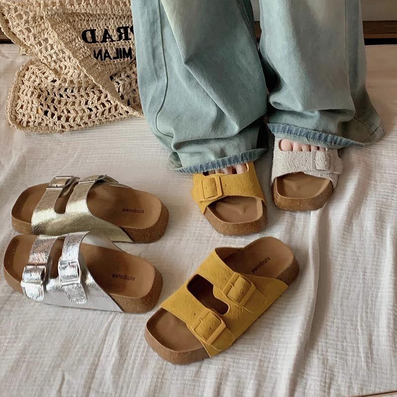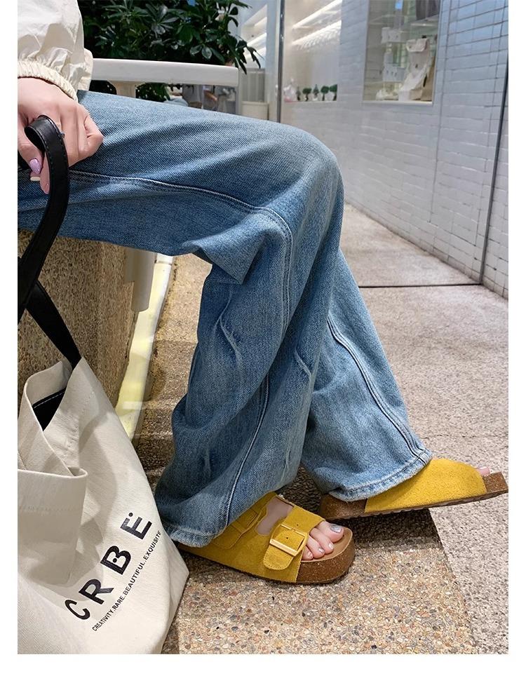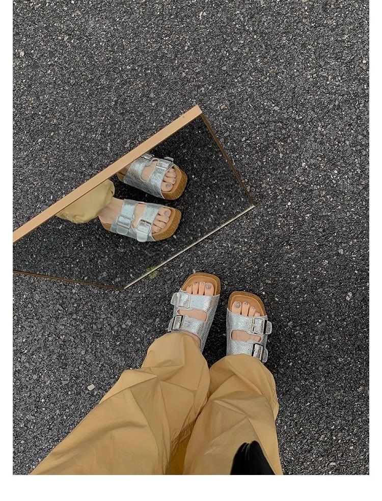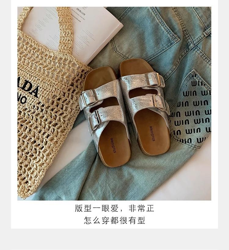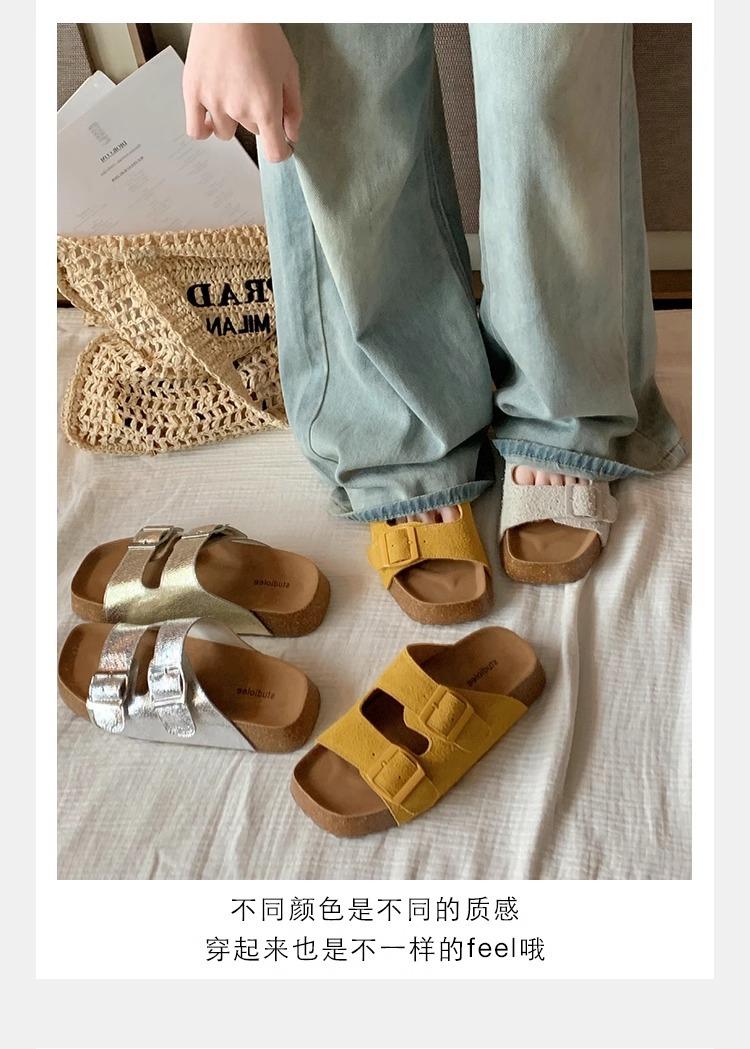 Pantuflas de Pan de Velcro de Una Palabra para Mujer 2024 Verano Nuevo Ropa Exterior Sandalias y Pantuflas de Fondo Alto Zapatos de Playa de Suela Gruesa para Mujer