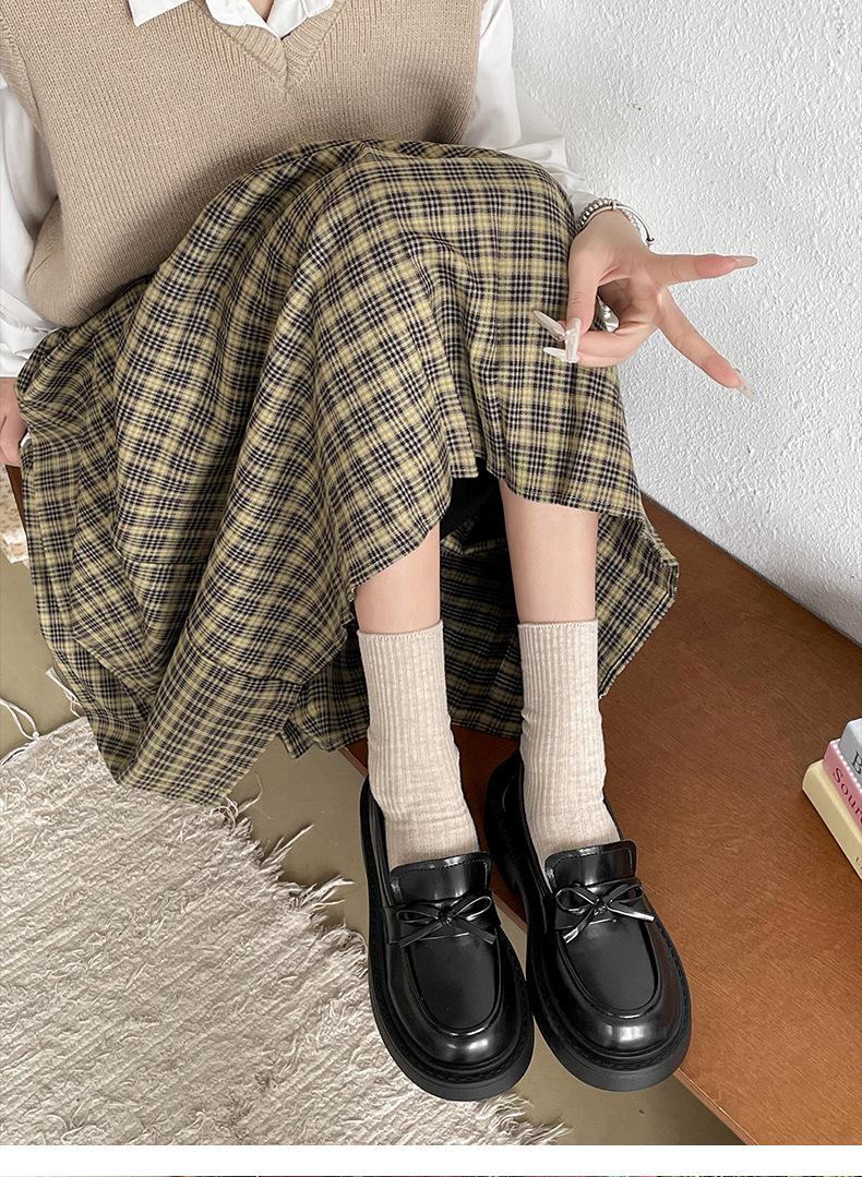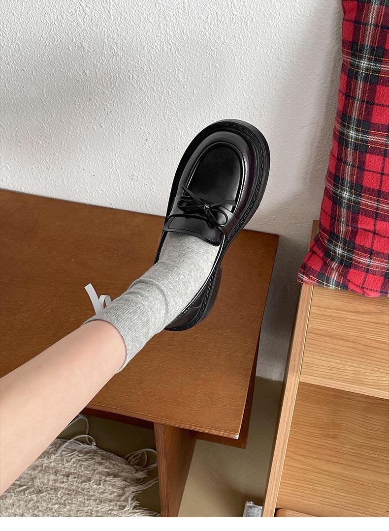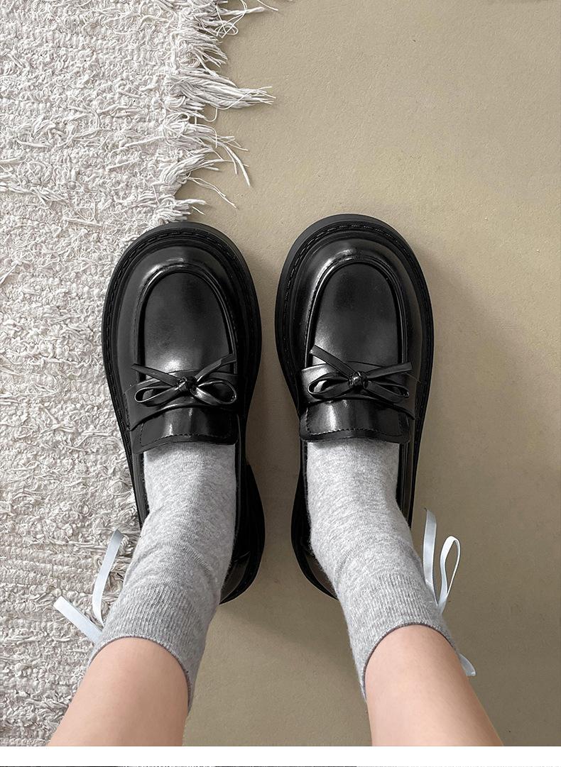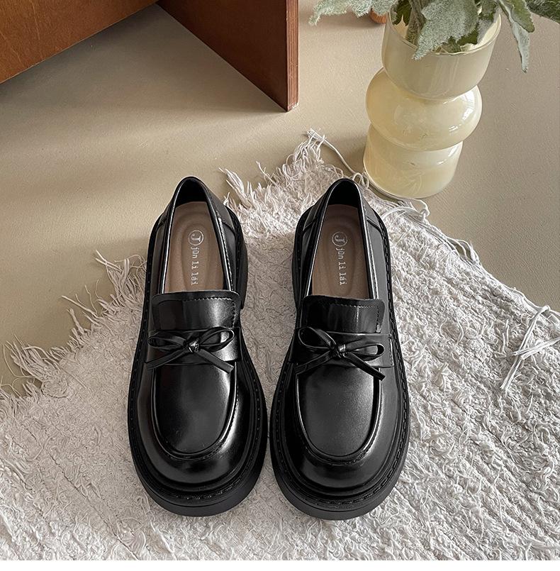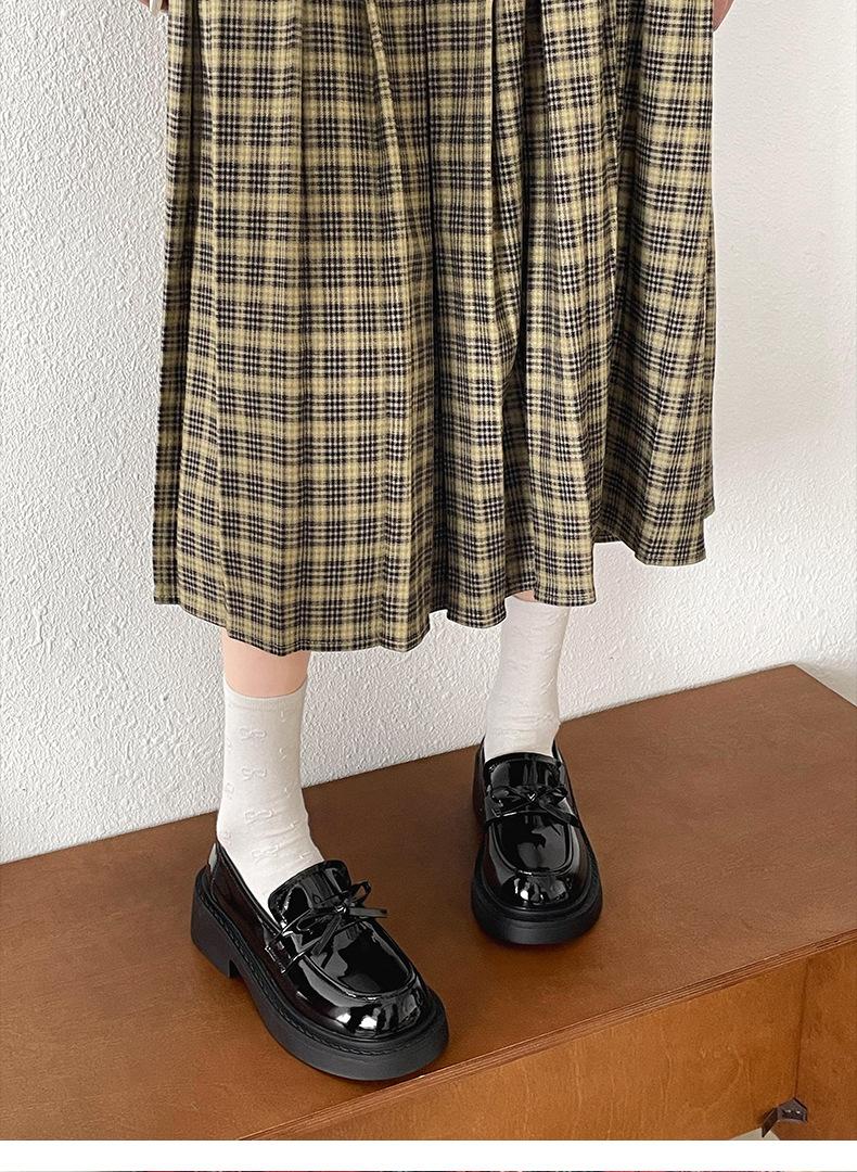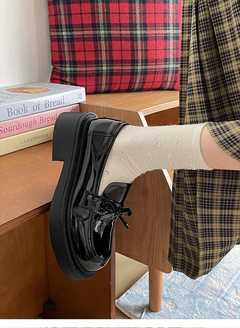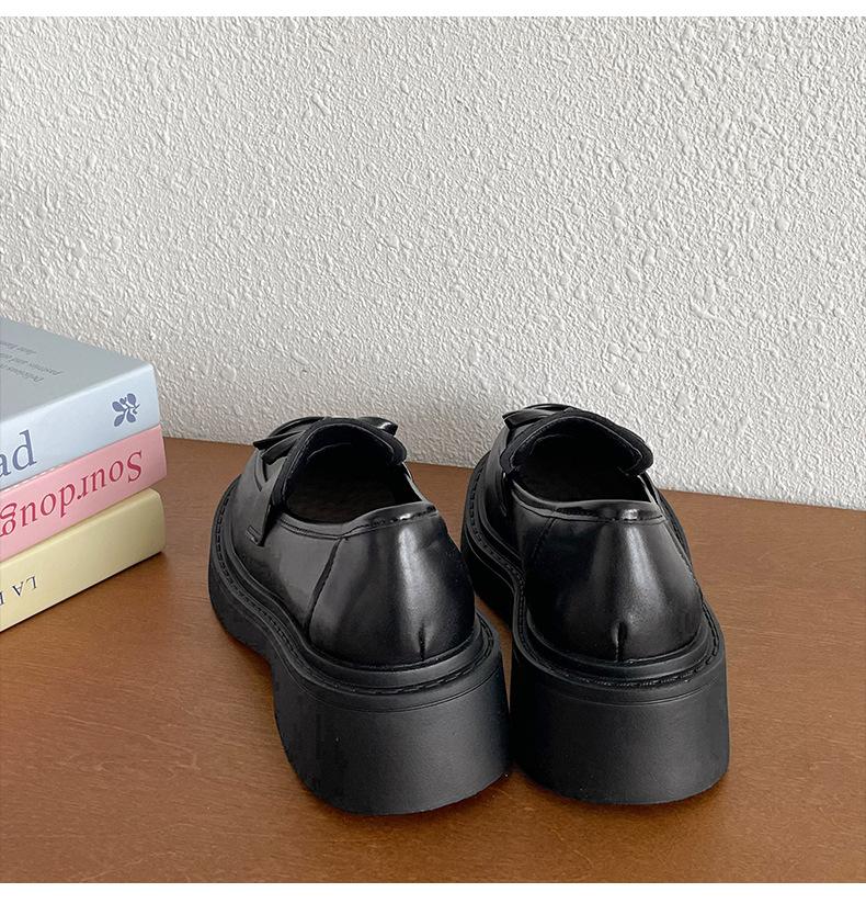 Zapatos de Cuero Pequeños de Estilo Retro Francés Británico de Suela Gruesa para Mujer 2025 Nuevo Primavera y Otoño con Faldas Versátiles Mocasines con Altura