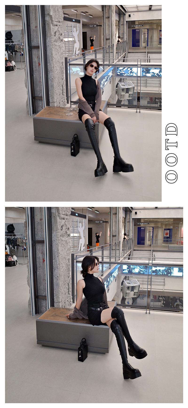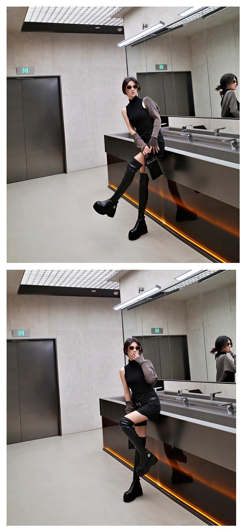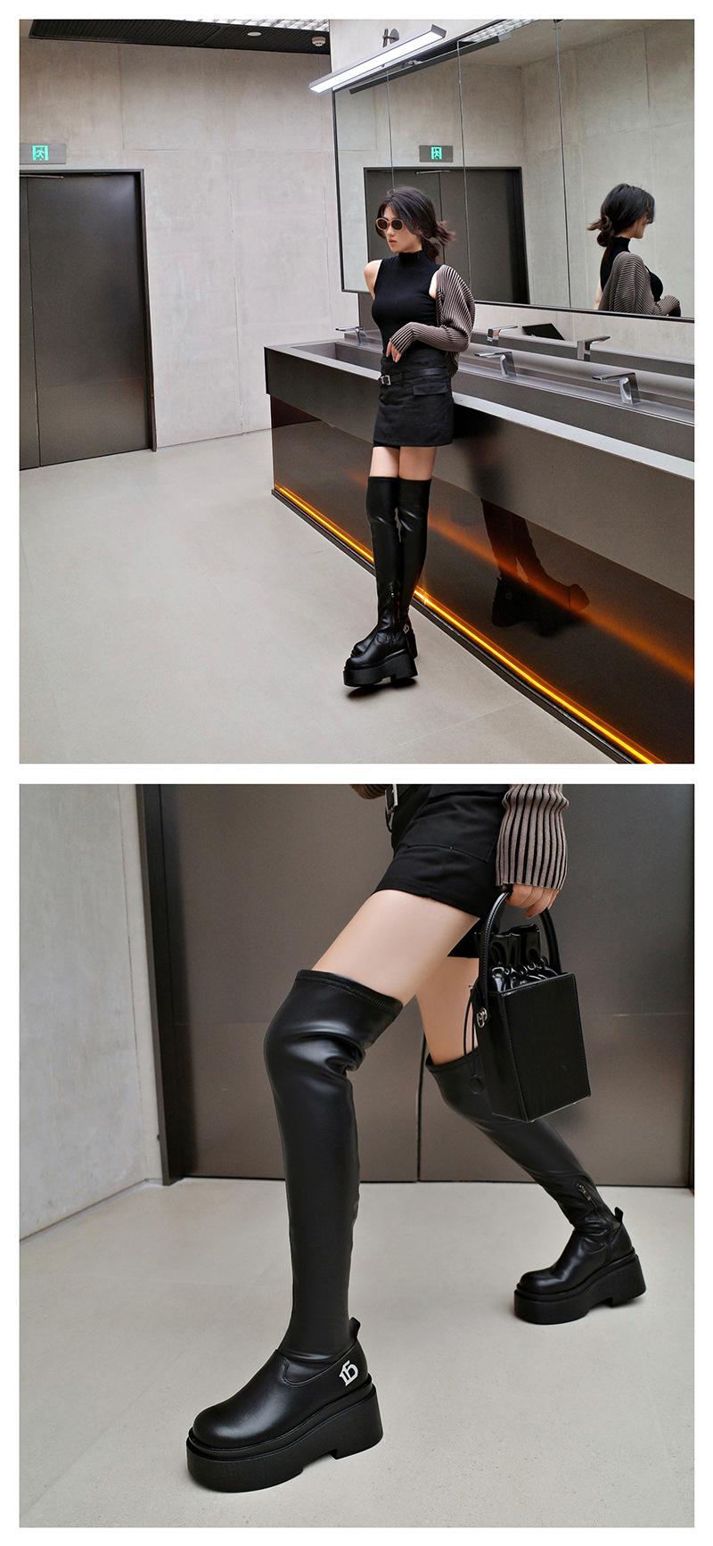 Botas por encima de la rodilla 2024 Nuevas botas delgadas elásticas Plataforma Tacón de pastel Pequeñas Grandes Boom Botas largas de moda