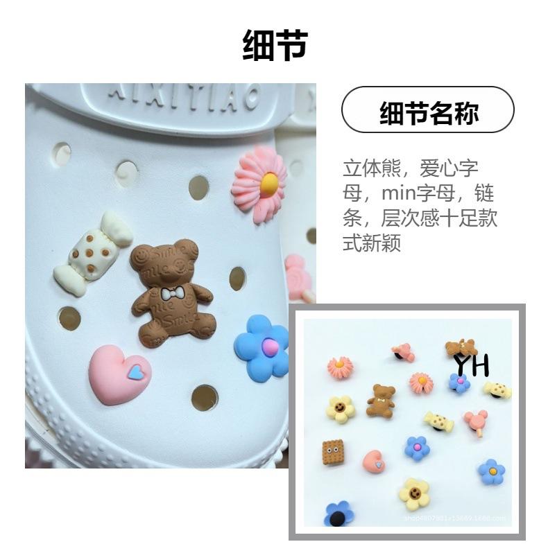 Serie Candy Bear Crocs Accesorios de Flores PVC Juego de Hebillas para Zapatos Desmontables Zapatos de Jardín Accesorios de Decoración de Flores para Zapatos